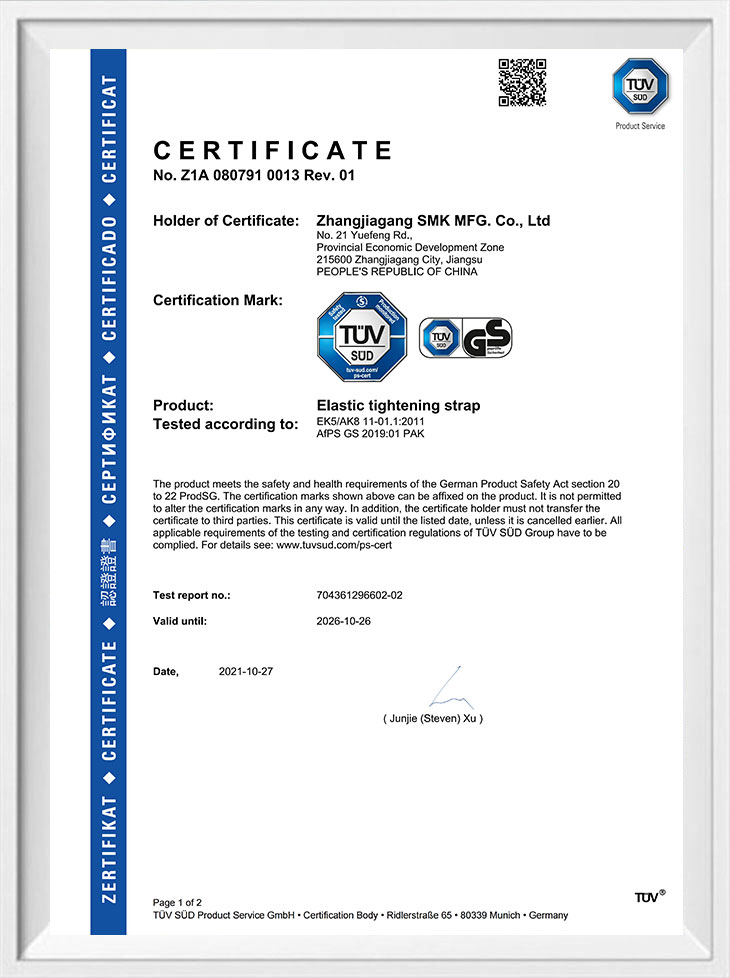 TUV GS Tanúsítvány lekötés és Bungee kábel