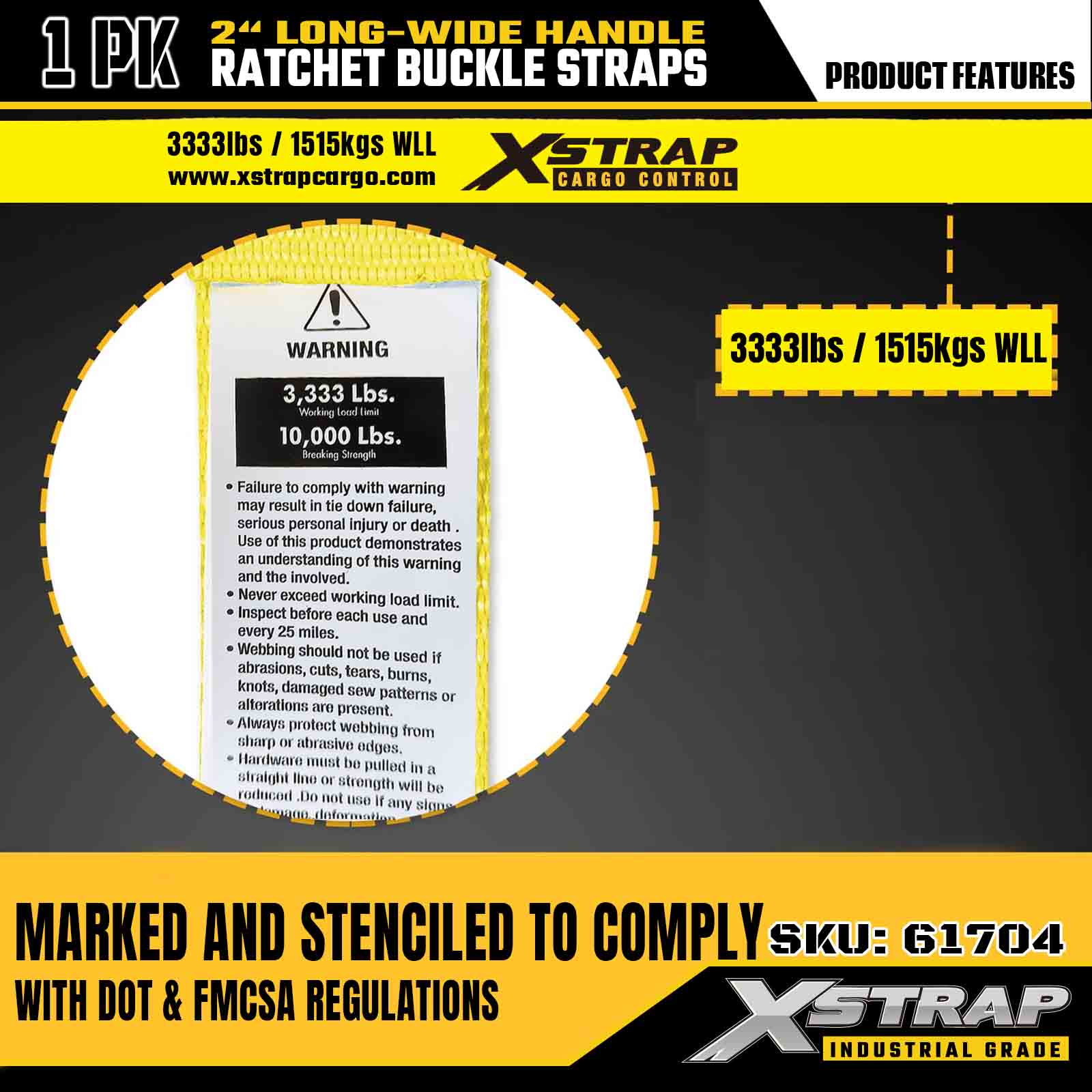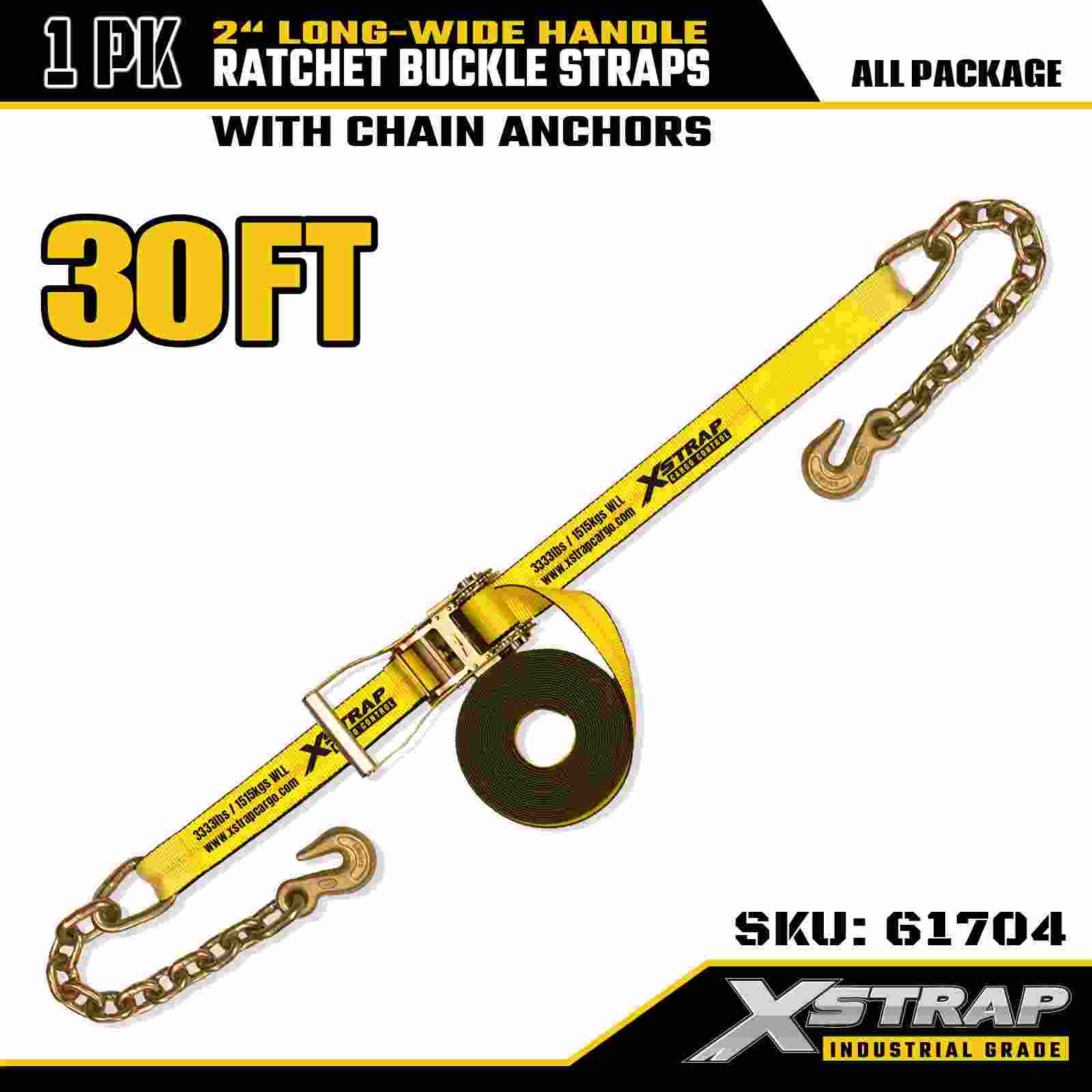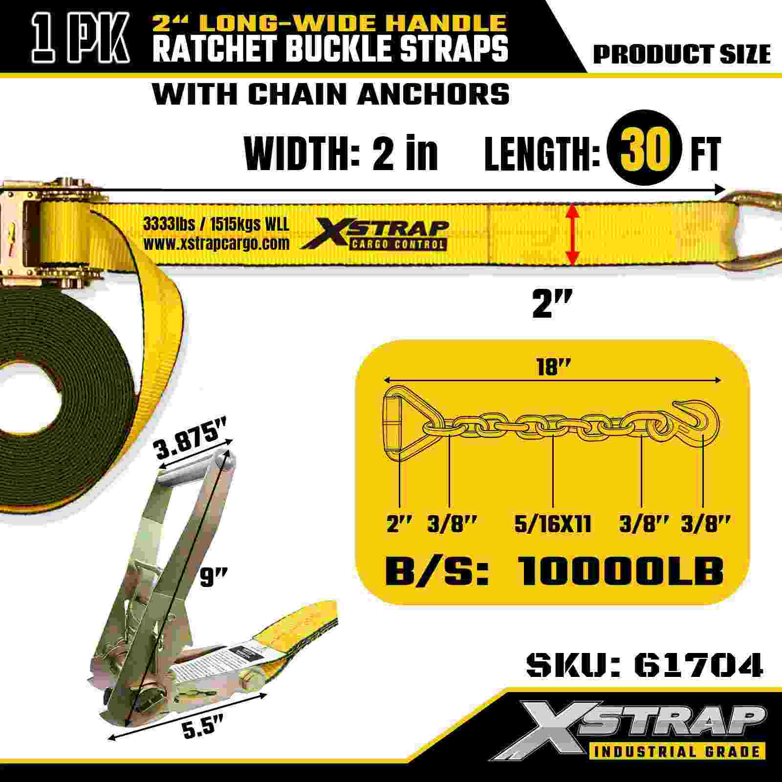 Xstrap 61704 Hosszú, széles fogantyús racsnis csatszíjak, 2" x 30 láb (1 csomag) – Lánchorgok, 10 000 font törési szilárdság, nagy teherbírású rögzítőszíj rakomány- és felszerelésszállításhoz