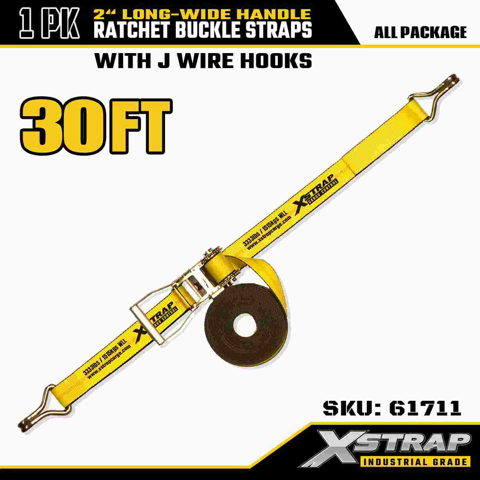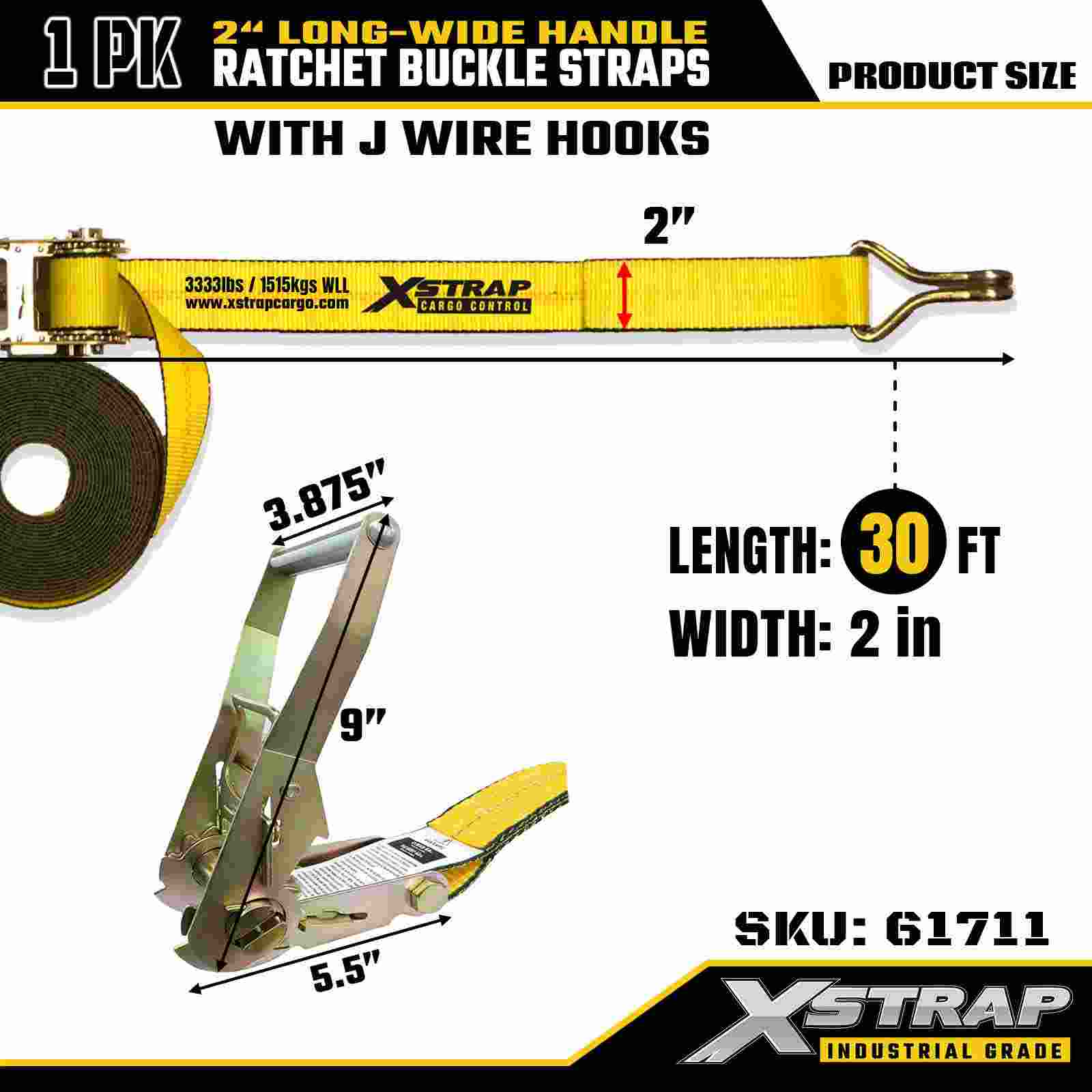 Xstrap 61711 prémium racsnis lekötőheveder, 2" x 30 láb (1 csomag) drótkampókkal, 10 000 font törési szilárdság, nagy teherbírású rögzítés az igényes szállításhoz