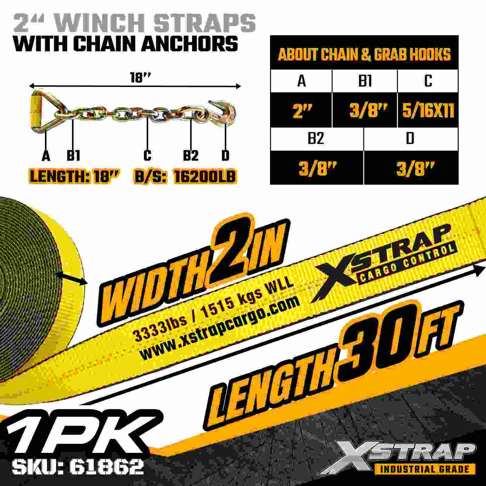 2" × 30 láb szabványos csörlőszíj lánchorgonyokkal