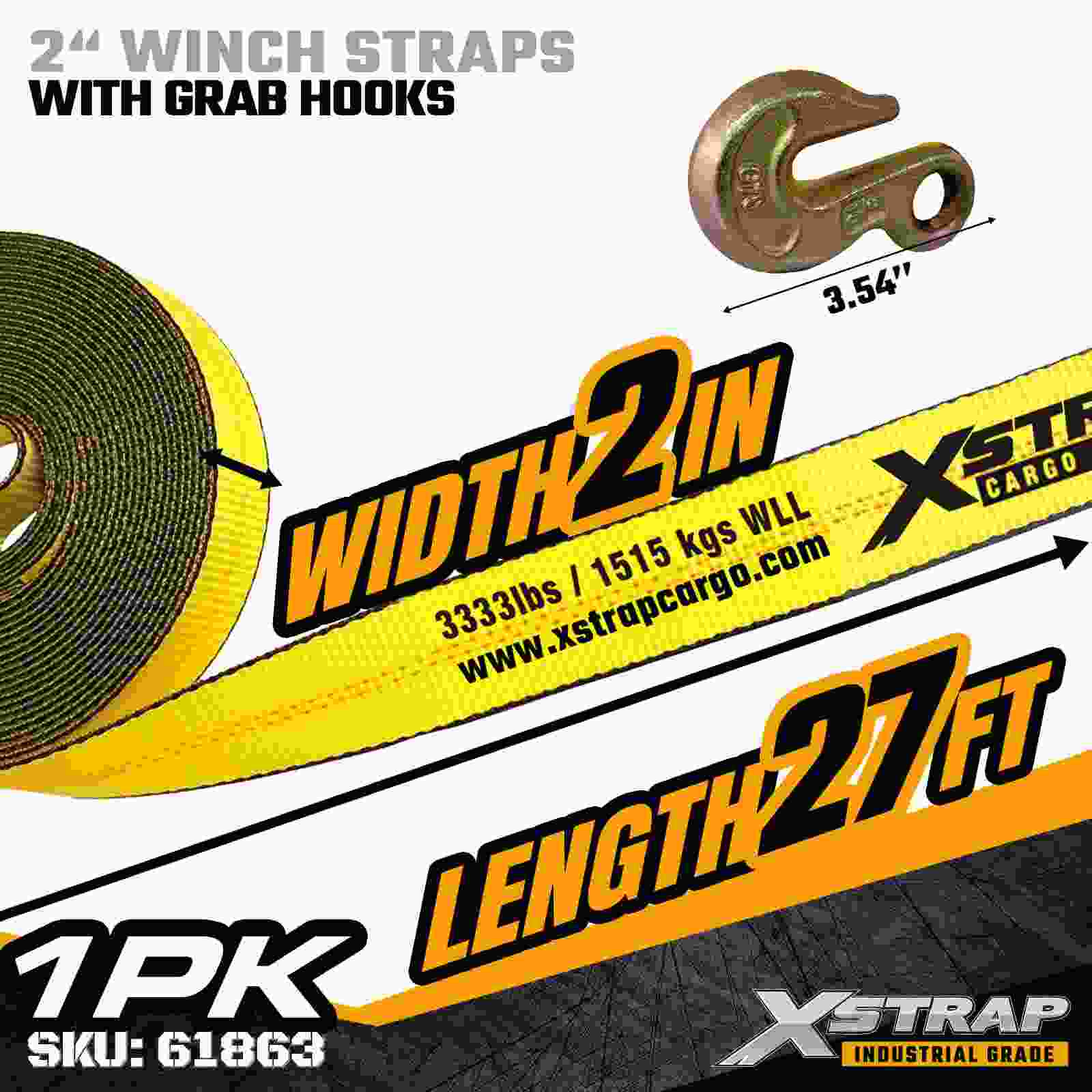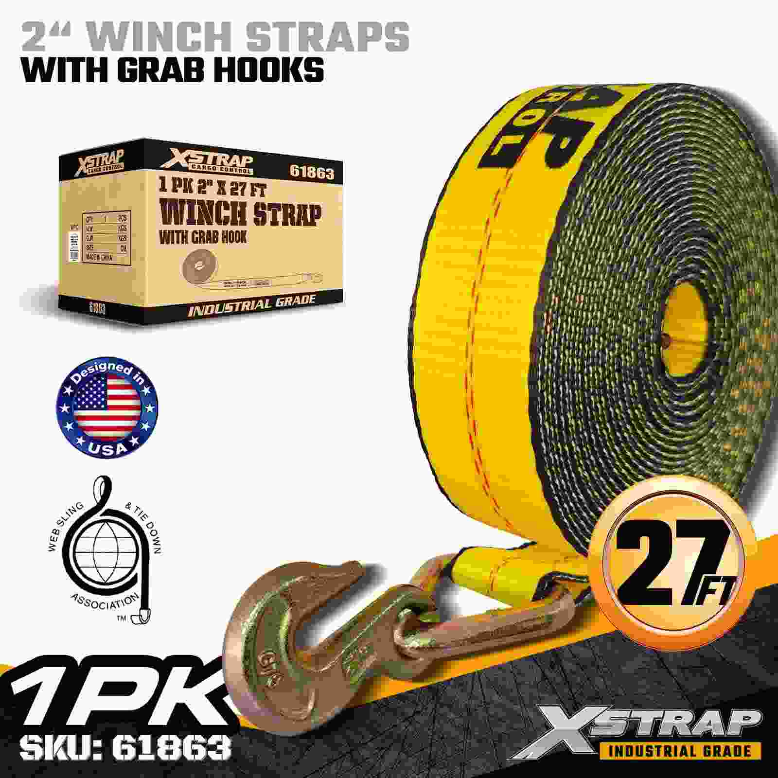 Az Xstrap 61863 2" × 27 láb méretű, szabványos csörlőszíjat megbízható síkágyas rakományrögzítésre tervezték, masszív kapaszkodóhoroggal és nagy szilárdságú poliészter hevederrel. 3333 font terhelési korláttal és 10 000 fonttal megbízható törési teljesítményt nyújt a napi teherbírásért. fűrészáru, csövek és általános logisztikai alkalmazások.
