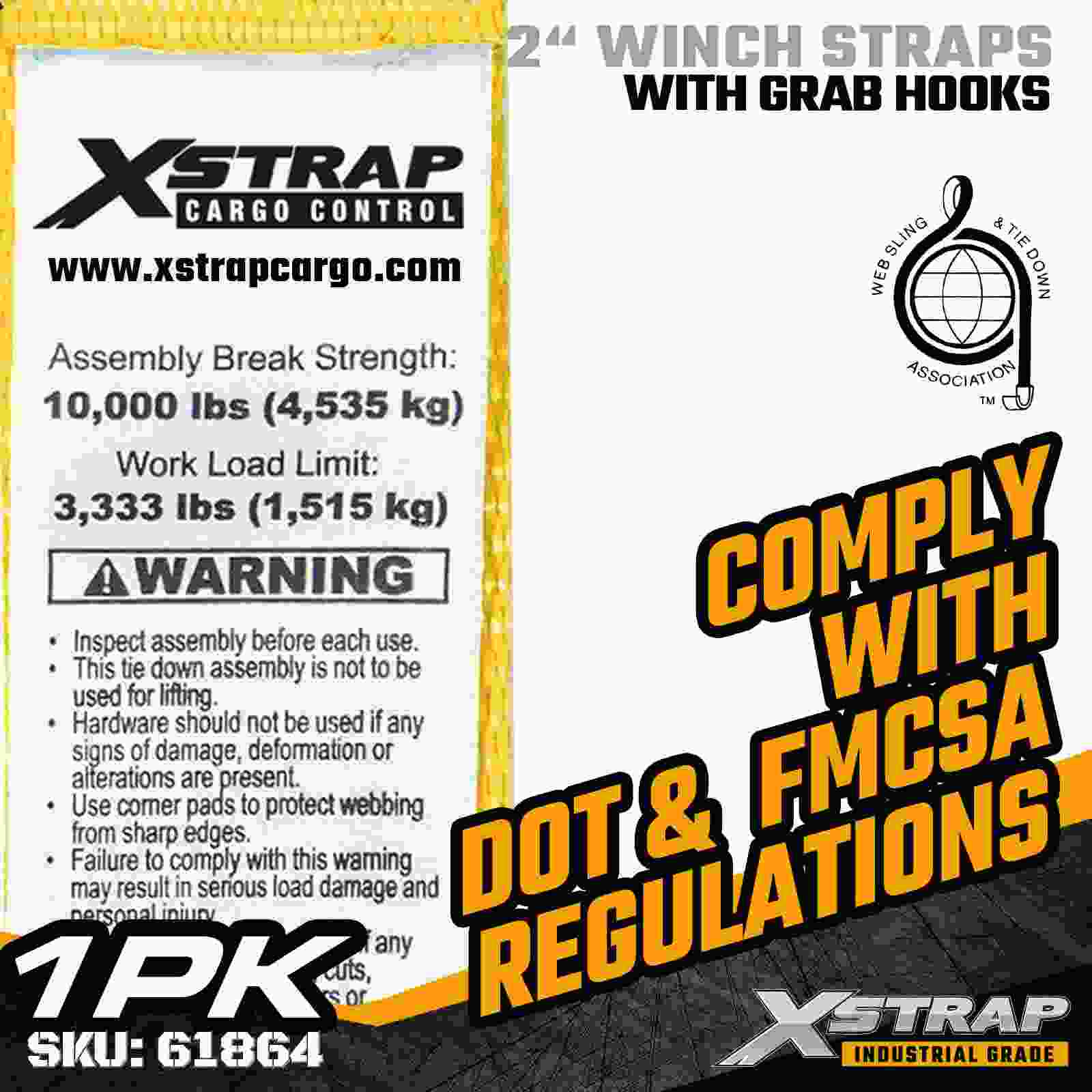 Az Xstrap 61864 2" × 30 láb méretű, szabványos csörlőszíj egy nagy teherbírású rakományrögzítési megoldás, amelyet platós pótkocsikhoz és professzionális szállításhoz terveztek. Masszív kapaszkodóhoroggal és nagy szilárdságú poliészter hevederrel készült, ez a 2 hüvelykes csörlőszíj 3333 lbs-os munkaterhelést ad. megbízható teljesítményt nyújt a fűrészáru, raklapok, csövek, gépek és általános rakomány rögzítéséhez a napi fuvarozási műveletek során.