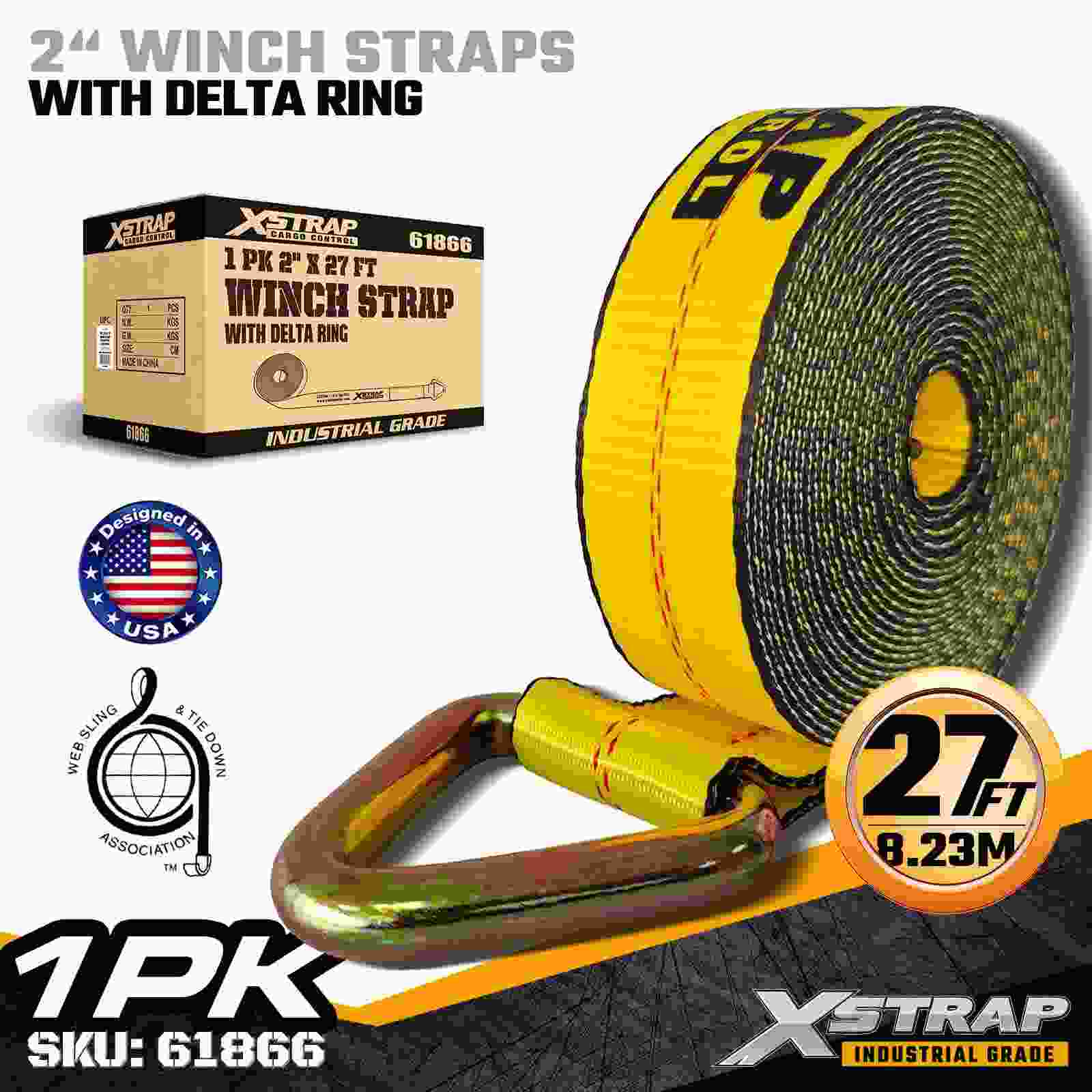 2" × 27 láb szabványos csörlőszíj delta gyűrűvel