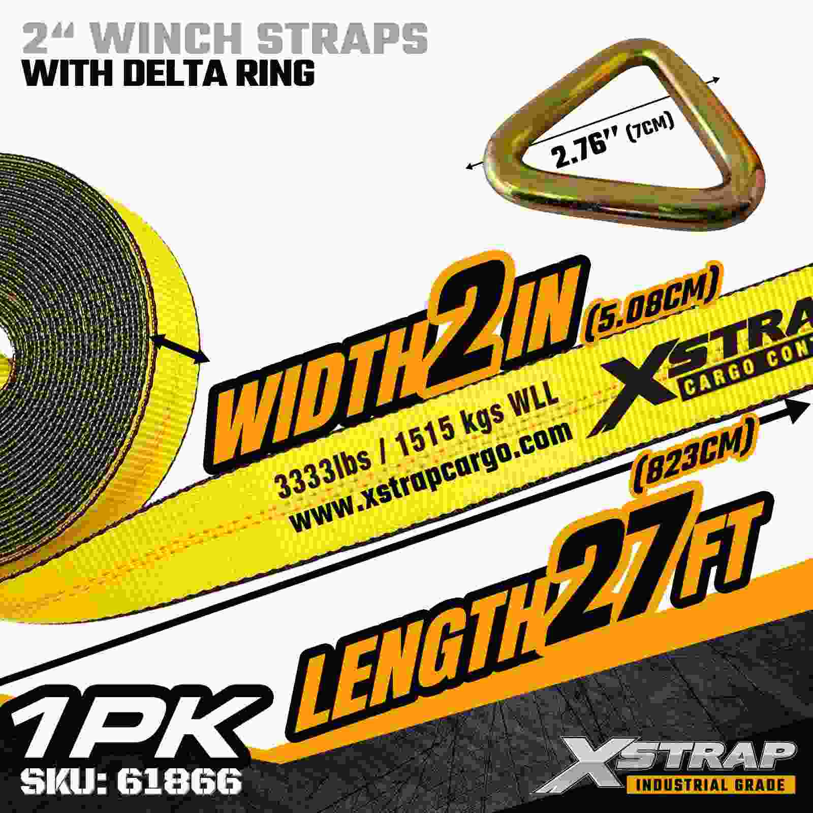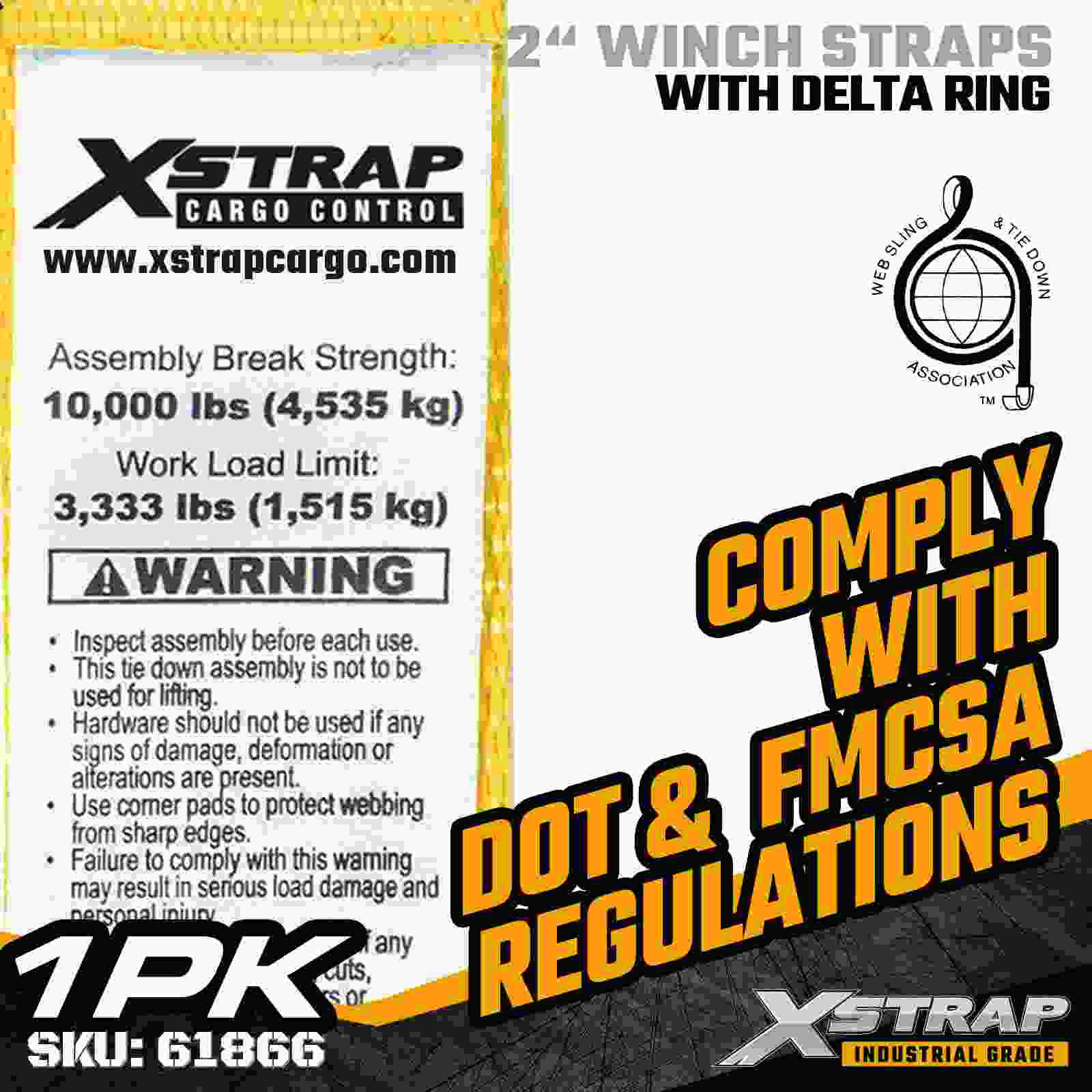 Az Xstrap 61866 2" × 27 láb méretű szabványos csörlőszíj egy tartós és megbízható rakományrögzítő heveder, amelyet platós pótkocsikhoz és professzionális szállításhoz terveztek. Erős Delta gyűrűvel és nagy szilárdságú poliészter hevederrel, ez a 2 hüvelykes csörlőszíj 3 333 lbs-os munkaterhelést ad. ideális raklapok, fűrészáru, csövek, gépek és általános rakomány rögzítésére a napi fuvarozási műveletek során.