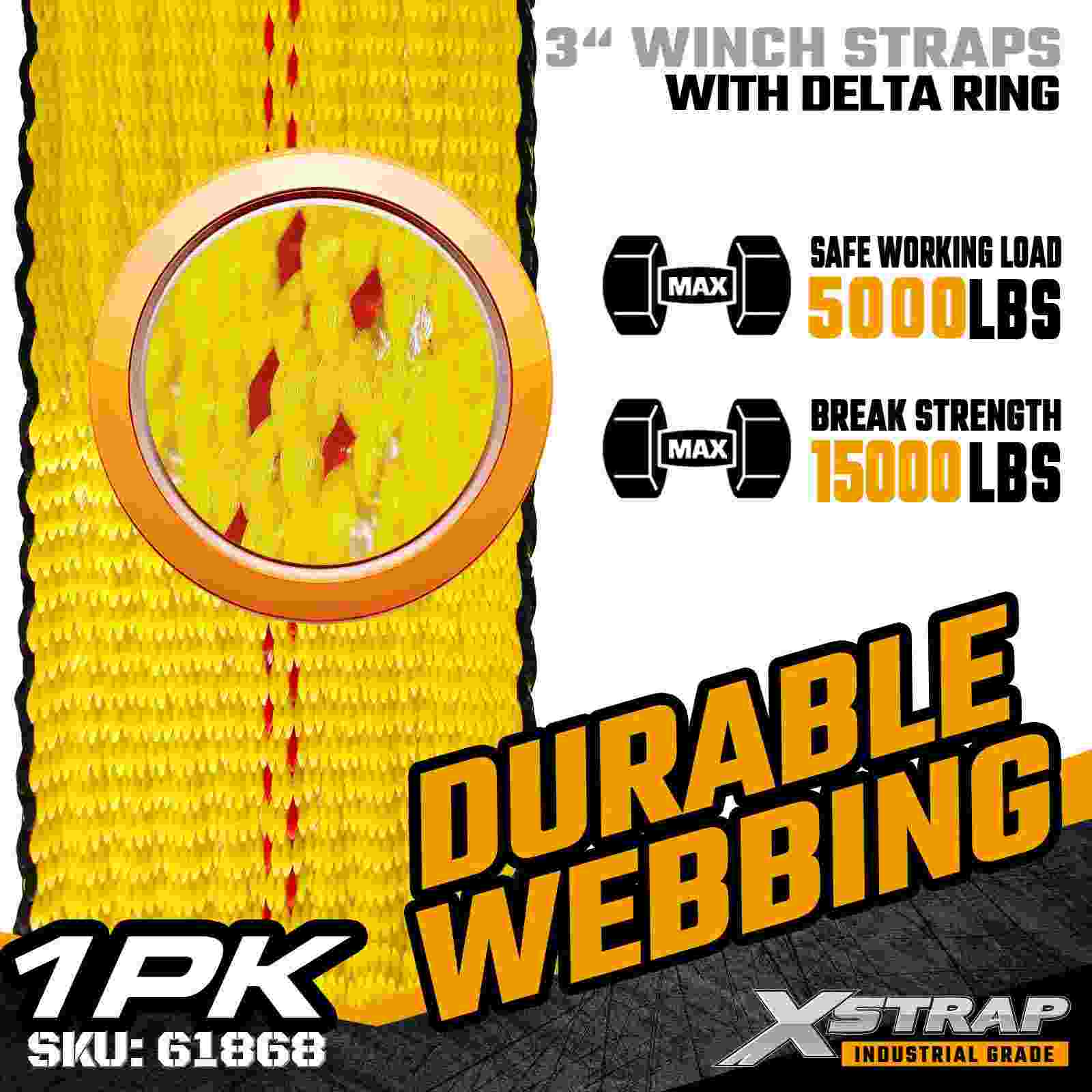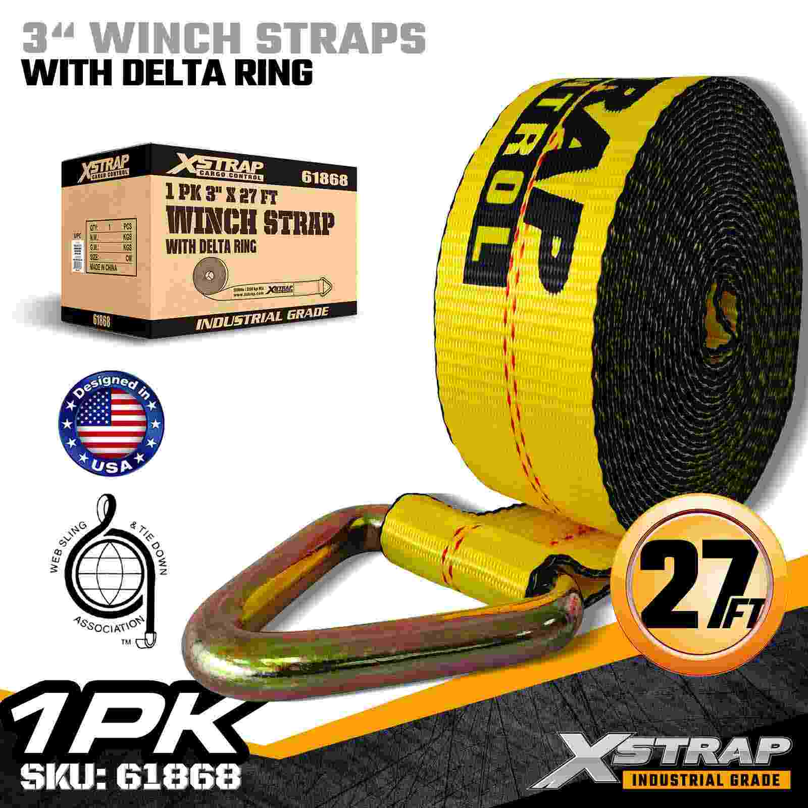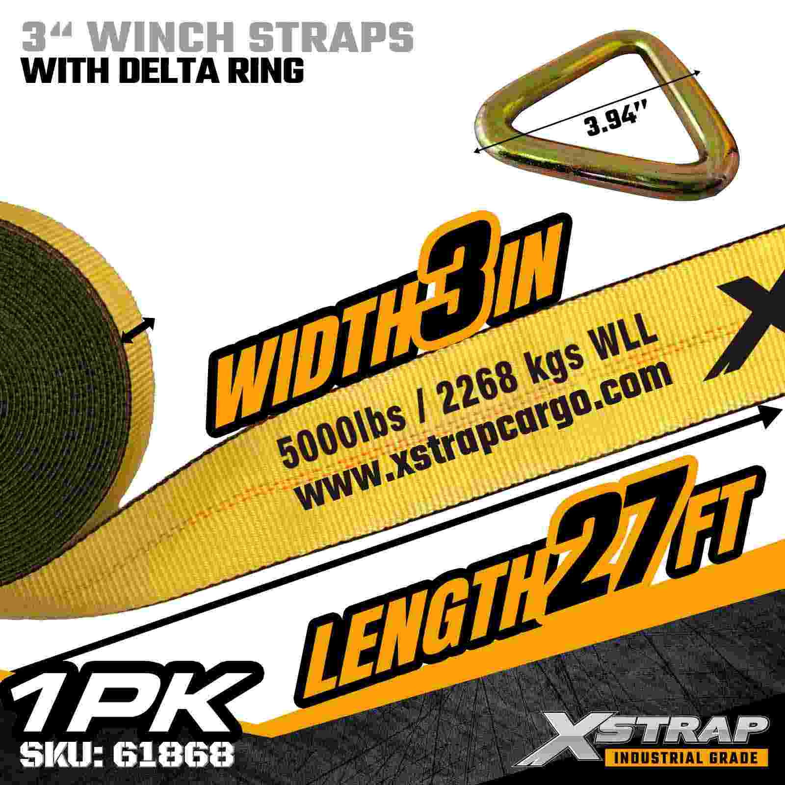 3" × 27 láb szabványos csörlőszíj delta gyűrűvel