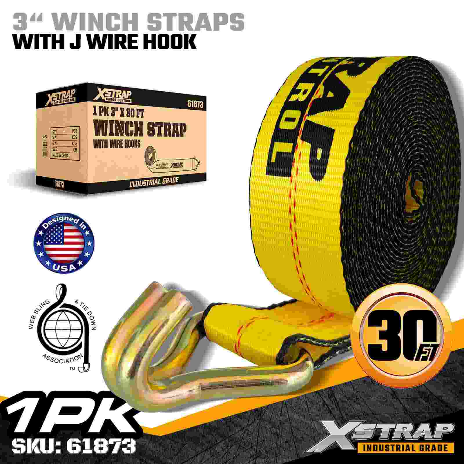 Az Xstrap 61873 3" × 30 láb szabványos csörlőszíj egy nagy teherbírású rakományrögzítő heveder, amelyet platós pótkocsikhoz és túlméretes rakományokhoz terveztek. Megerősített dróthoroggal és extraszéles, 3 hüvelykes poliészter hevederrel, ez a 3 hüvelykes csörlőszíj 5000 Lo5000 l,500 l,500 l, 000 l, 0 Szakítószilárdság A meghosszabbított 30 láb hosszúság további hatótávolságot biztosít, így ideális szélesebb, magasabb vagy szabálytalan alakú rakományok rögzítésére, amelyek rugalmas rögzítési lehetőségeket igényelnek.