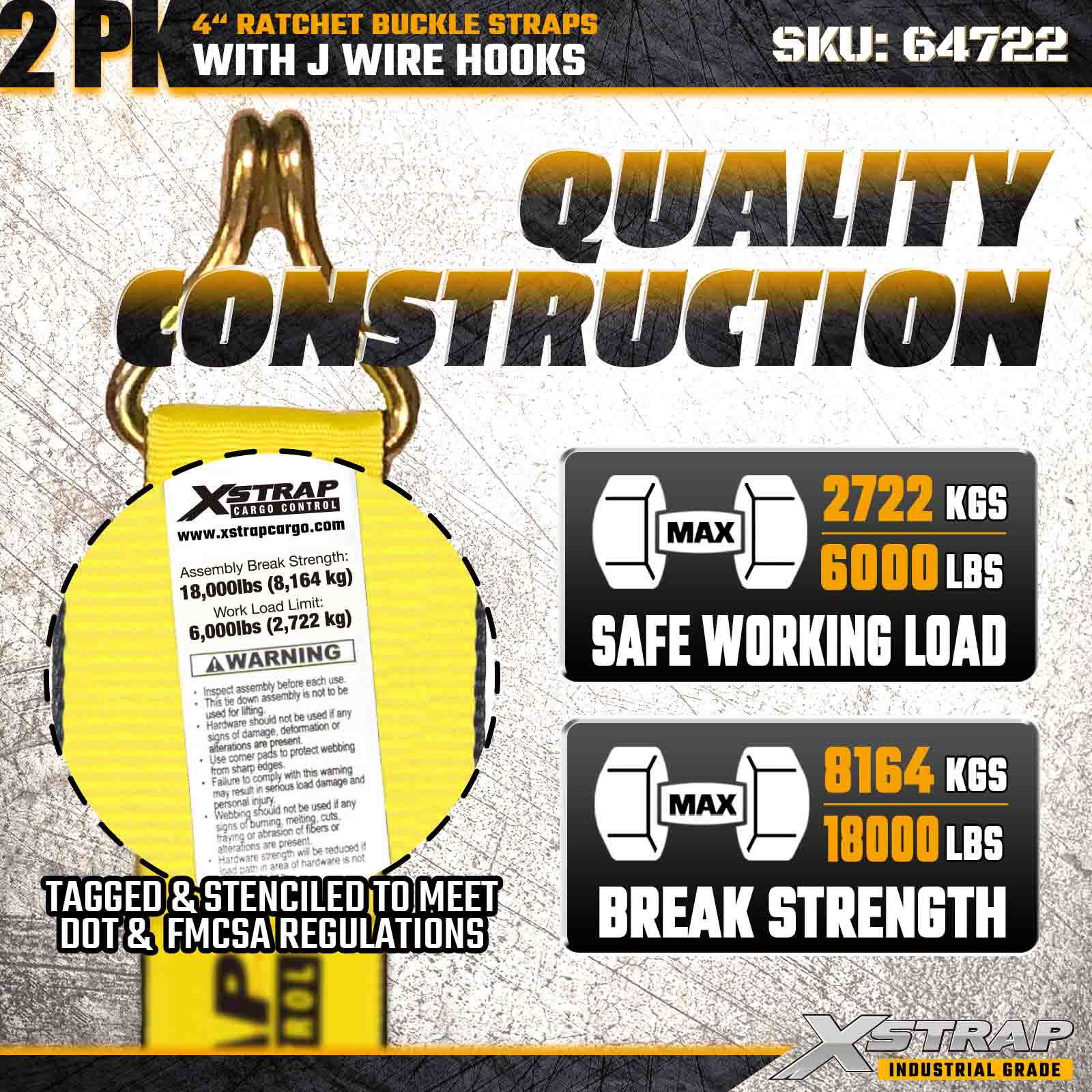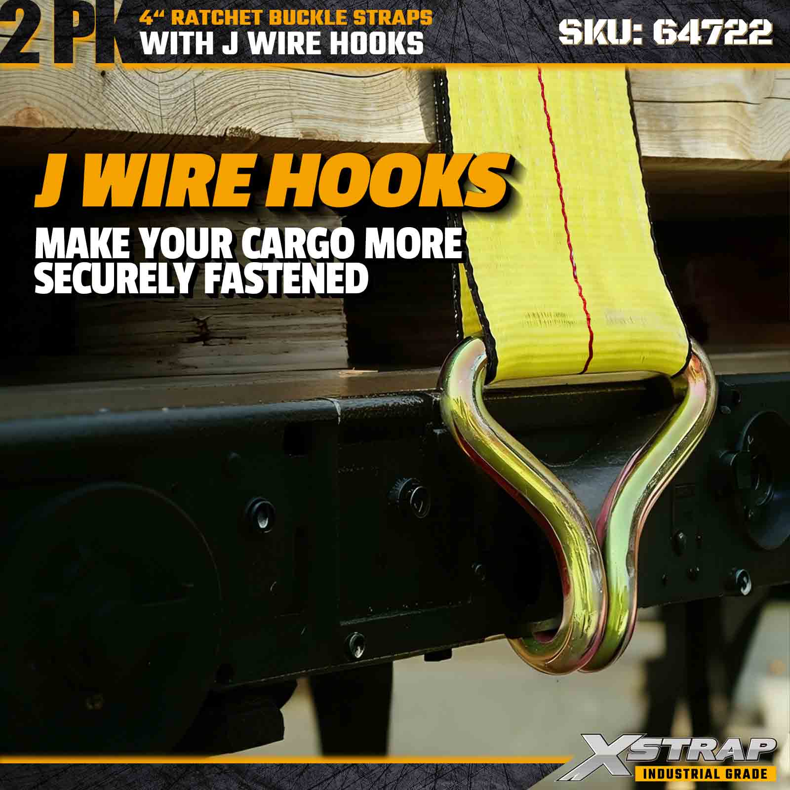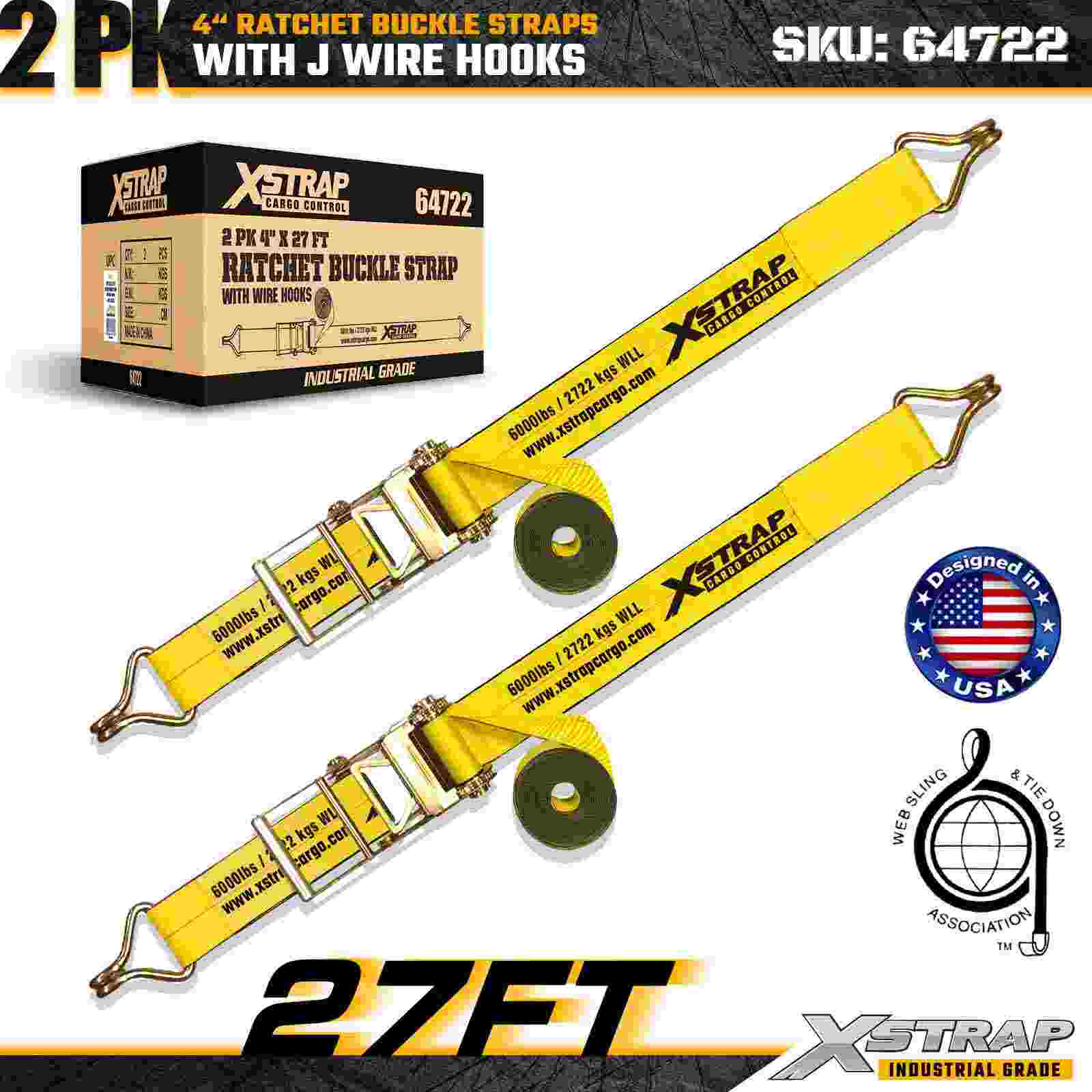 Az Xstrap 64722 4" × 27 láb racsnis csatszíjakat (2 csomag) a nagy teherbírású rakományrögzítésre tervezték, megerősített drótkampókkal és tartós racsnis mechanizmussal. A 6000 font terhelési korláttal és a 18 000 font súlyú, lapos rögzítésű gépekkel ideálisak a törésekhez. szállítás, fűrészáru, acél rakományok és ipari rakomány alkalmazások.
