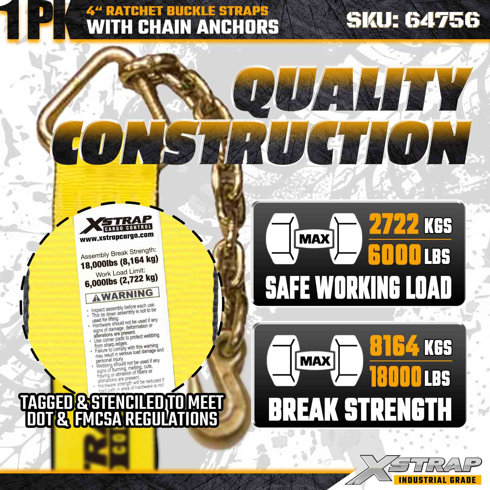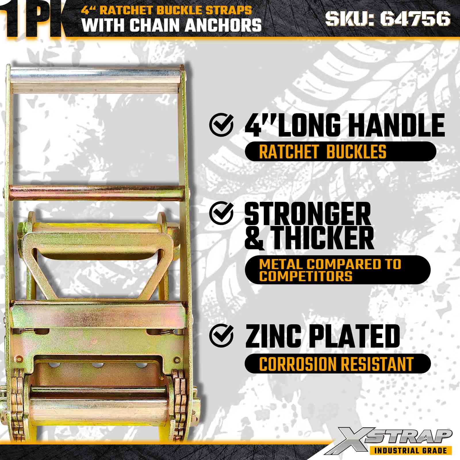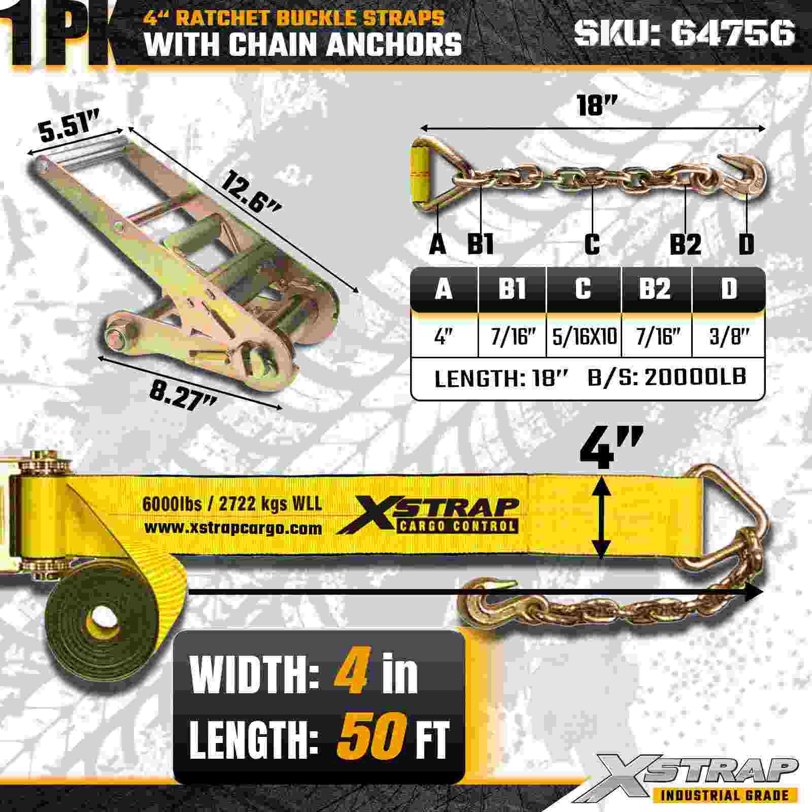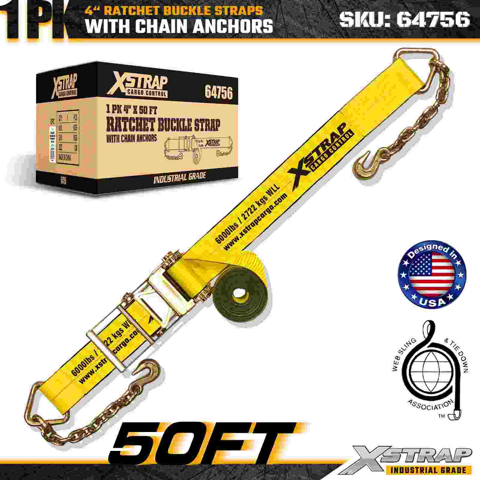 Xstrap 64756 4" × 50 láb racsnis csatszíj láncrögzítőkkel, törési szilárdság 18 000 font (1 csomag)
