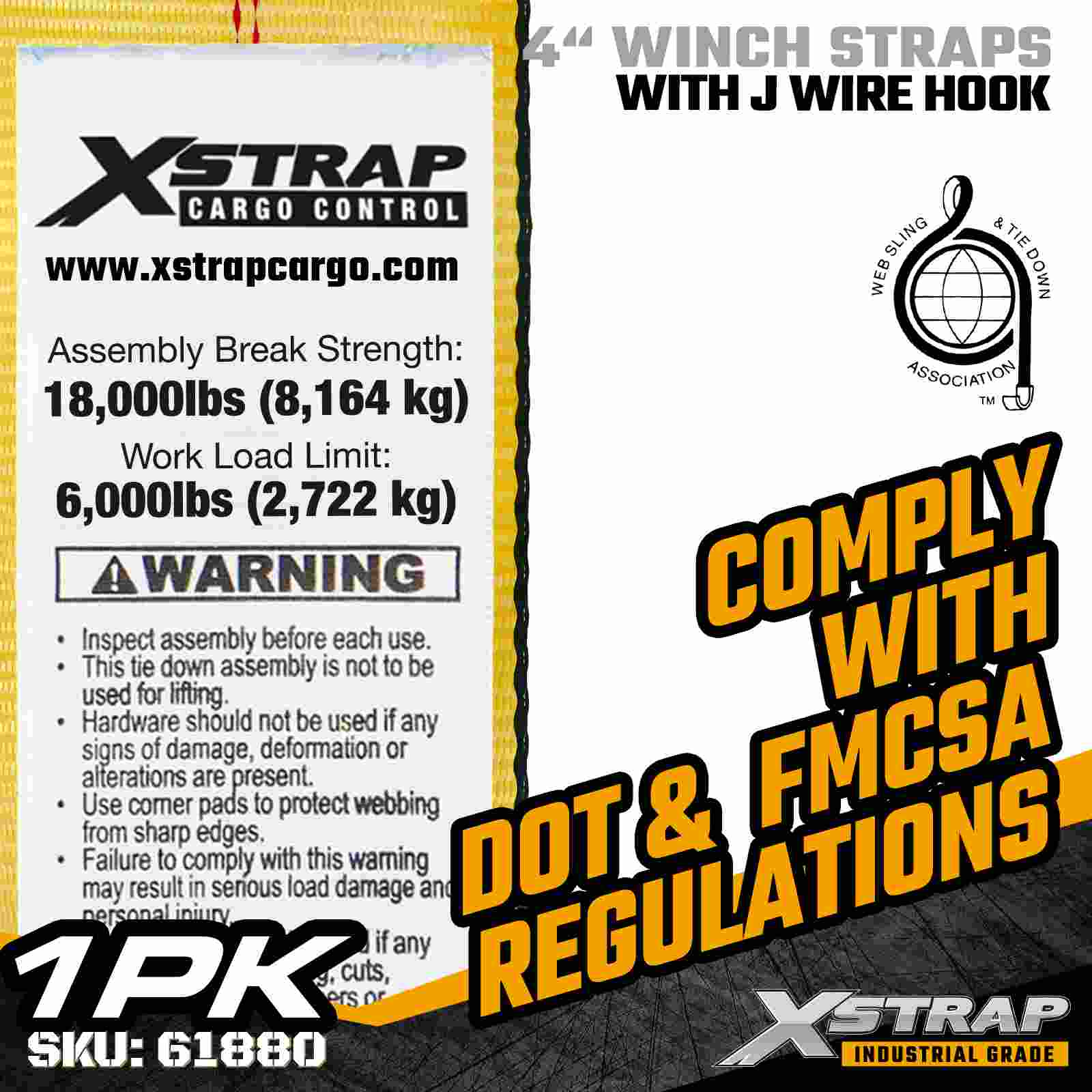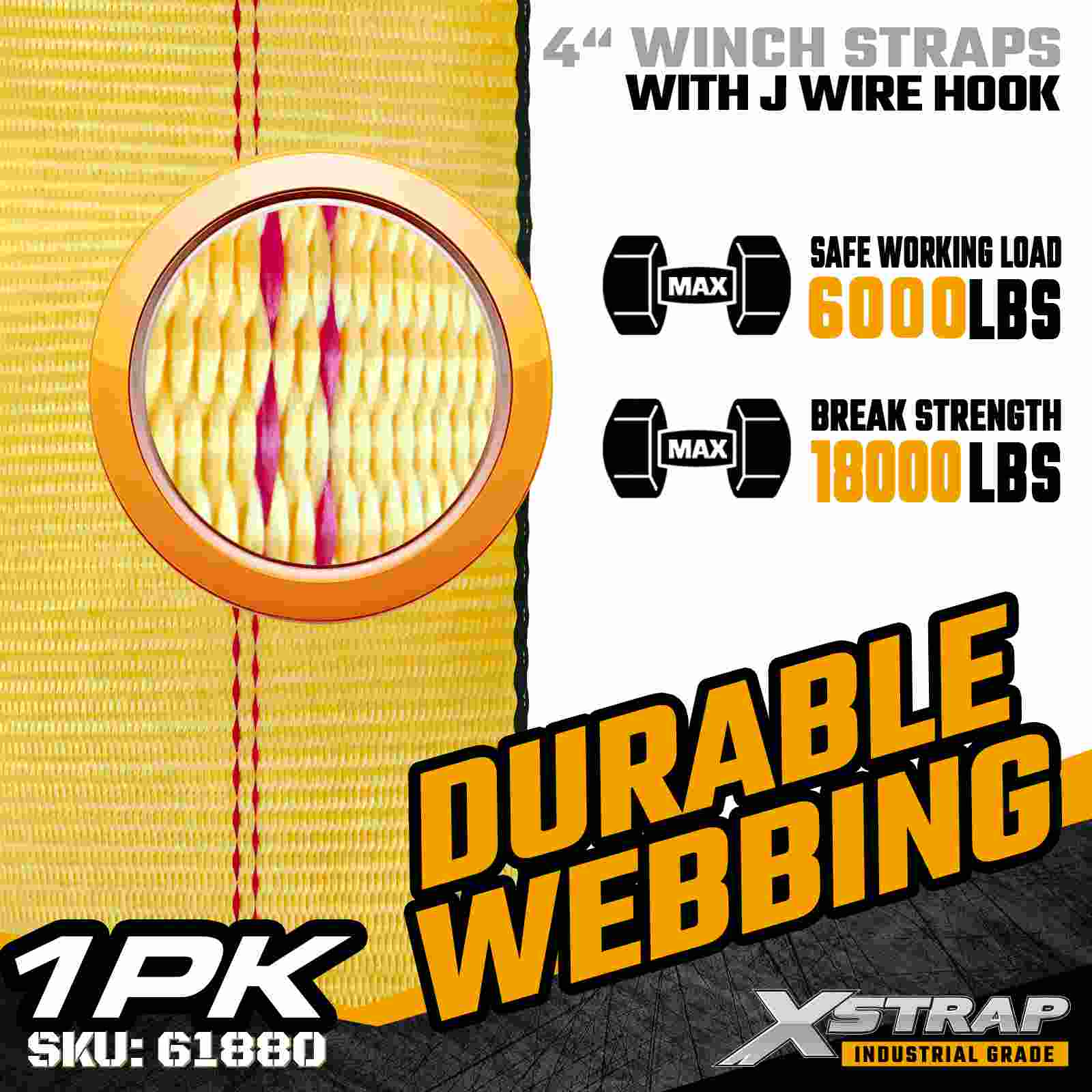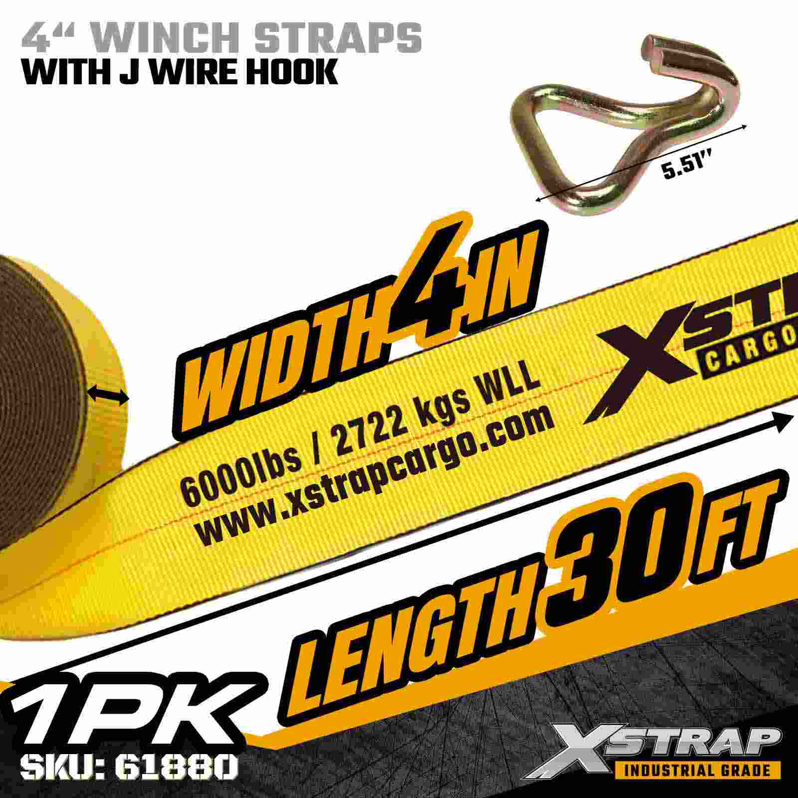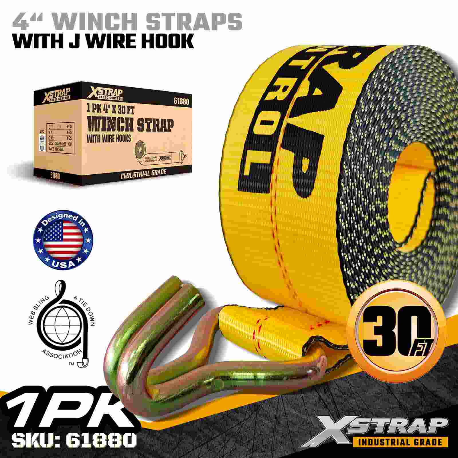 Az Xstrap 61880 4" × 30 láb szabványos csörlőszíj egy nagy kapacitású, kiterjesztett hatótávolságú rakományrögzítő heveder, amelyet platós pótkocsikhoz és túlméretezett ipari rakományokhoz terveztek. Megerősített dróthoroggal és ultraszéles, 4 hüvelykes poliészter hevederrel, ez a 4 hüvelykes csörlőszíj nagy teljesítményű és terhelést biztosít. 18 000 font törési szilárdság A meghosszabbított 30 láb hosszúság további hatótávolságot és rugalmasságot biztosít, így ideális széles, magas vagy szabálytalan alakú rakományok rögzítésére, amelyek adaptálható rögzítési lehetőségeket igényelnek.