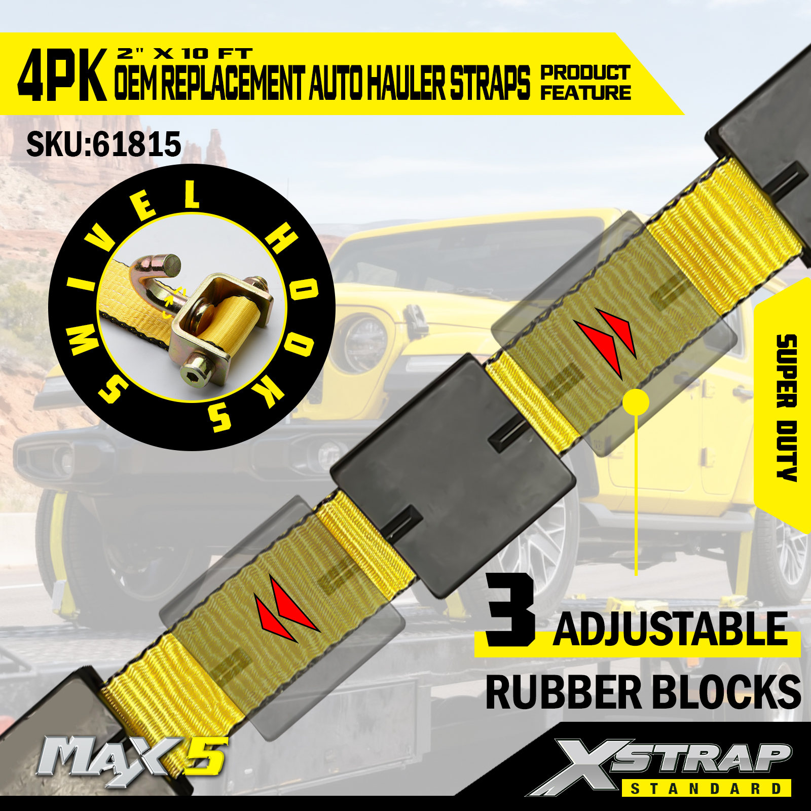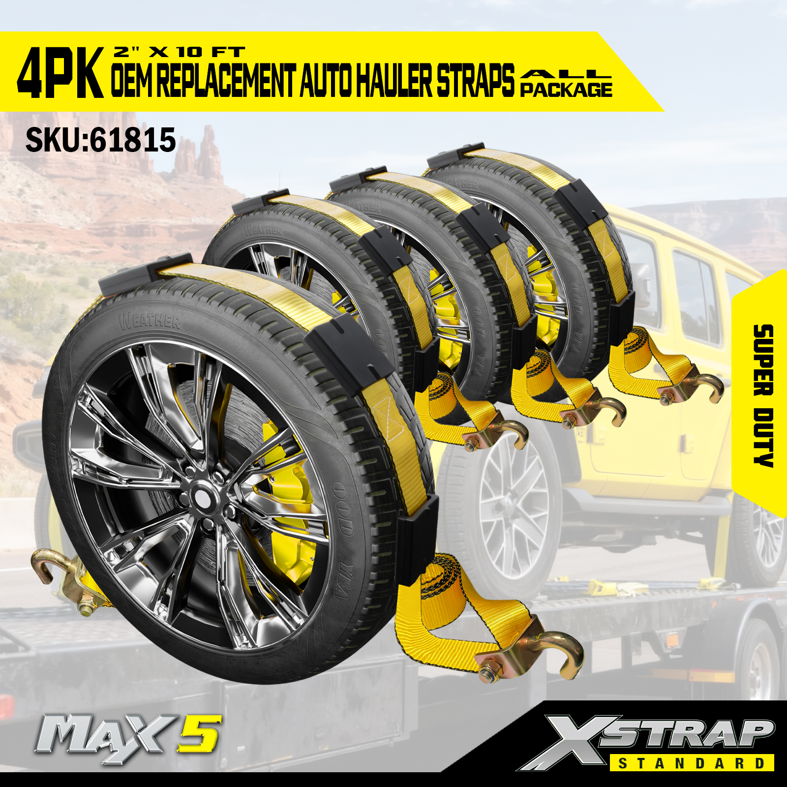 Xstrap autószállító hevederek, nagy teherbírású, 6600 lbs szakítószilárdságú - gumiabroncs-rögzítő hevederek utánfutókhoz, kerék feletti rögzítés gumibilincsekkel SUV-hoz, teherautóhoz, ATV-hez, UTV-hez