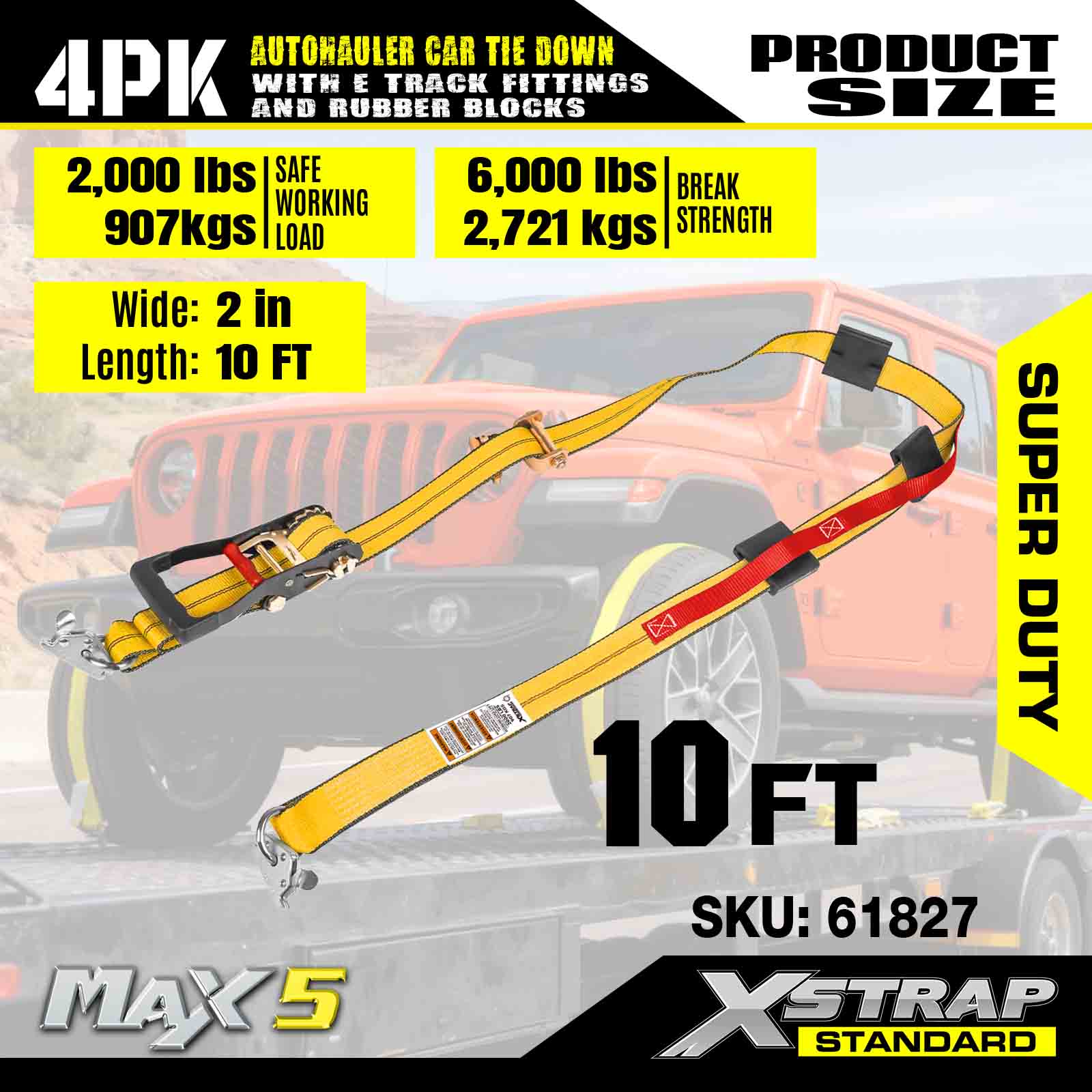 - Biztonság és sokoldalúság: 2000 font terhelési korláttal és 6000 font szakítószilárdsággal büszkélkedhet, ezek a hevederek megbízható biztonságot nyújtanak terepjárók, teherautók, ATV-k és UTV-k számára – ideálisak a masszív vontatási igényekhez.
