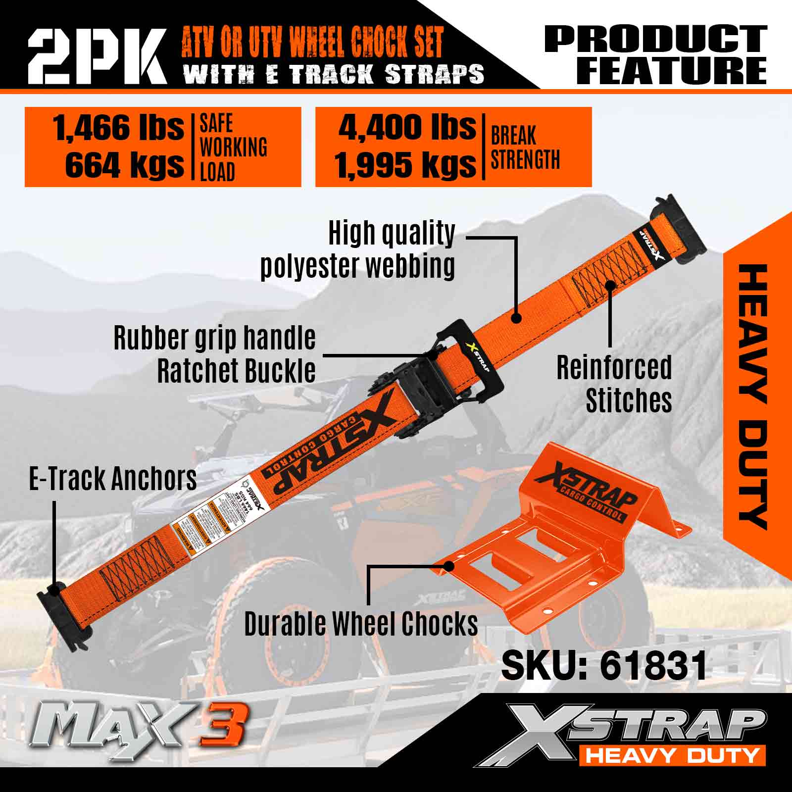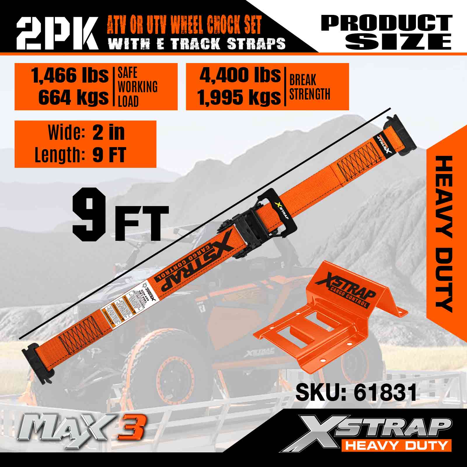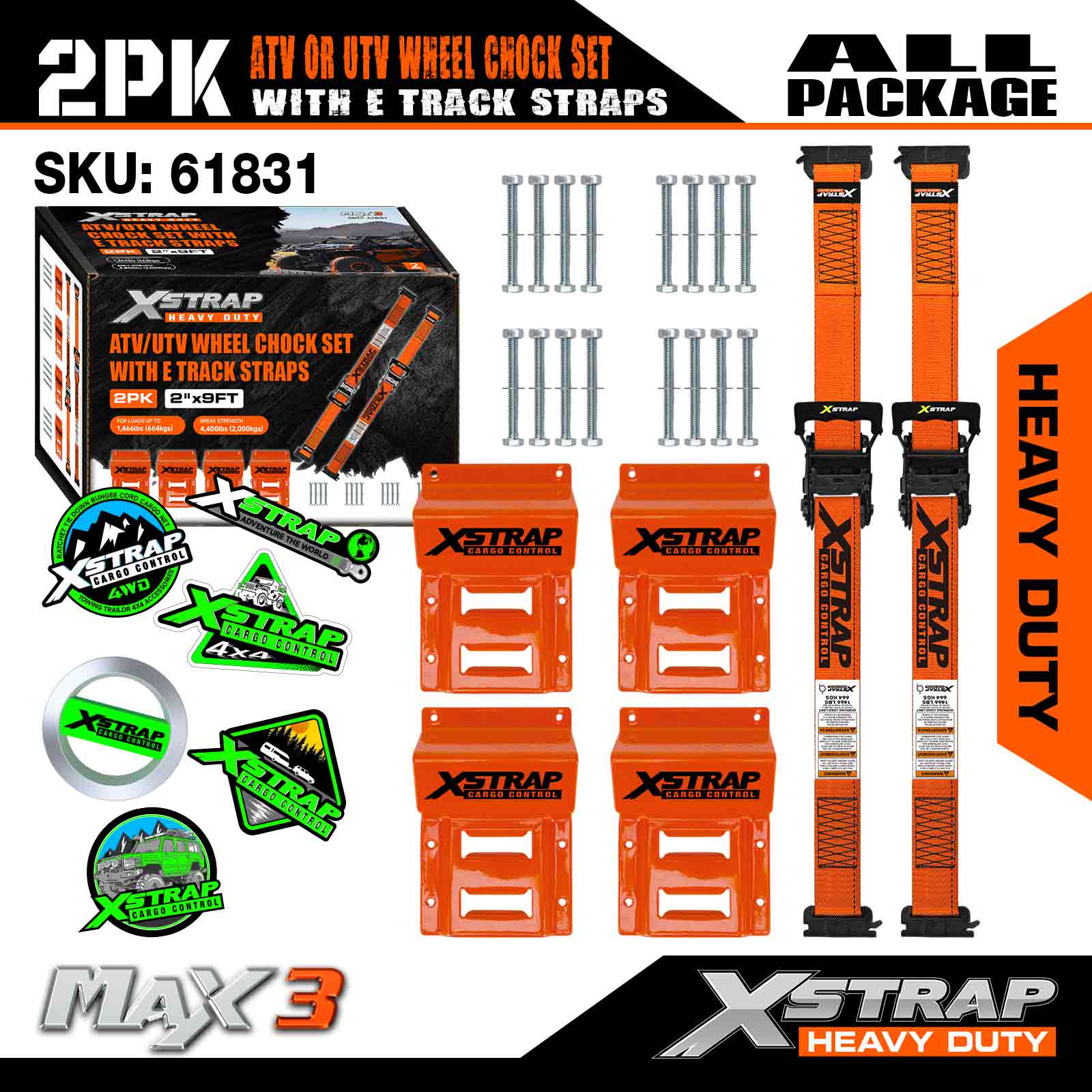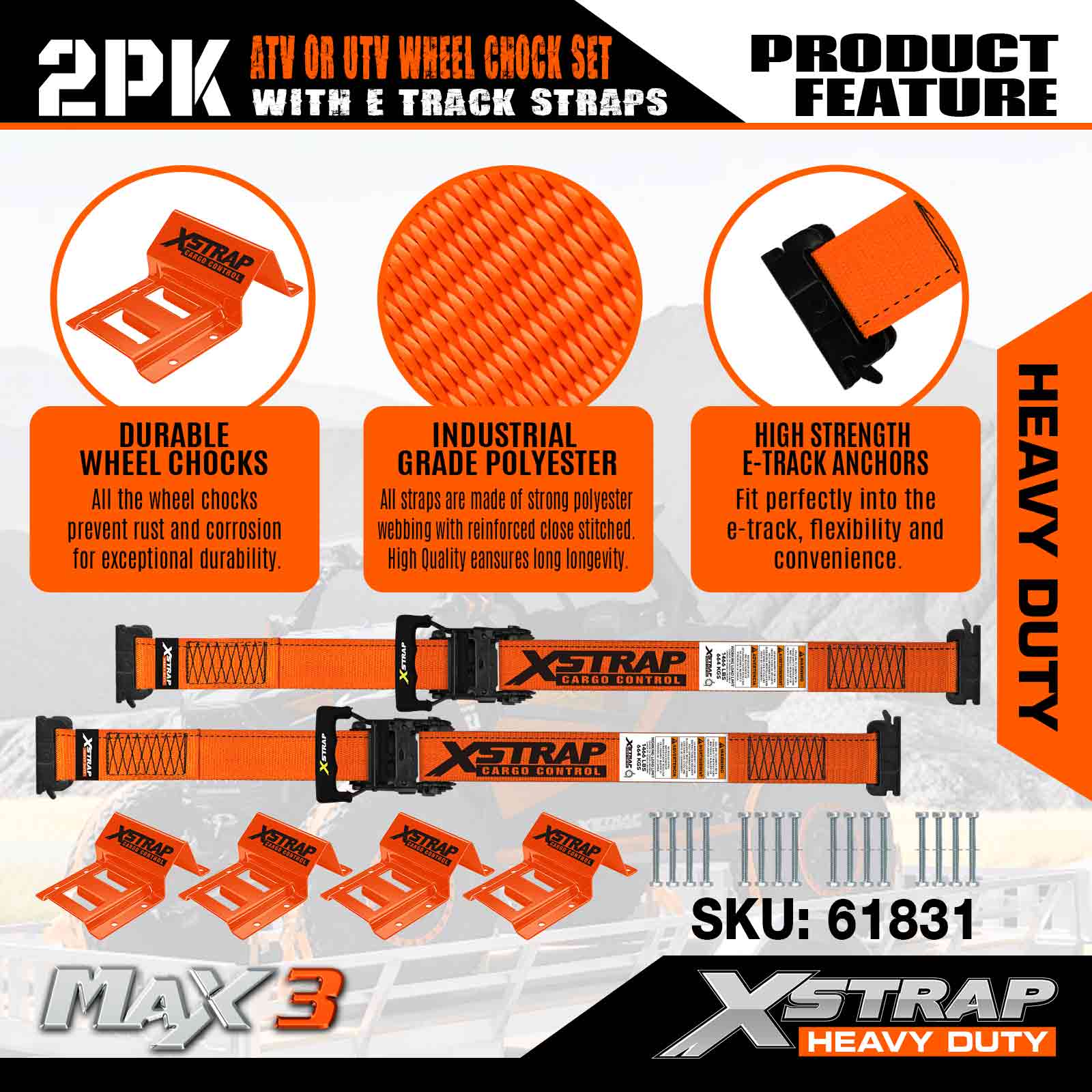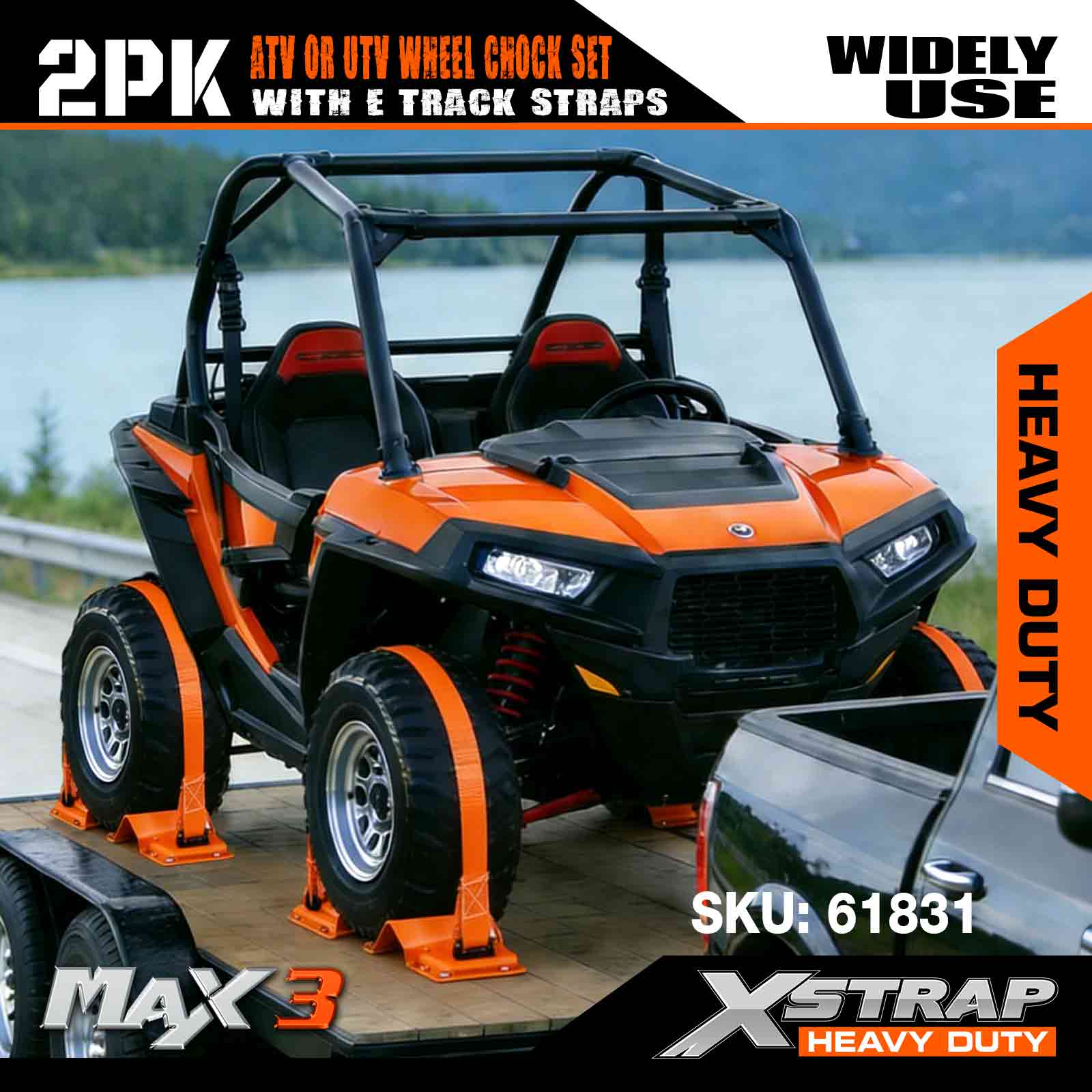 Xstrap UTV kerékékék rögzítő készlet 4400 font törési szilárdság (4) nagy teherbírású pótkocsi gumiabroncs racsnis hevederek (8) kerékékek - E nyomtávrendszer ATV-hez, UTV-hez, fűnyíró négykerekűhöz - narancs