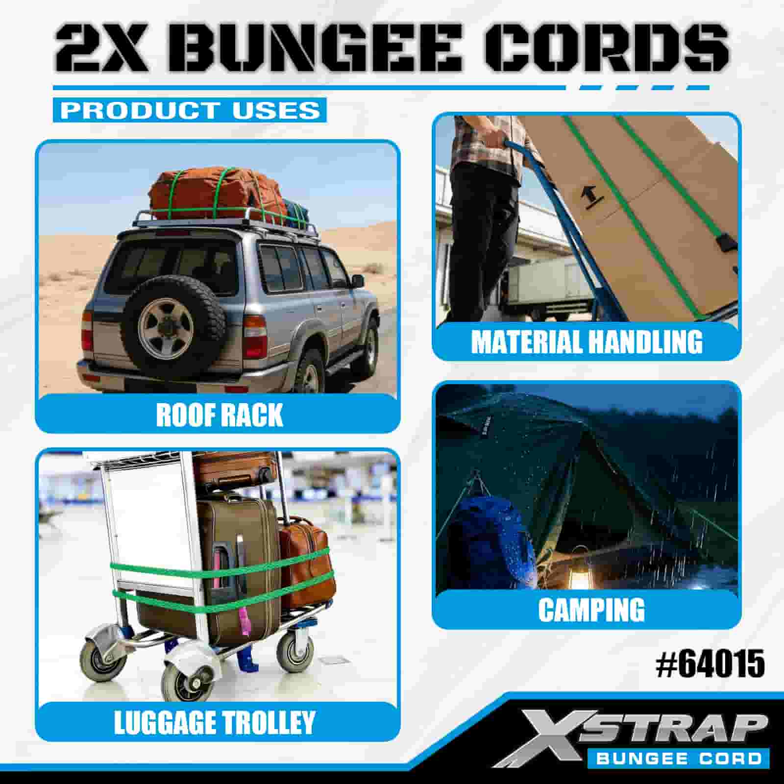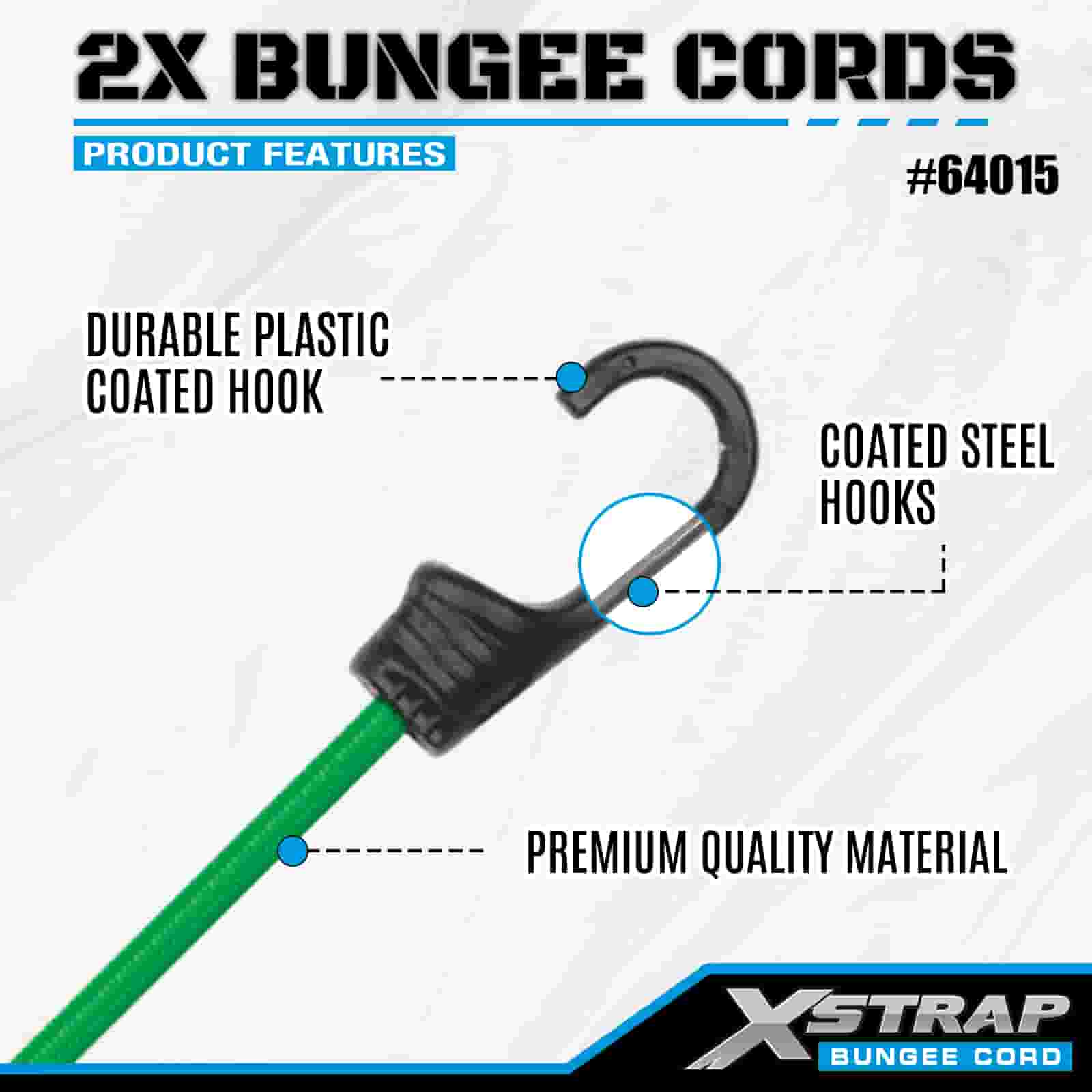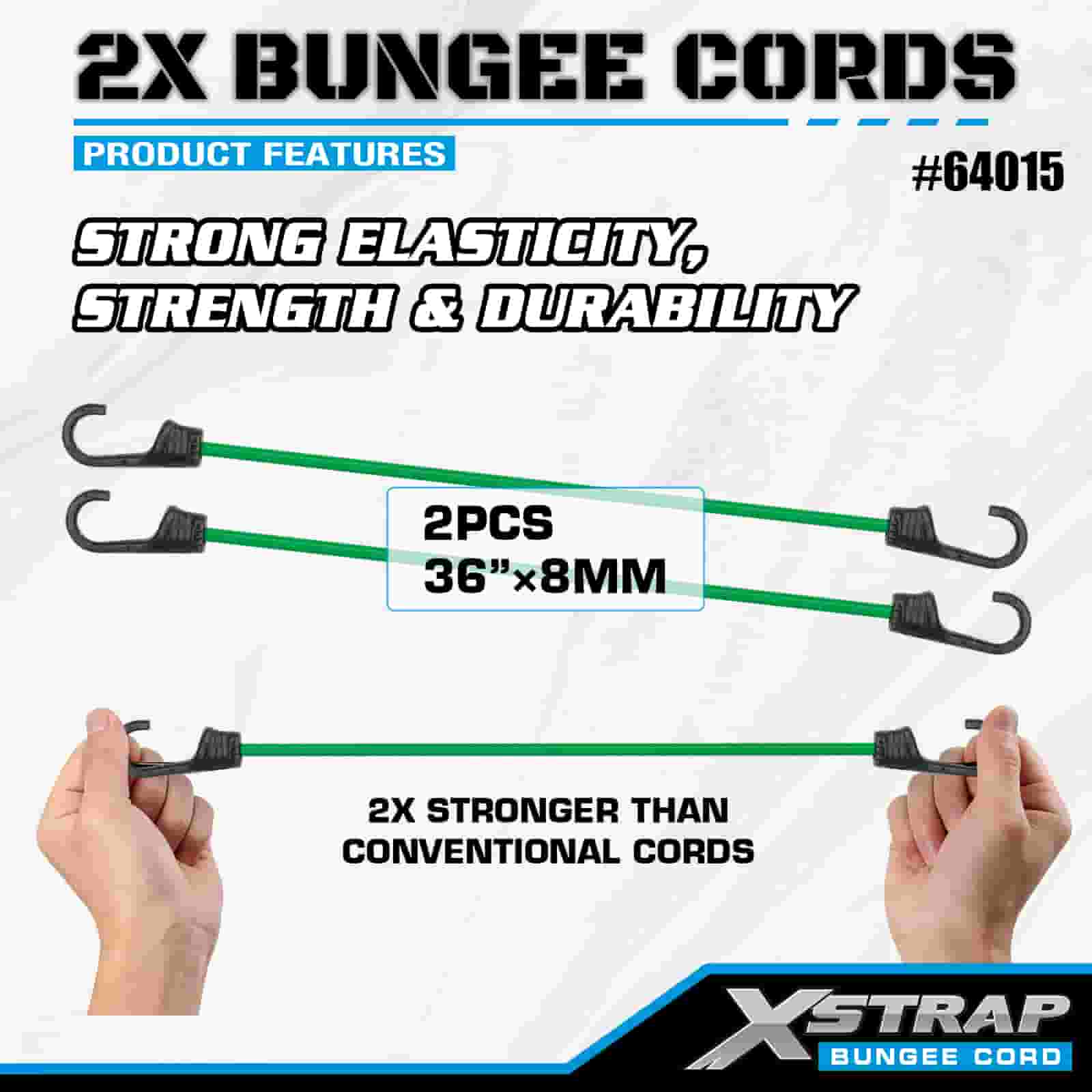 Xstrap 2PK 2X Bungee zsinórok 8 mm x 36”, 88-110 font szakítószilárdság erős horgokkal a rakomány irányításához.