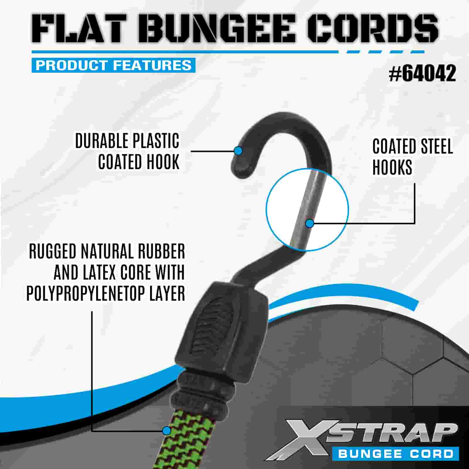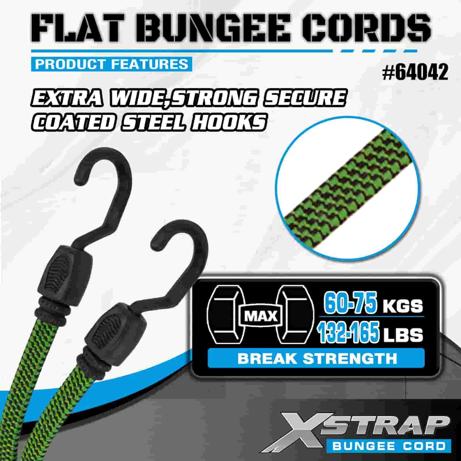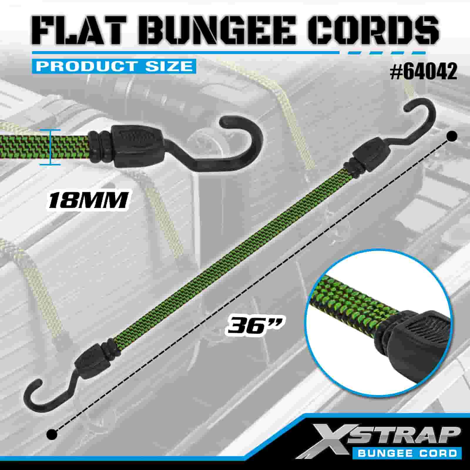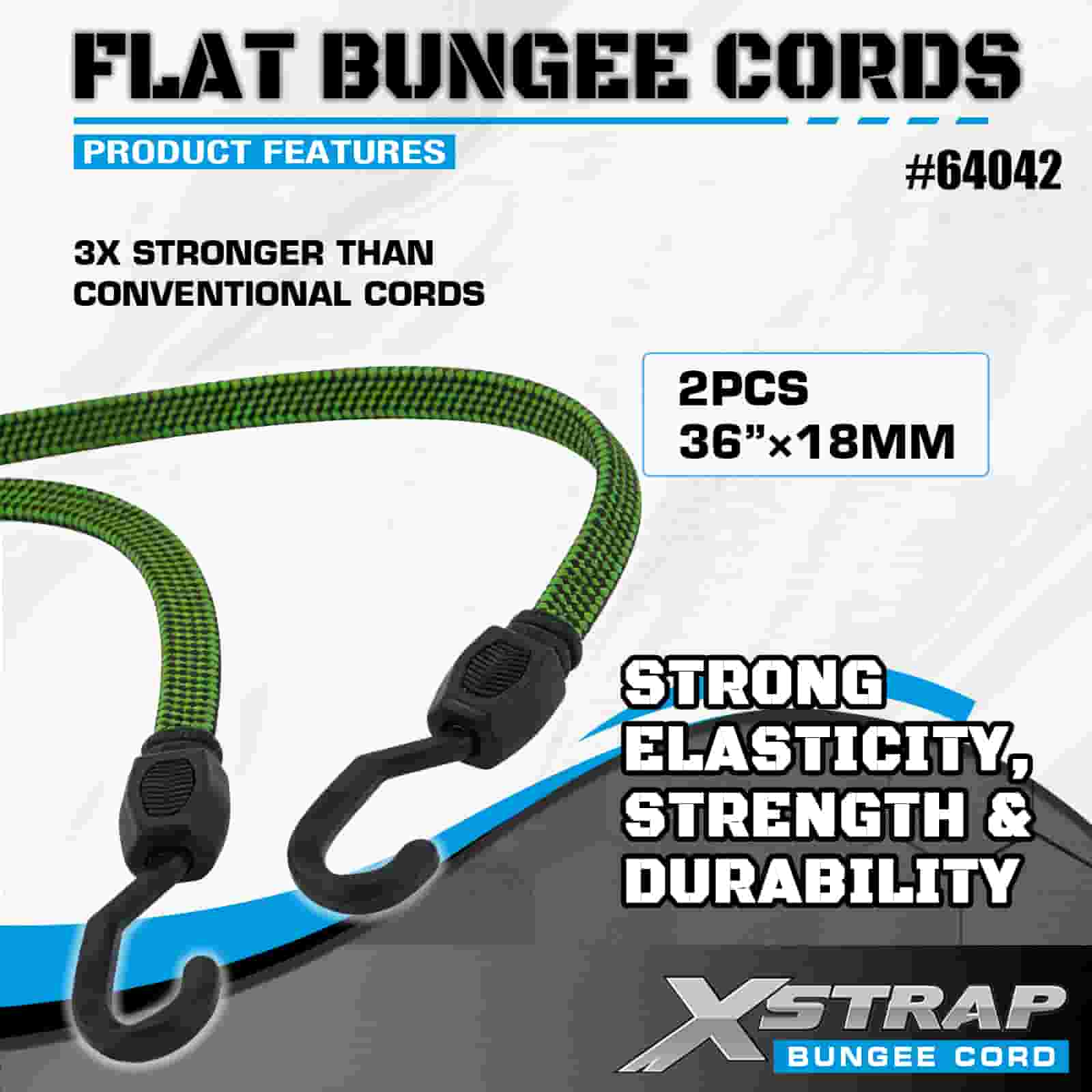 Xstrap 2PK lapos bungee zsinórok 18 mm x 36”, 132-165 font szakítószilárdság erős horgokkal rakomány ellenőrzésére .