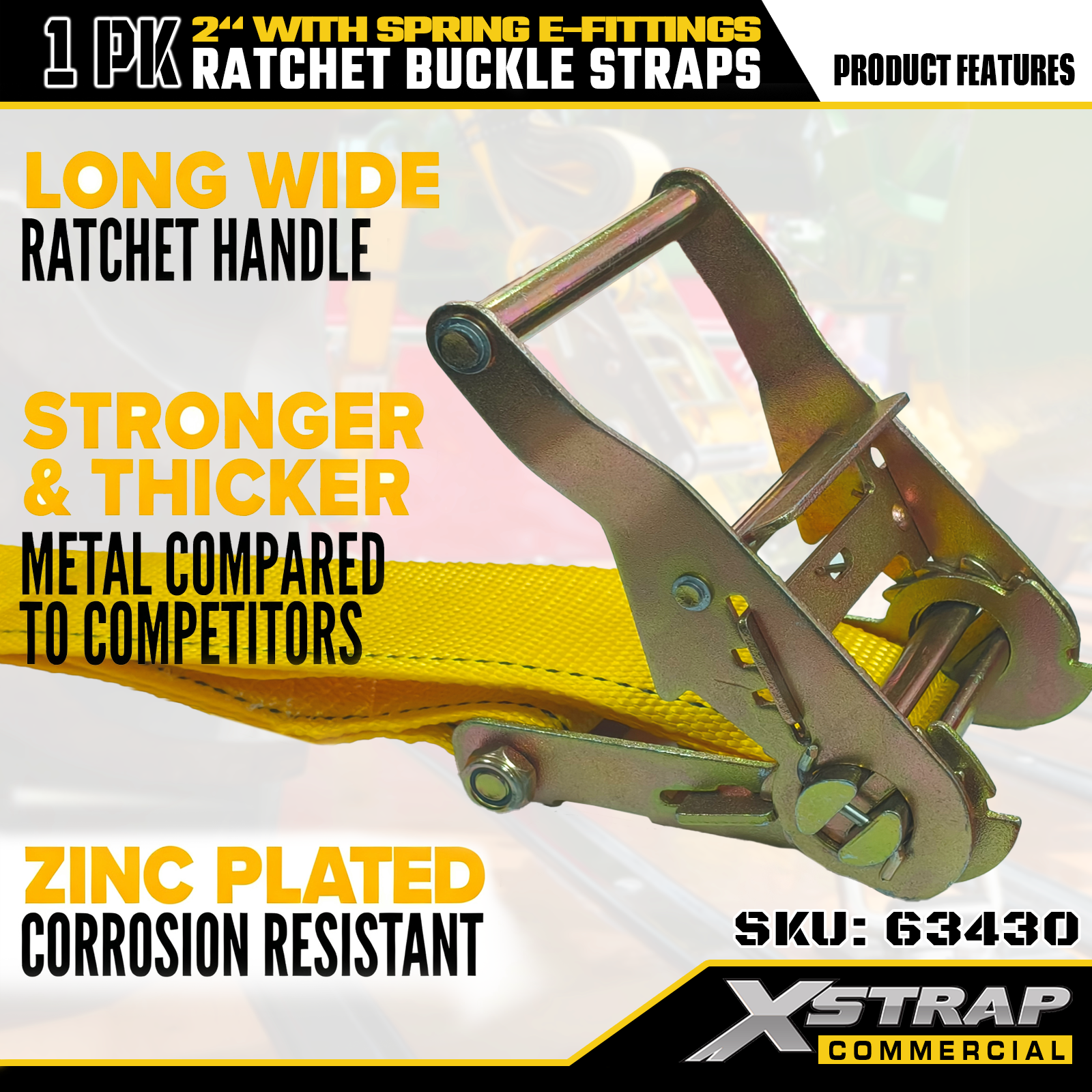 Xstrap 1 csomag poliészter racsnis rögzítő hevederek rugós E csatlakozókkal, 2" x 12" nagy teherbírású rakományrögzítő hevederek, 4401 font (1467 font) teherautó, fűnyíró, ATV-k számára