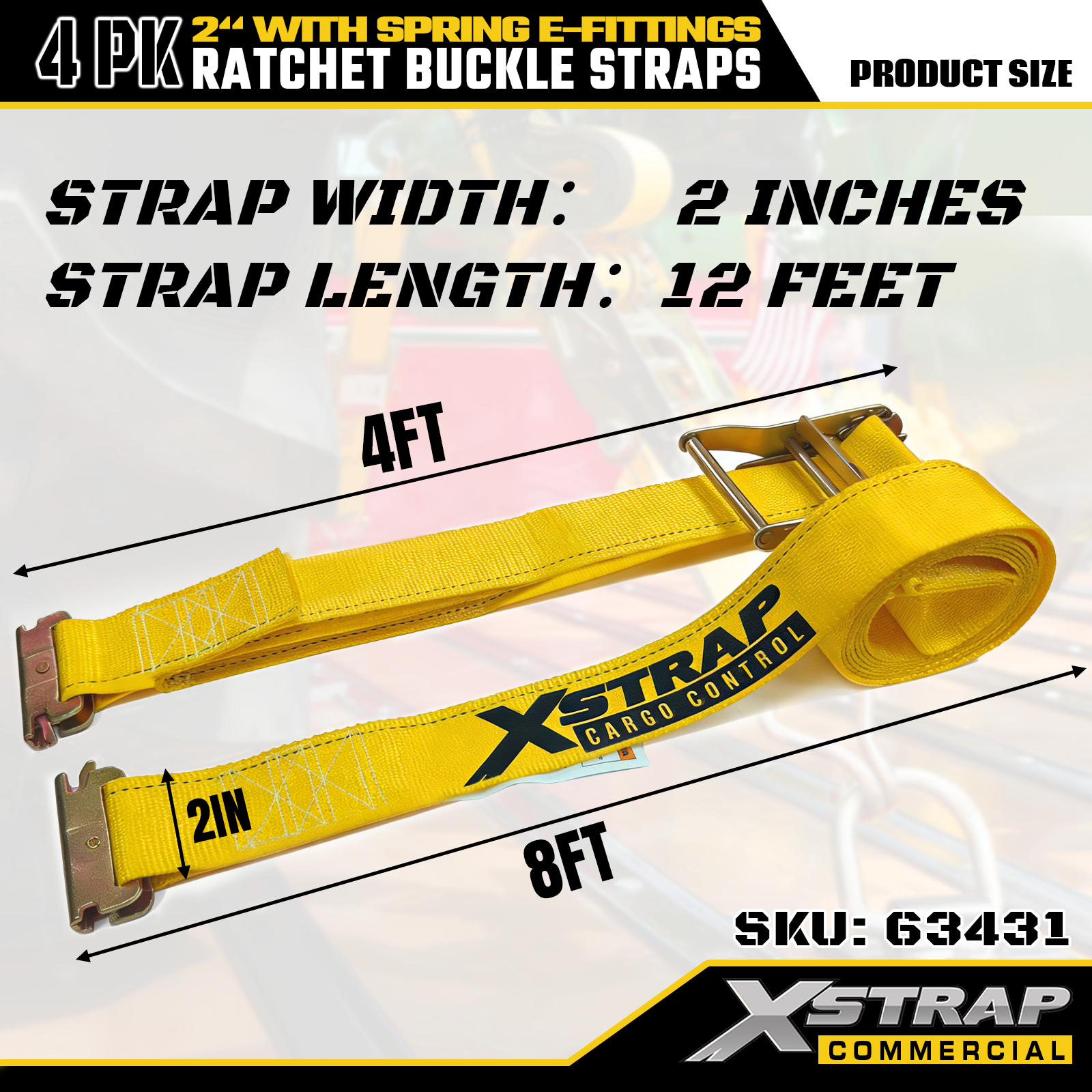 Xstrap 4 csomagos racsnis rögzítőhevederek, 2" x 12" poliészter rakományrögzítő hevederek, 1467 font biztonságos munkaterhelés és 4401 font szakítószilárdság, fém kampókkal teherautókhoz, fűnyírókhoz, ATV-khez