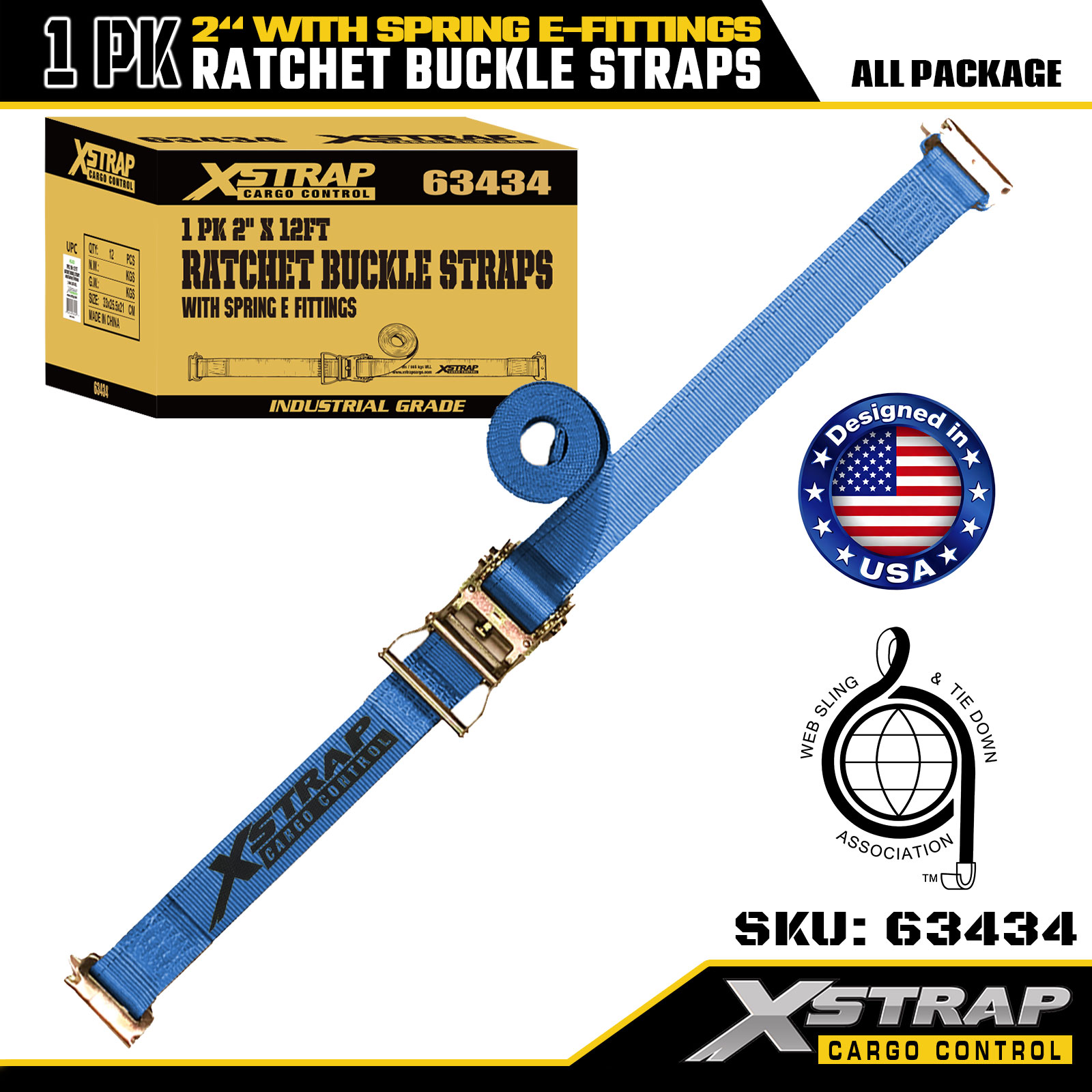 Xstrap 1 csomagos racsnis rögzítőhevederek, 2" x 20" poliészter rakományrögzítő hevederek, 1467 font biztonságos munkaterhelés és 4401 font szakítószilárdság, rugós E-szerelvényekkel teherautókhoz, fűnyírókhoz, ATV-khez