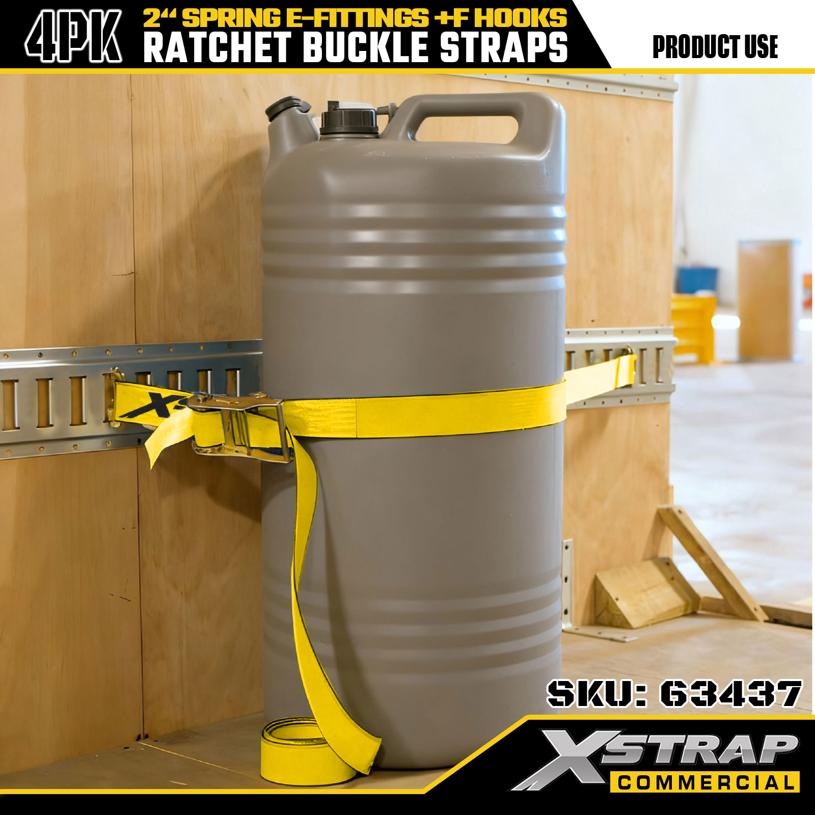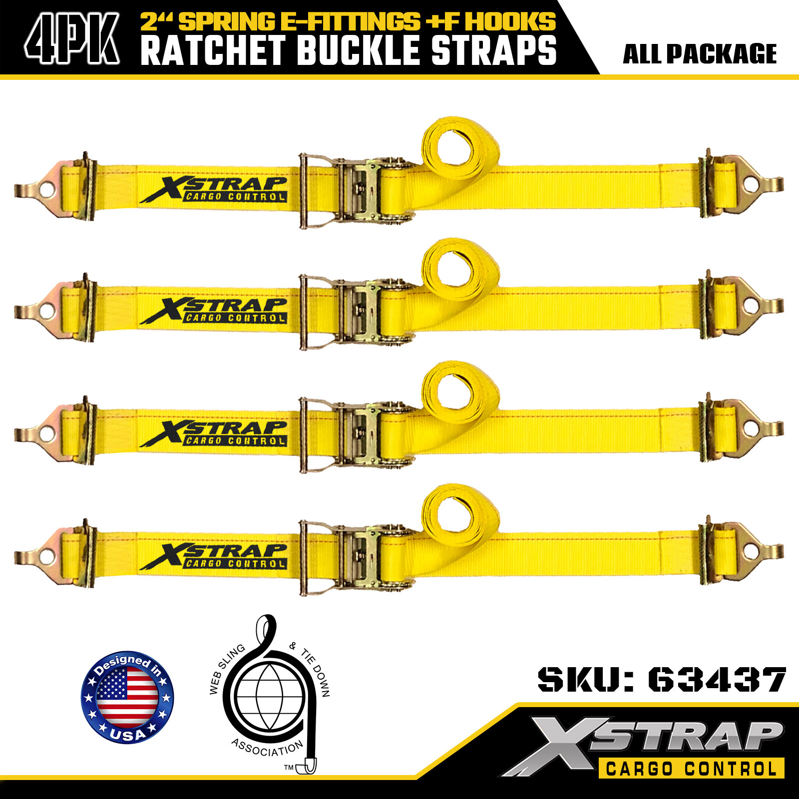 Xstrap 4 csomag, nagy teherbírású, racsnis rögzítőpántok, 2" x 12" nagy szilárdságú poliészter rugós E-szerelvényekkel és F-kampókkal, 733 font súlyú nehéz teherbírású rögzítők pótkocsikhoz, teherautókhoz és motorkerékpárokhoz