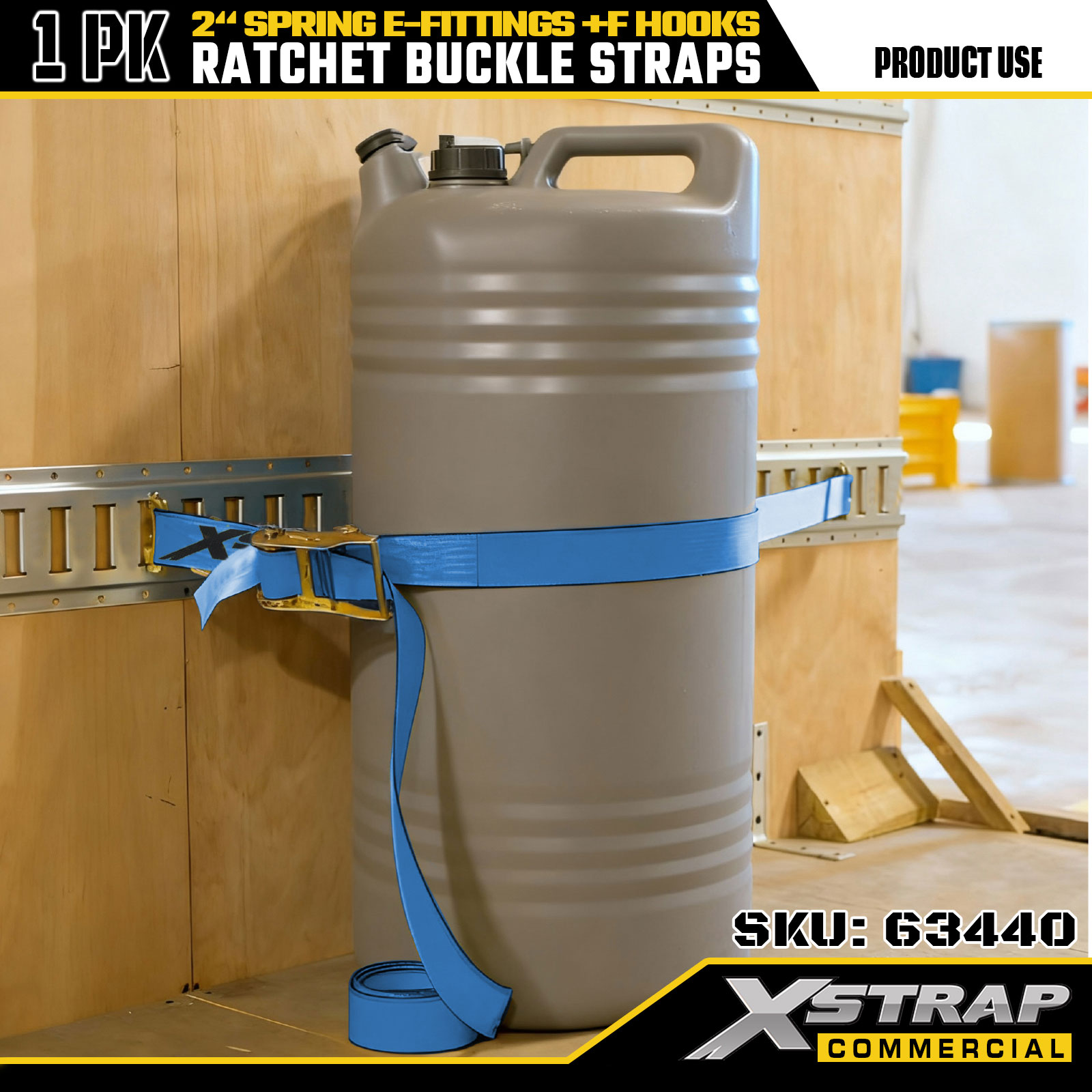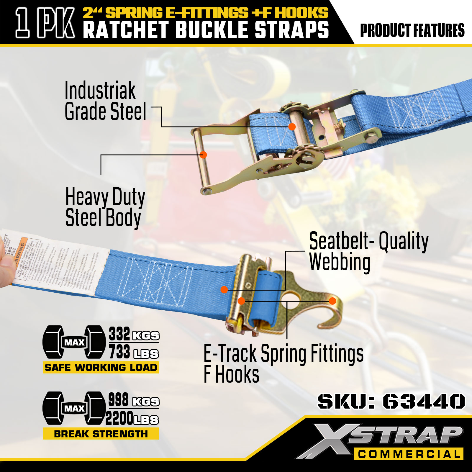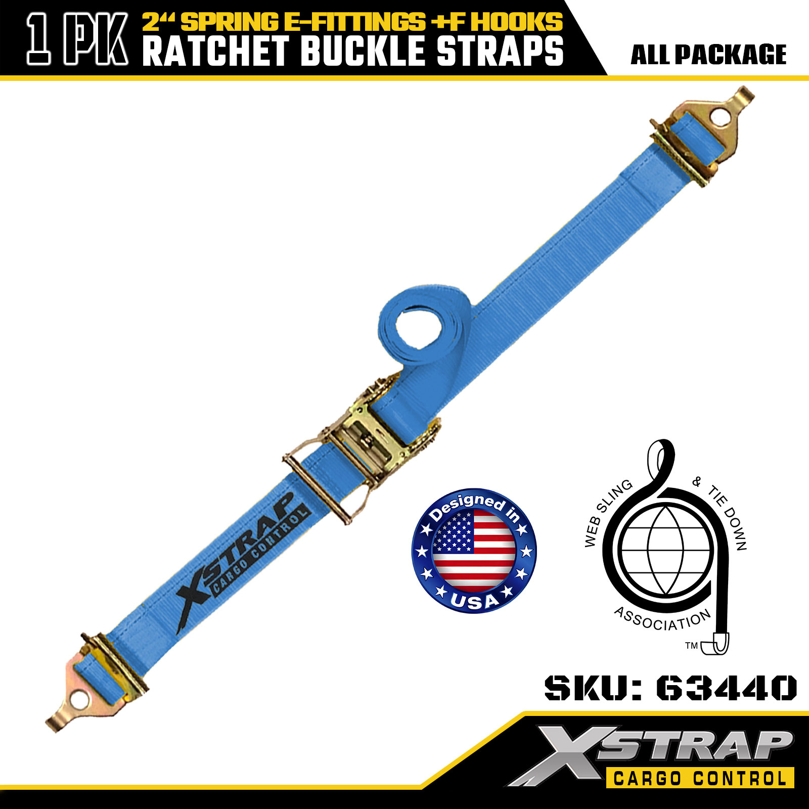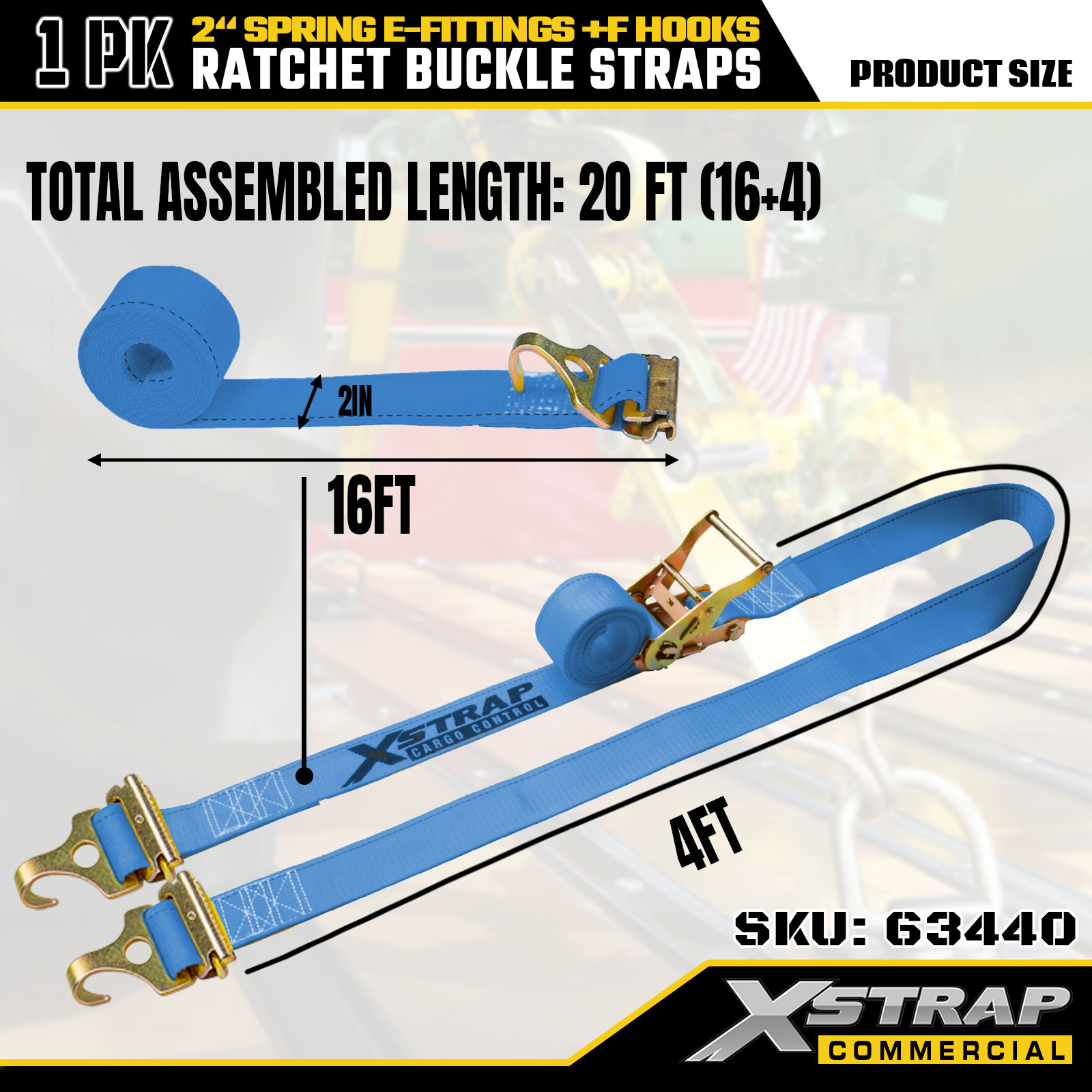 Xstrap 63440 nagy teherbírású racsnis szíj, 2" x 20" (1PK) - Kék heveder, rugós E-szerelvények és F-horgok, 733 lbs SWL mozgatáshoz, teherszállításhoz és teherautó-használathoz