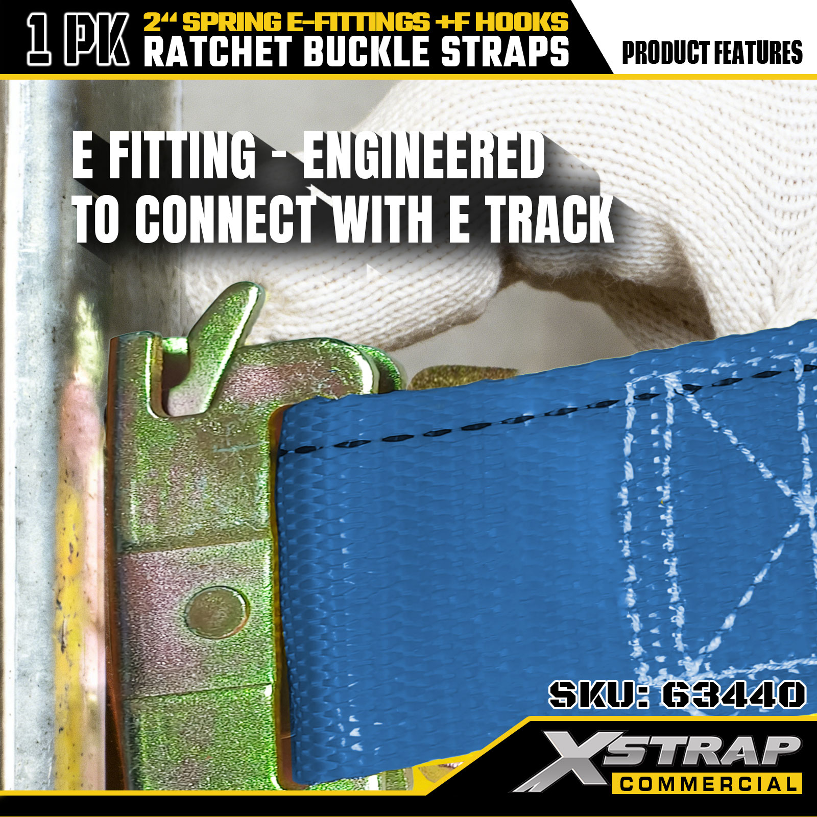 - Nagy teherbírású, karcálló hardver – A masszív fém racsnis csat és a korrózióálló F horgok (sima felület) elkerülik a felület sérülését. A rugós E-szerelvények biztosítják az E-Track biztonságos rögzítését.