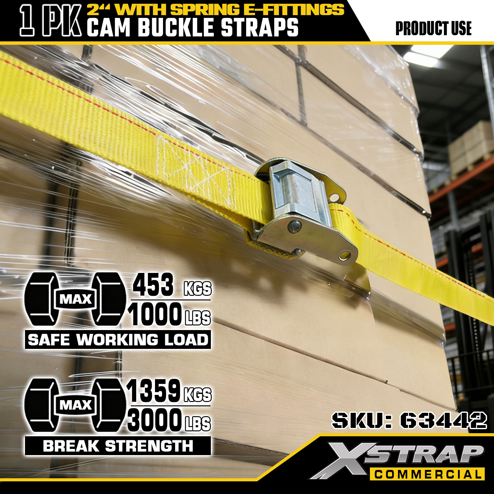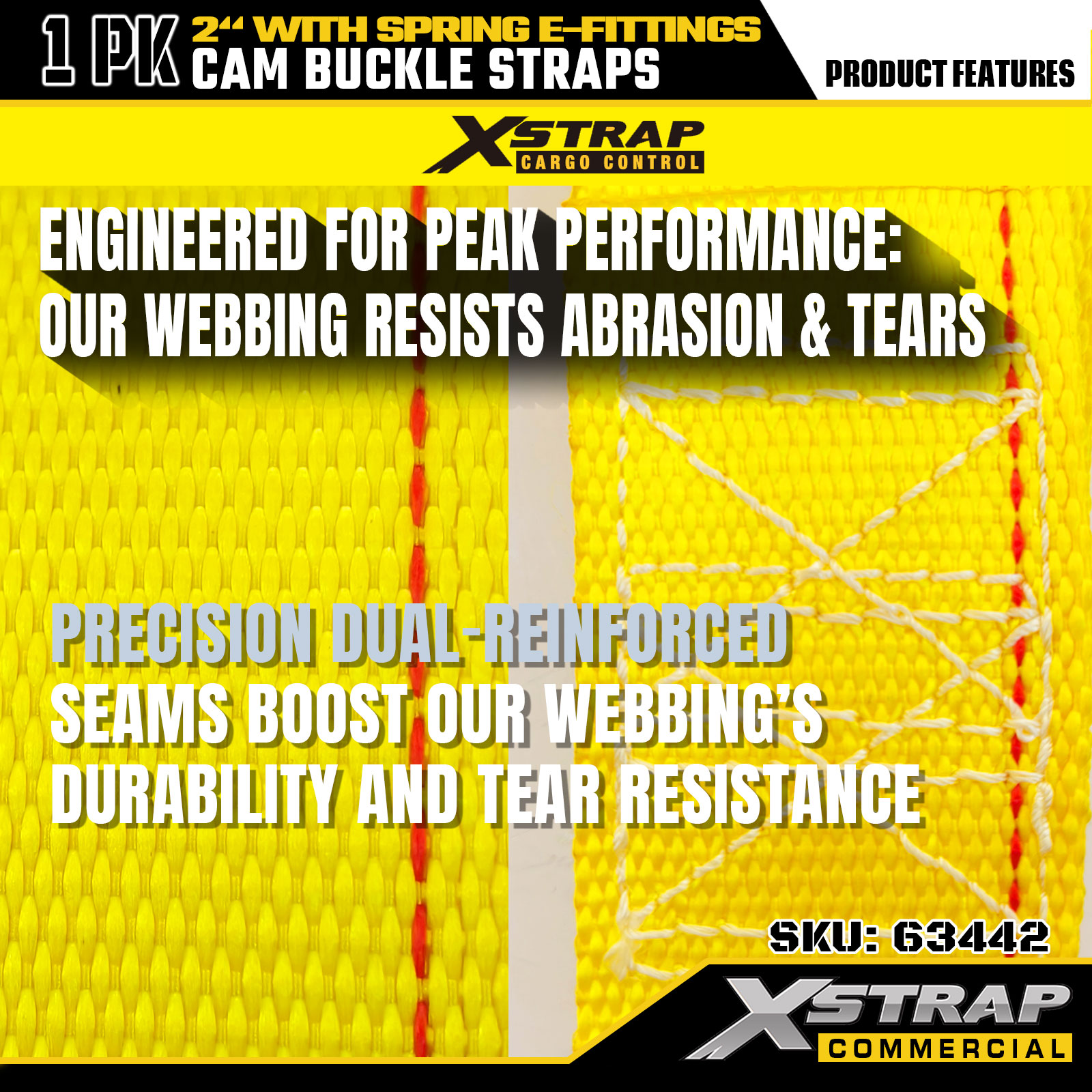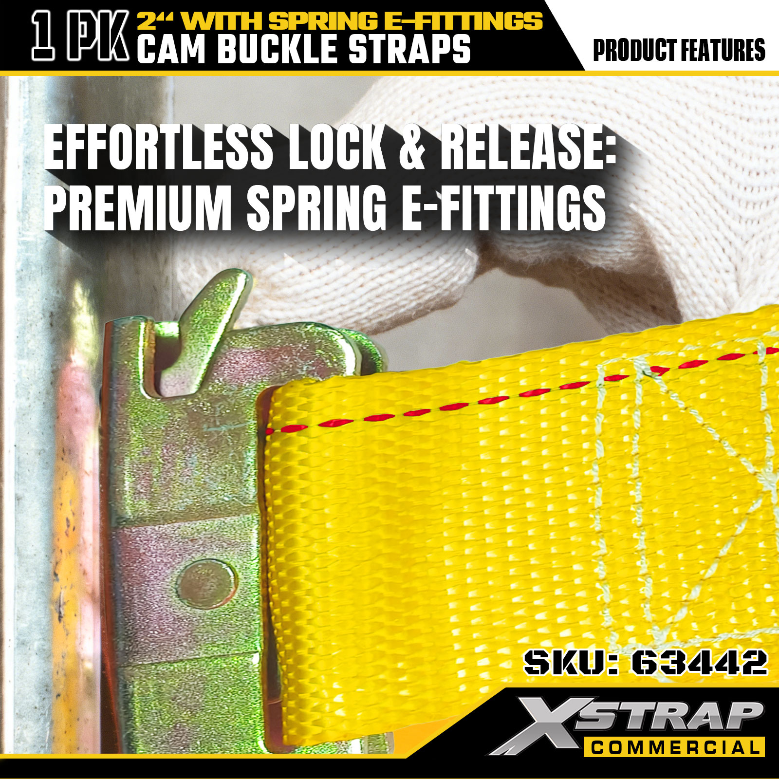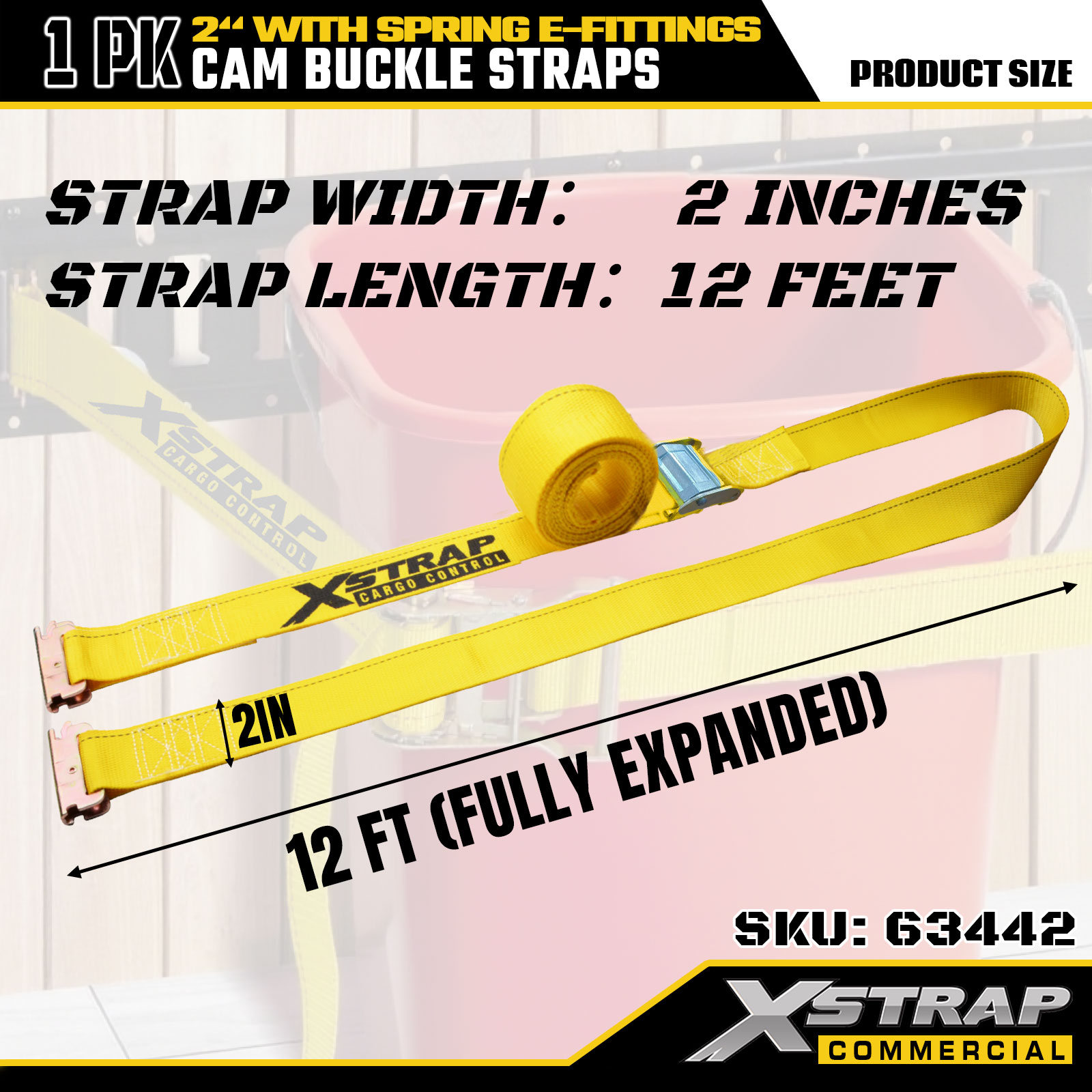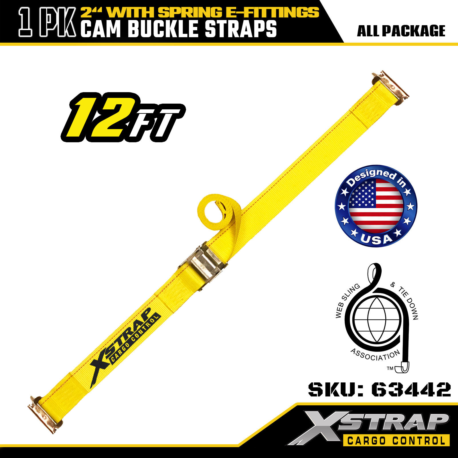 Xstrap 63442 nagy teherbírású bütyökcsatos pánt 2" x 12" (1PK) - Sárga poliészter rugós E-szerelvényekkel, 1000 lbs SWL és 453 lbs törési szilárdság mozgatáshoz, rakományszabályozáshoz és szállításhoz