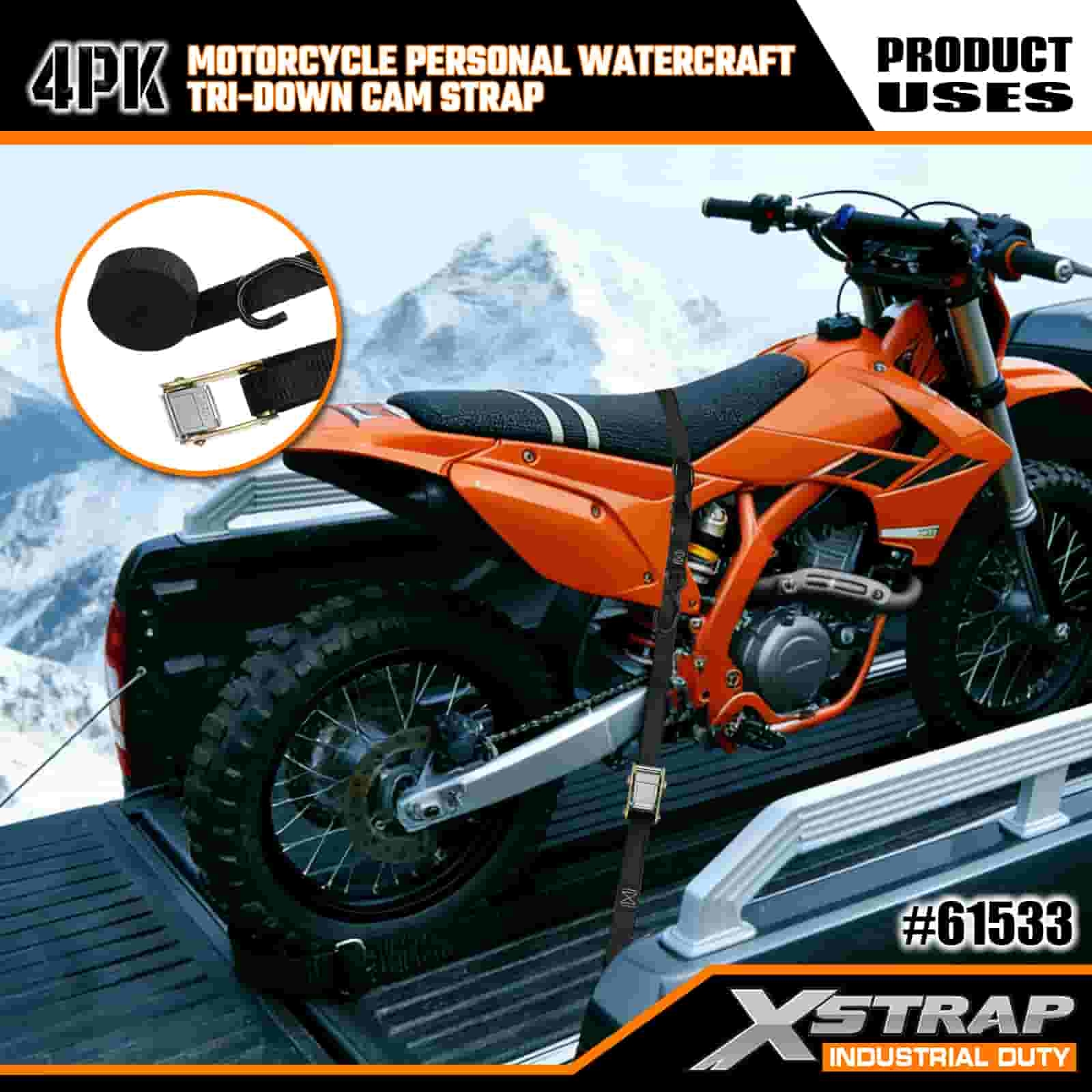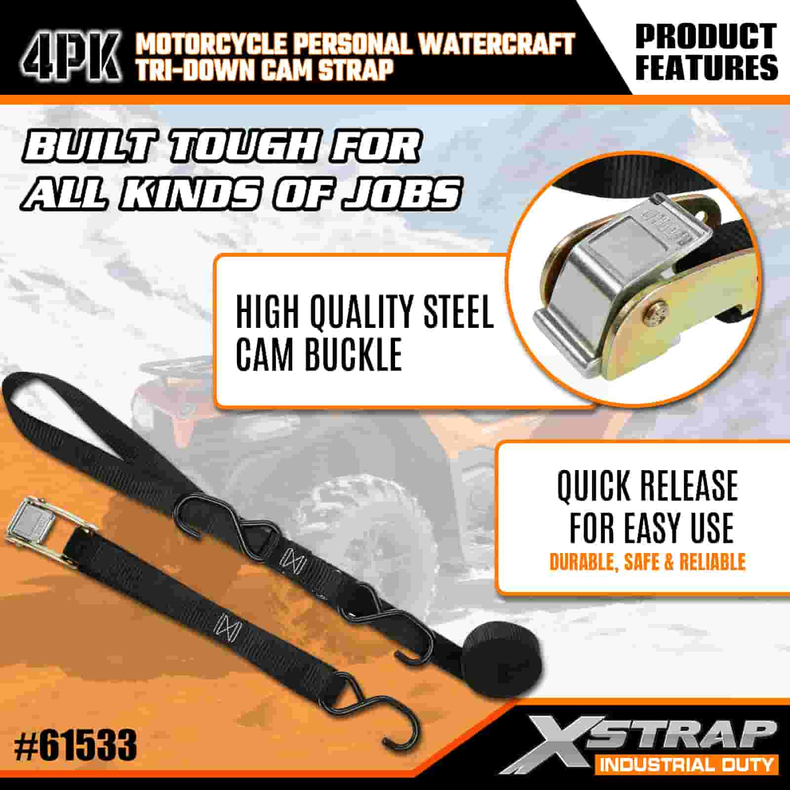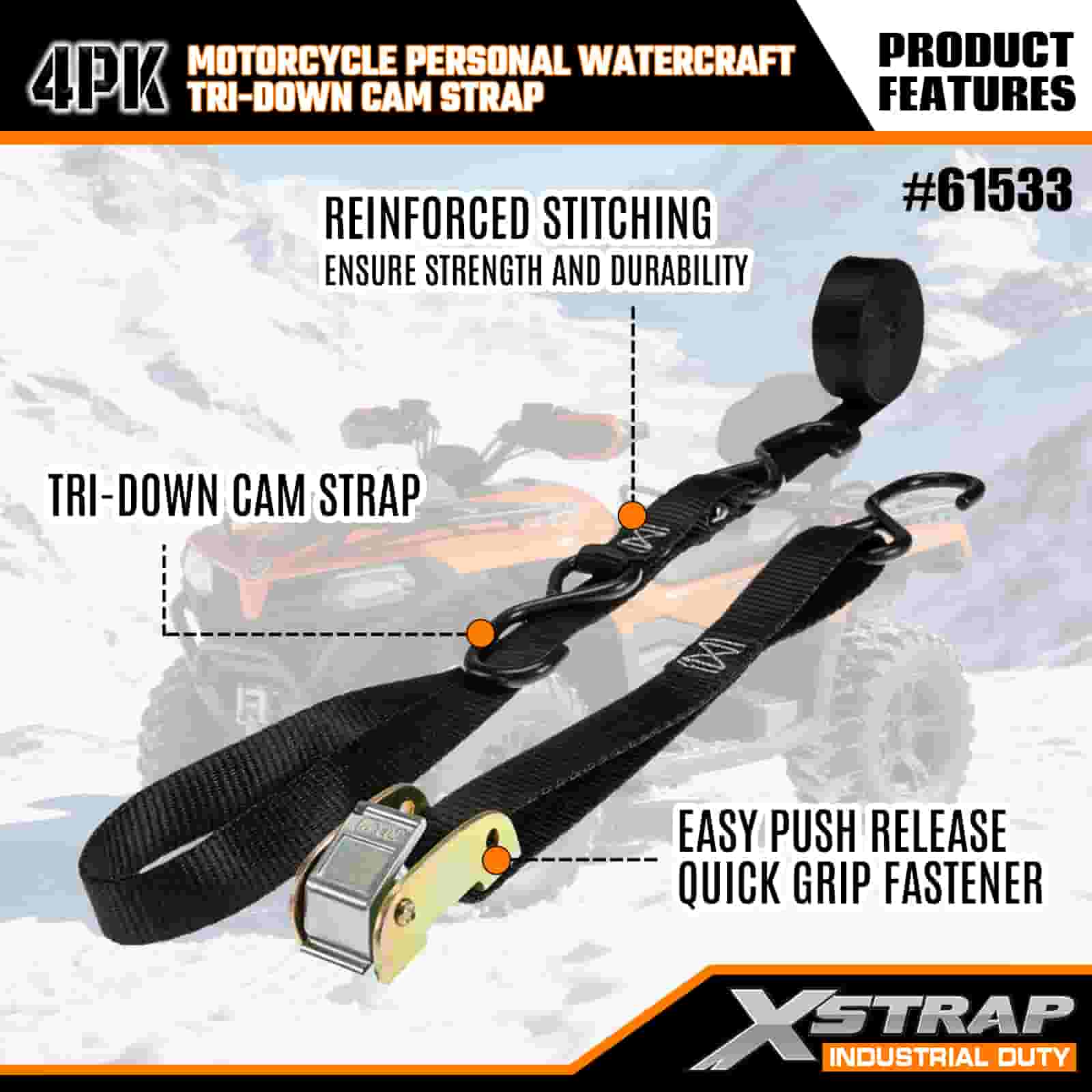 Xstrap 4PK Motorkerékpár személyi vízijármű háromszögű bütykös pánt, 1" x 6" poliészter megkötő heveder, kihúzható racsnis csatszíj, 400 font teherbírású rakományrögzítő rögzítő hevederek S horgokkal a komoly szakemberek számára a rakomány utánfutó rögzítéséhez, síkágyas utánfutó, kis méretű autós sícsónak.