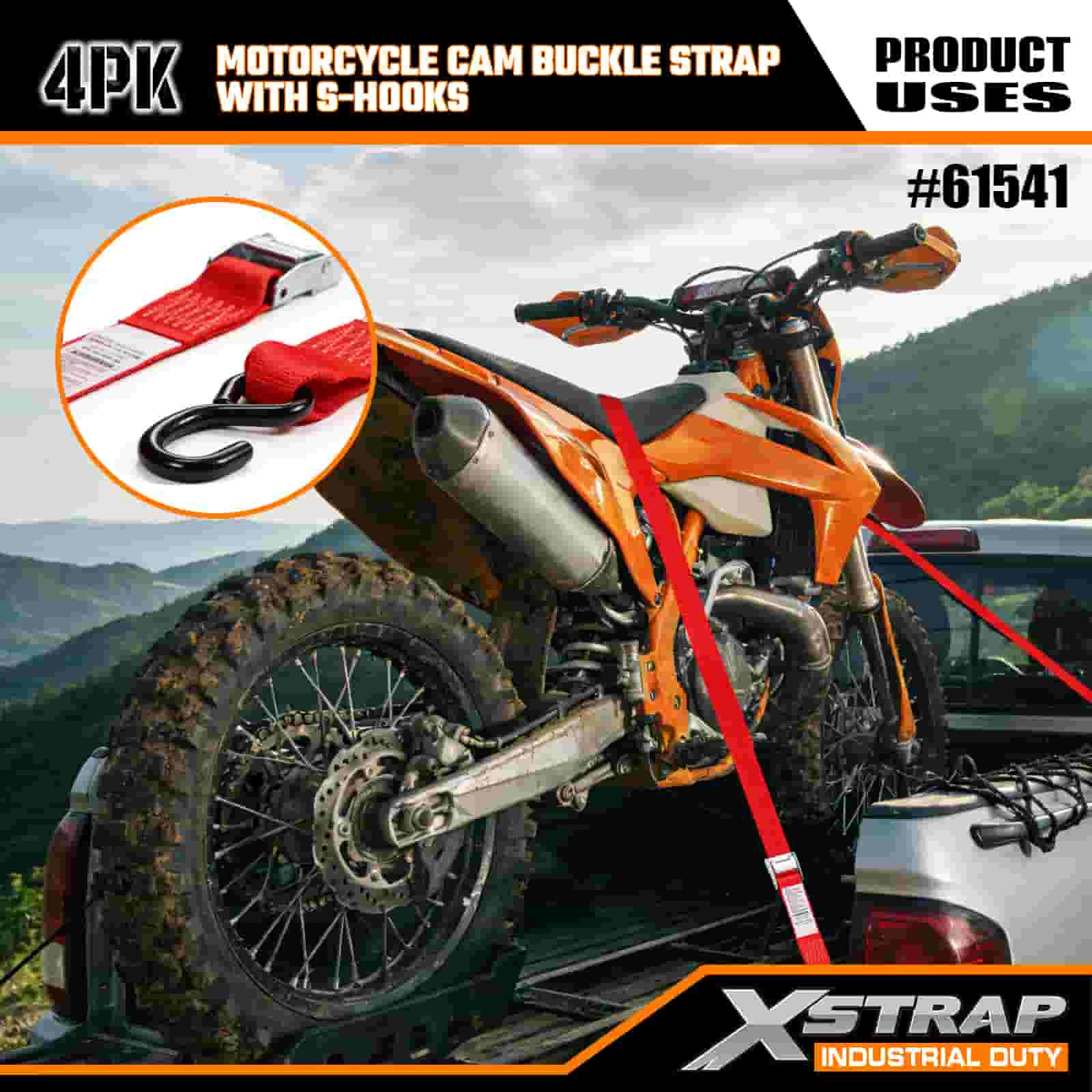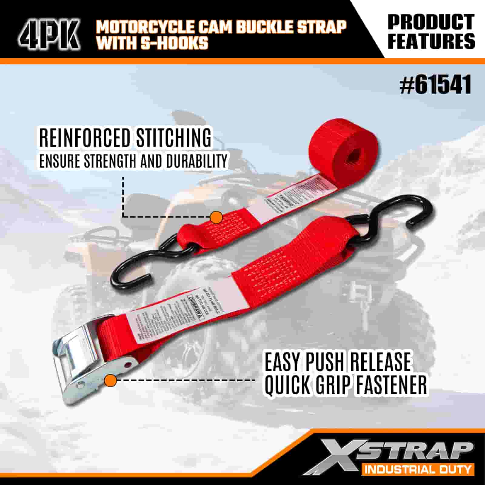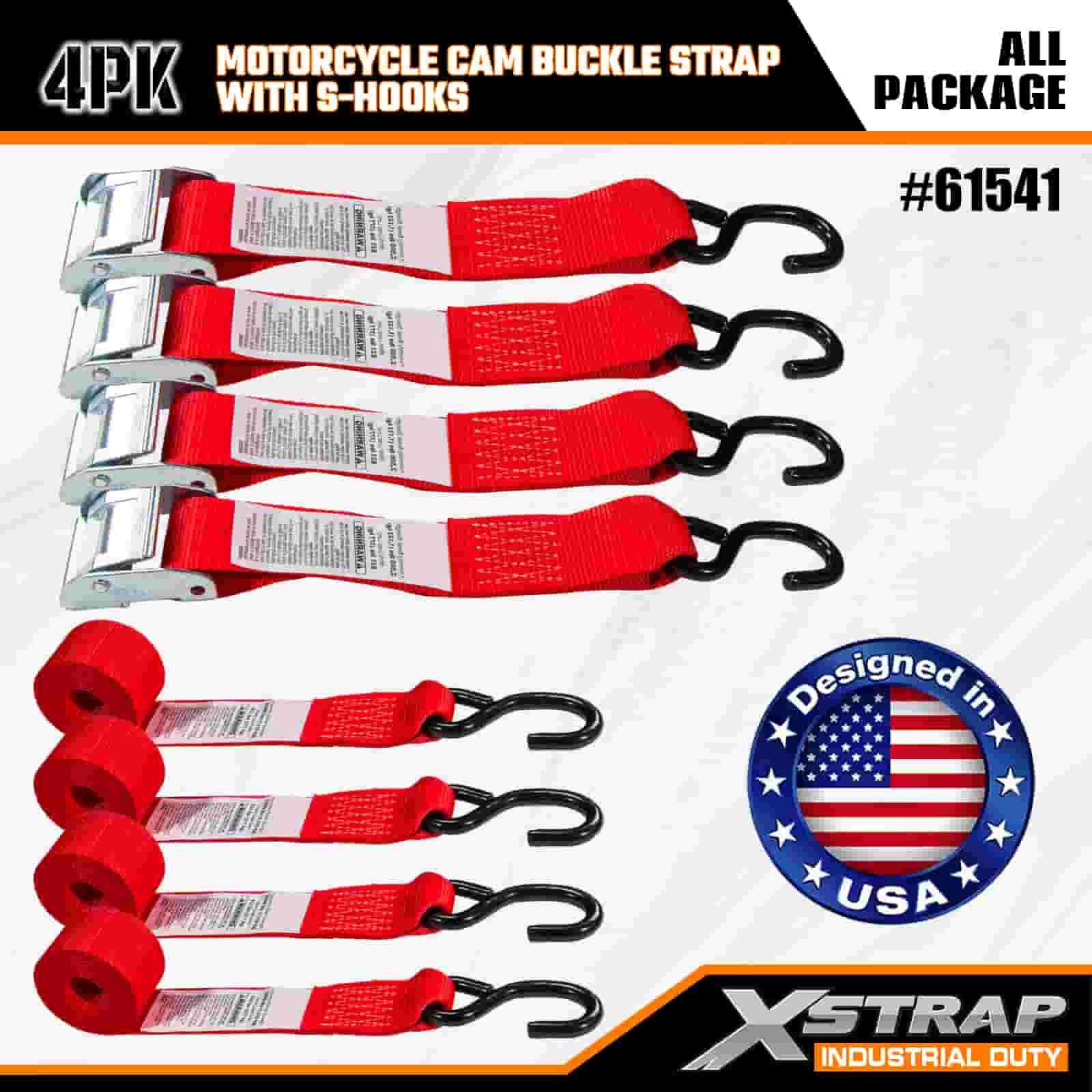 Xstrap 4PK motorkerékpár bütykös csatszíja S kampóval, 2” x 8”-es poliészter rögzítőszíj, húzható racsnis csatszíj, 400 font teherbírású rakományrögzítő rögzítő hevederek S-horoggal a komoly szakemberek számára a rakomány utánfutó rögzítéséhez, síkágyas utánfutó, kiskocsi, síboat.