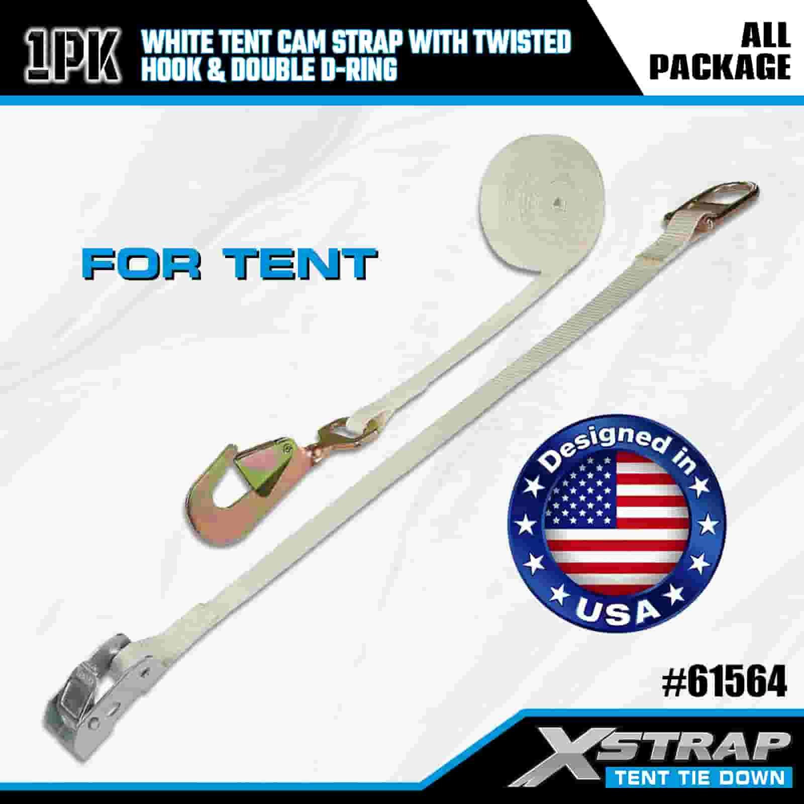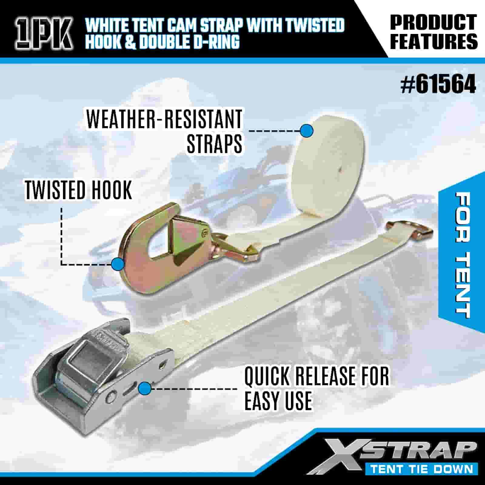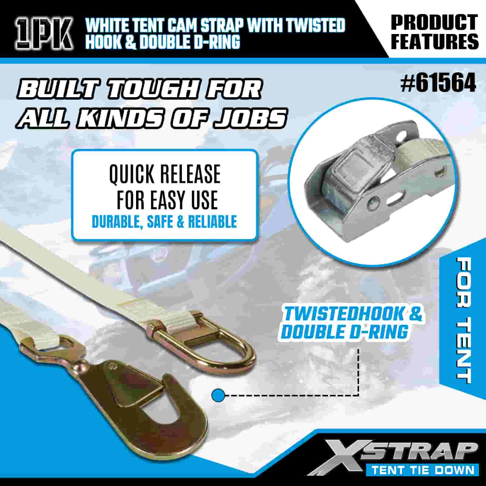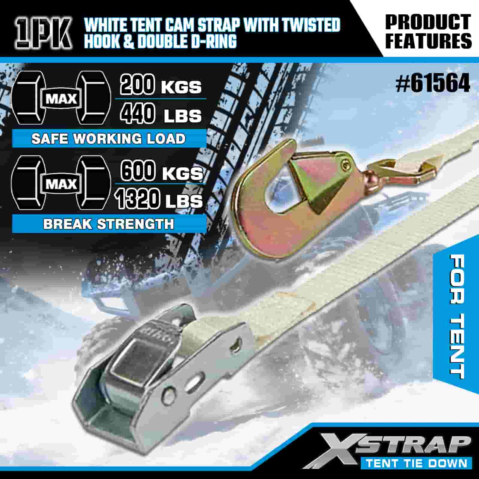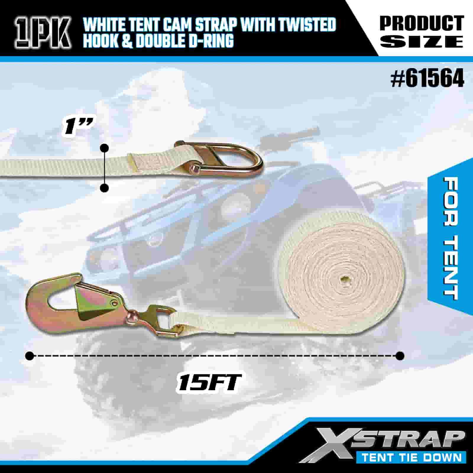 Xstrap fehér sátorbütyök heveder csavart kampóval és dupla D gyűrűvel, 1" x 15" poliészter lekötő heveder racsnis heveder, 440 font teherbírású teherrögzítő rögzítő hevederek Csavart kampó és dupla D gyűrű rakományvezérléshez, sátorrögzítéshez.