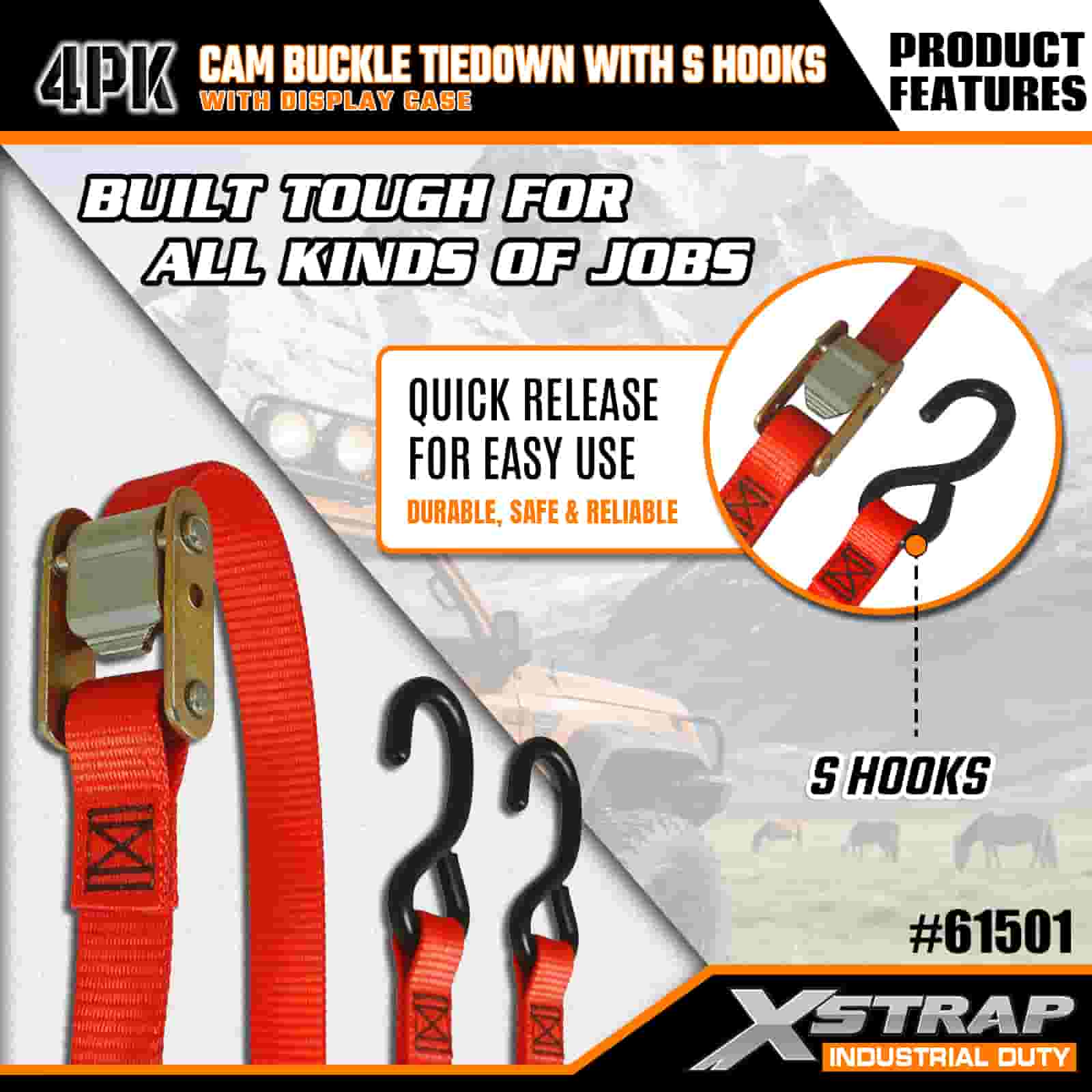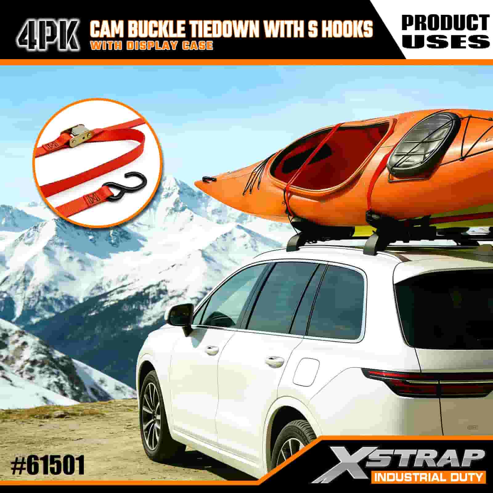 - Praktikus 4 darabos csomag kijelzőtokkal: 4 darabos készletben (kijelzős csomagolással) árusítjuk sorozatos használatra, és mindegyik heveder 2 hüvelyk széles × 6 láb hosszú, ami ideális kajakok, kültéri felszerelések vagy rakomány rögzítésére.