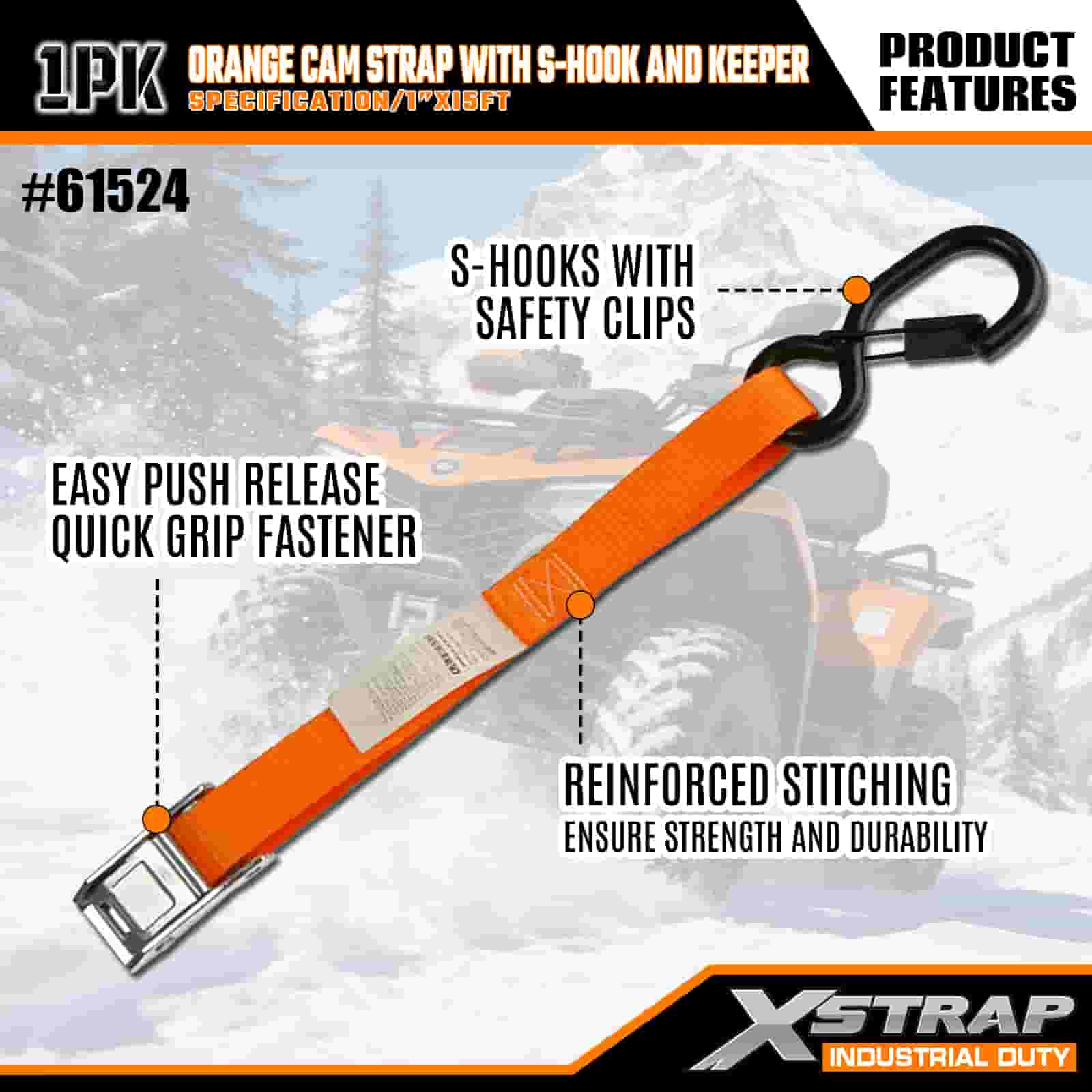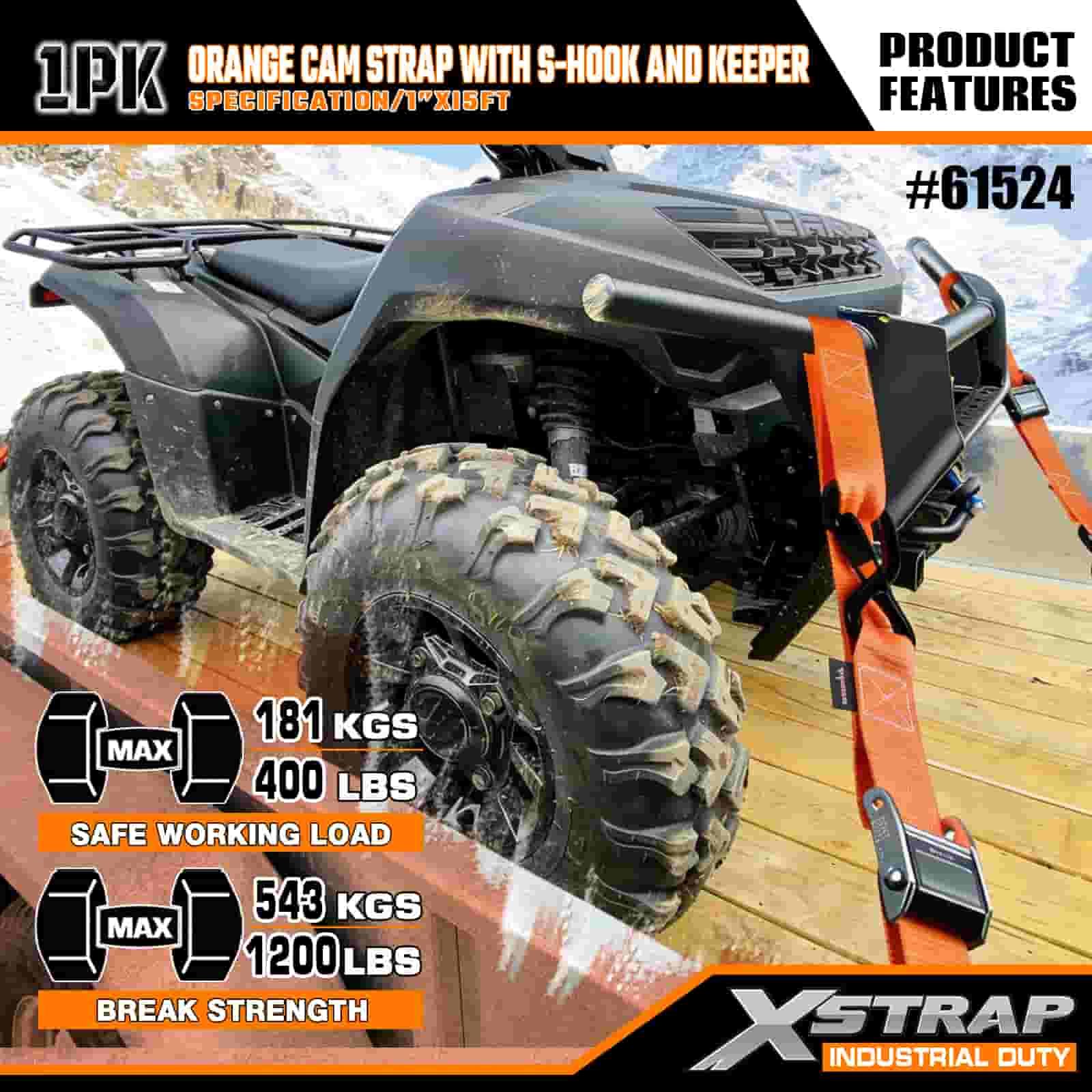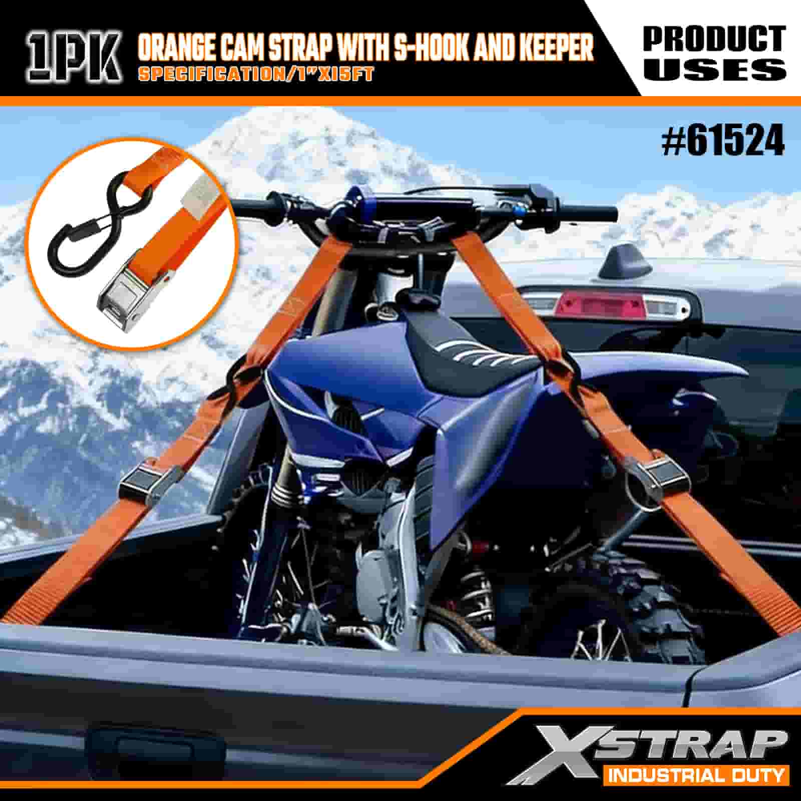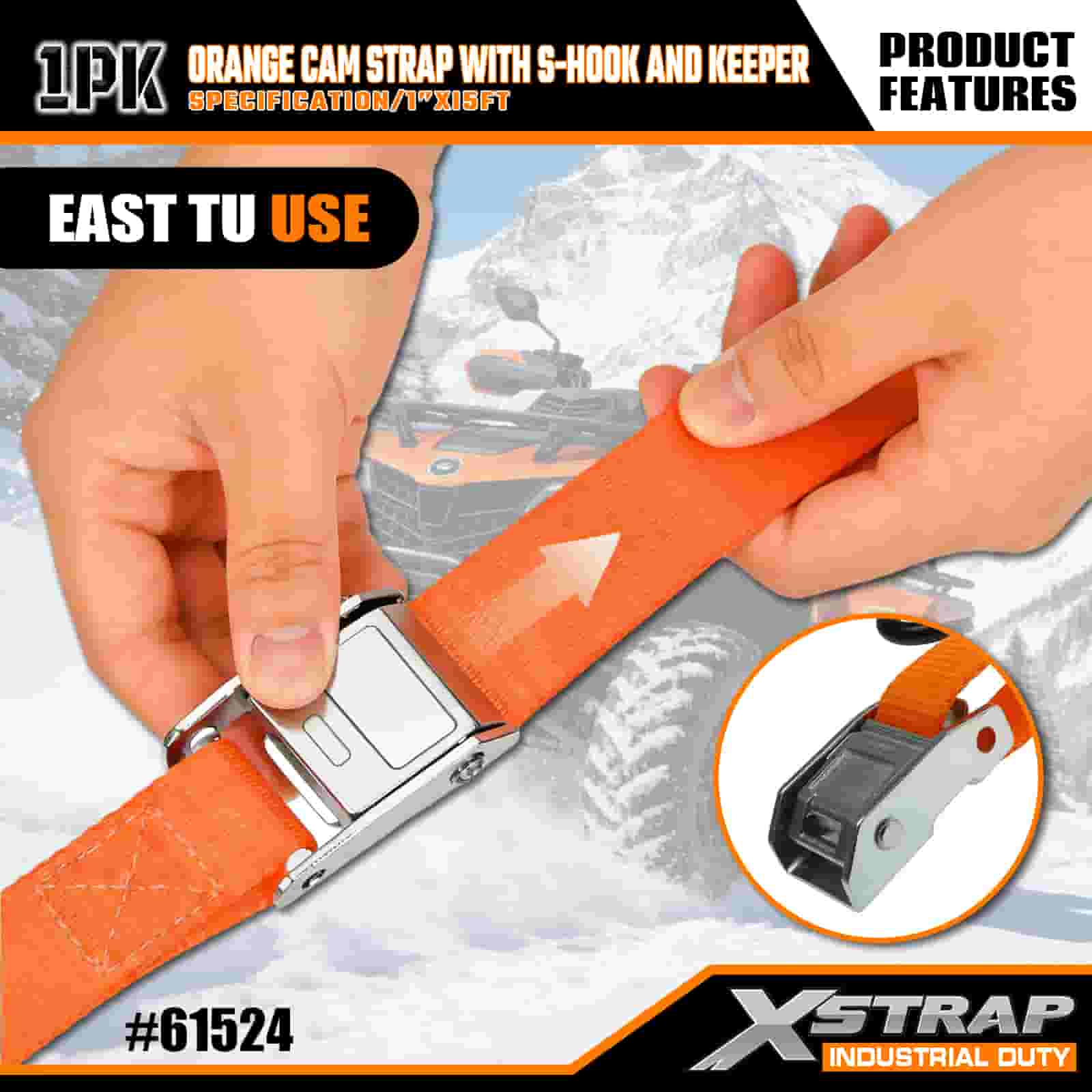 - 15 láb hosszúság a sokoldalú használathoz: egyetlen hevederként (1 hüvelyk széles × 15 láb hosszú) eladó tekercstárolóval, ideális ATV-k, motorkerékpárok és kültéri felszerelések teherautó-ágyakban vagy tetőcsomagtartókon történő rögzítéséhez.