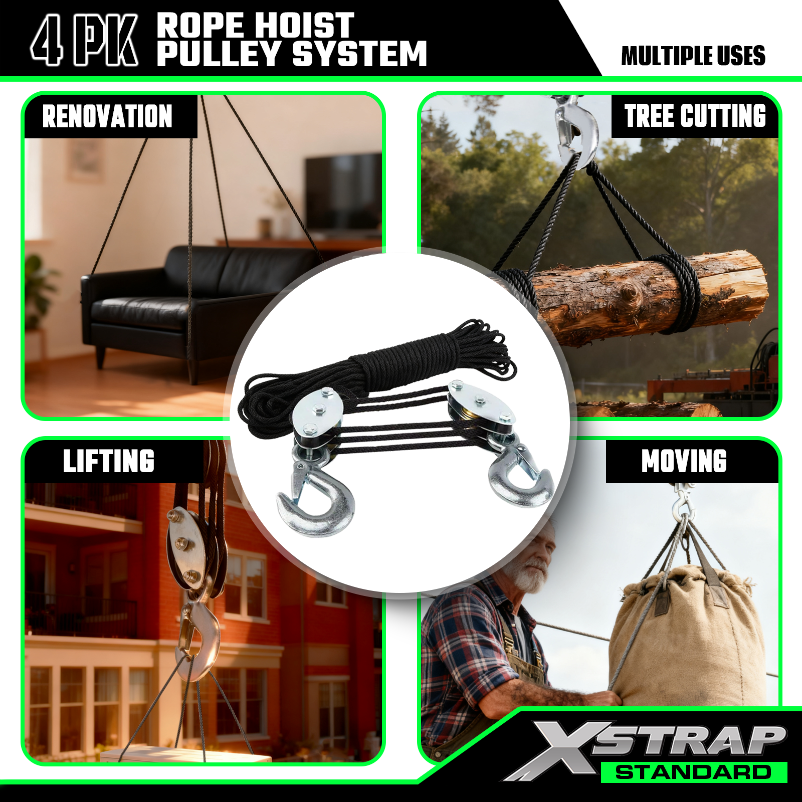 XSTRAP STANDARD AHLT0001 kötélemelő szíjtárcsa rendszer 1000 LB kapacitás