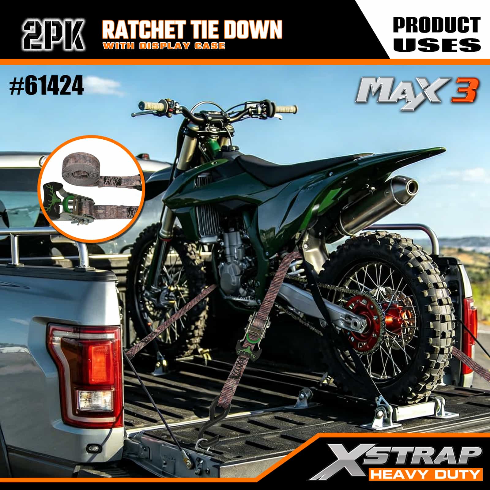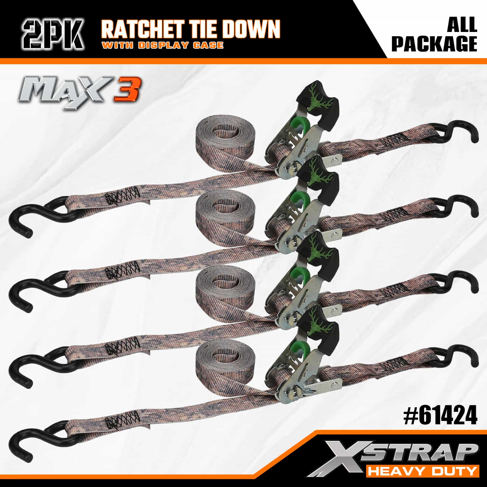 Xstrap 2 Pack Camo Ratchet Tie Down, 1-1/16 x 14 colos poliészter megkötőszíj, húzható racsnis heveder, 1000 font teherbírású rakományrögzítő rögzítő hevederek S horgokkal kisteherautókhoz, terepjárókhoz, autós fogaskerekekhez, hómotorokhoz, kismotorkerékpárokhoz, kisteherautókhoz, kisteherautókhoz.