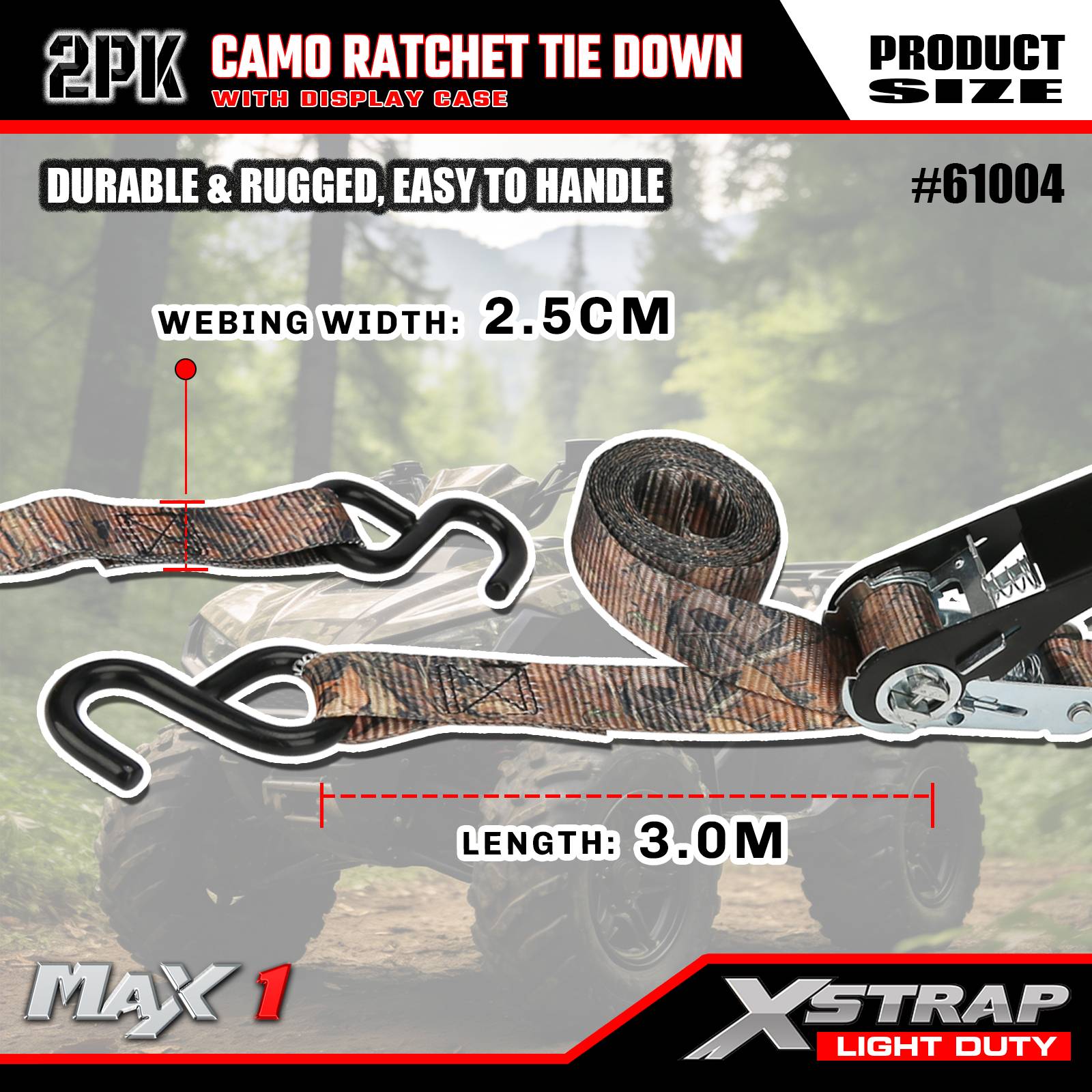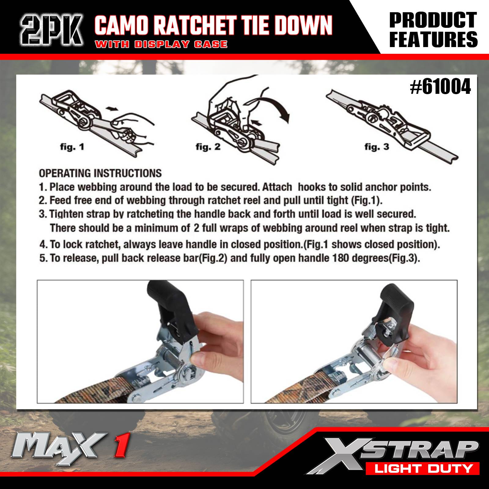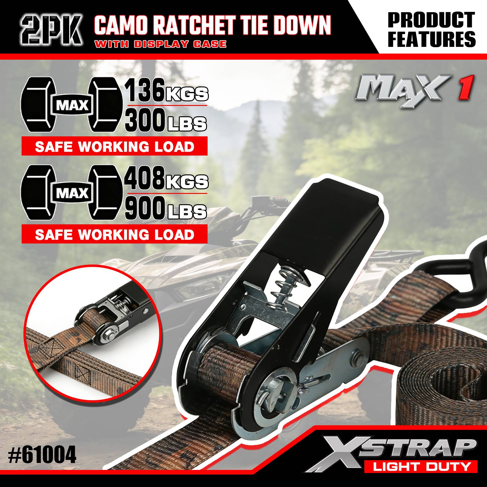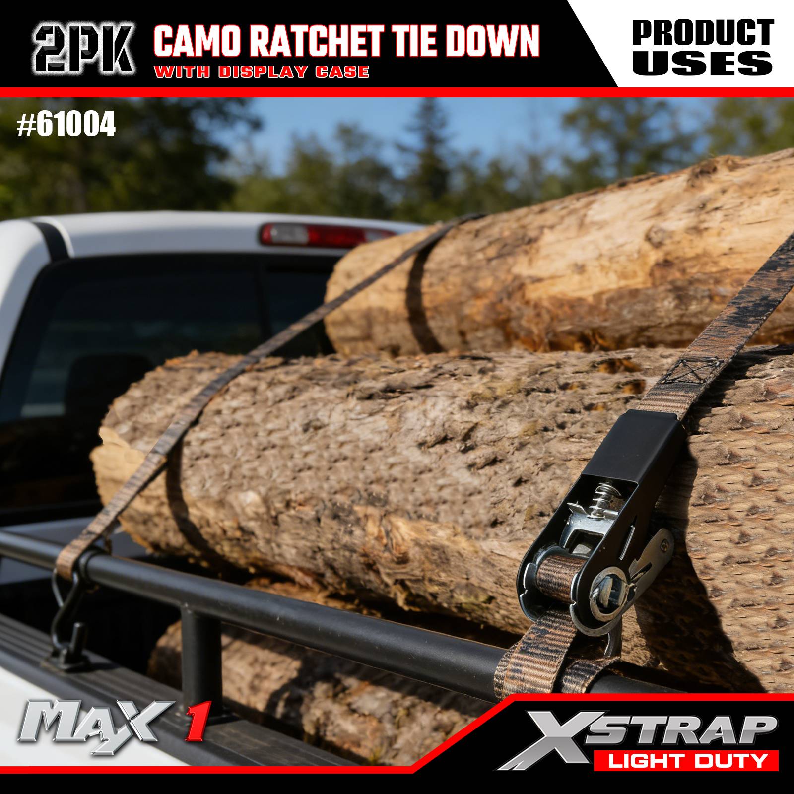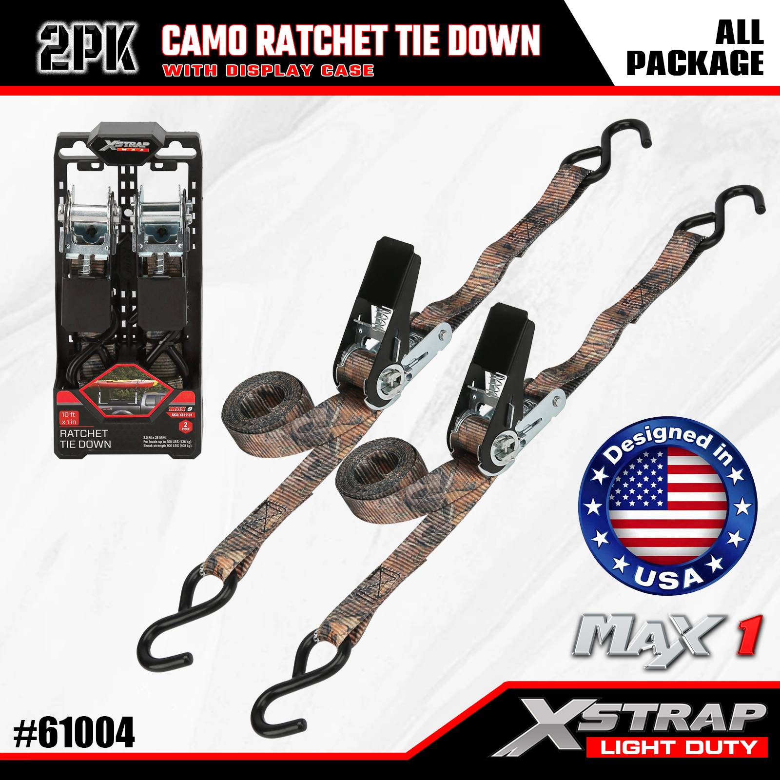 Xstrap 2 csomagos racsnis rögzítőpántok, 1"x10" - 300 font teherbírás - 900 font törési szilárdságú teherszíjak mozgó berendezésekhez, füves felszerelésekhez, motorkerékpárokhoz, terepszínekhez
