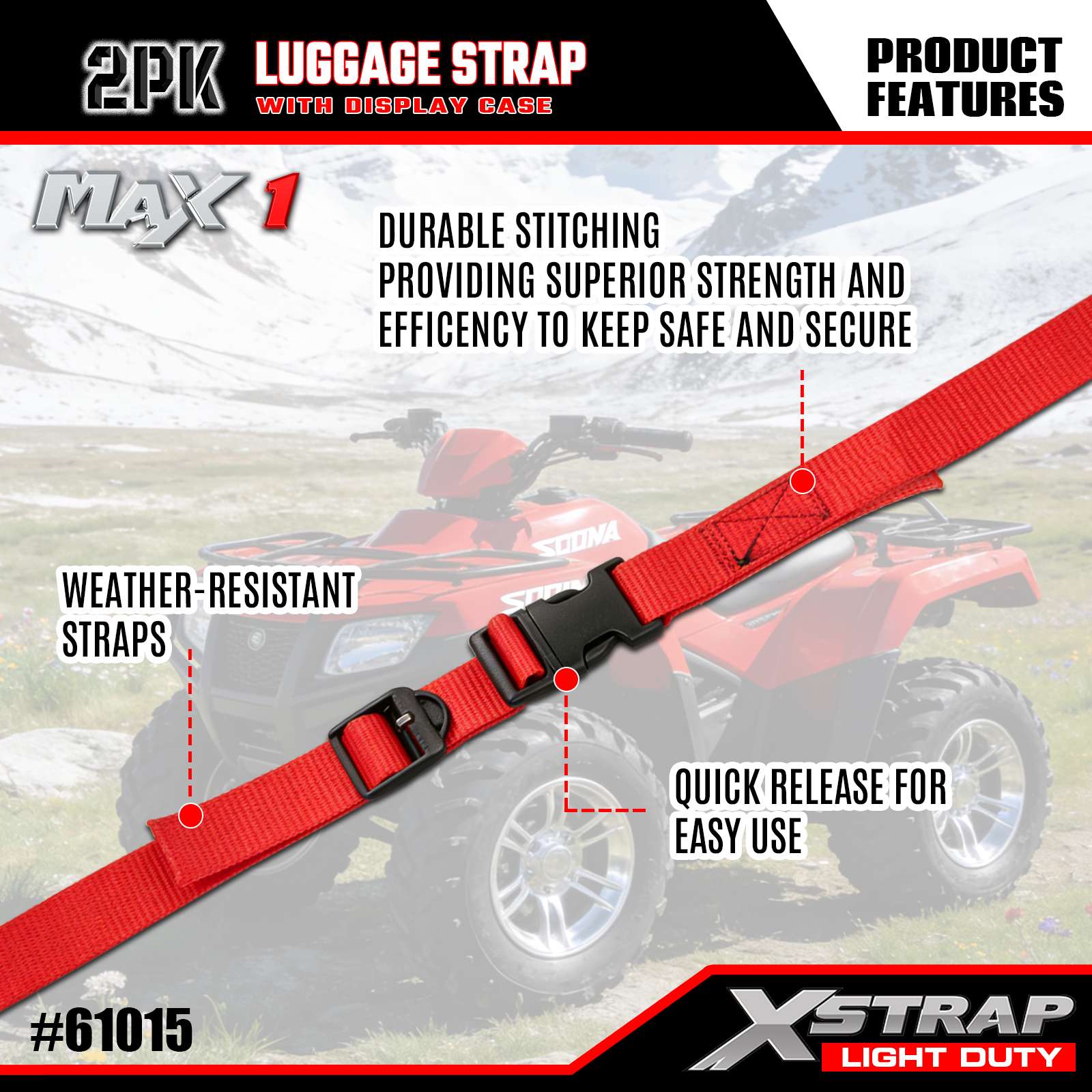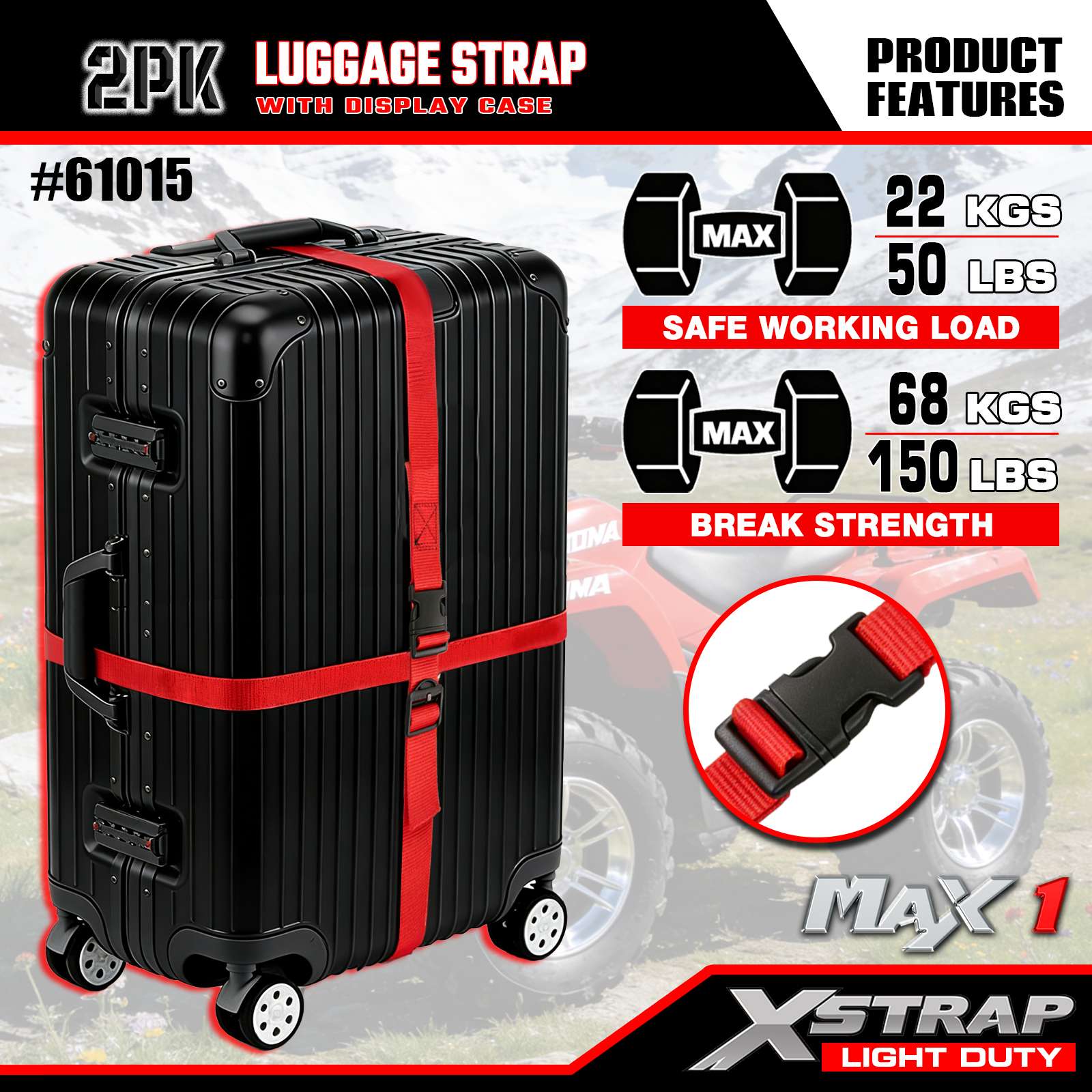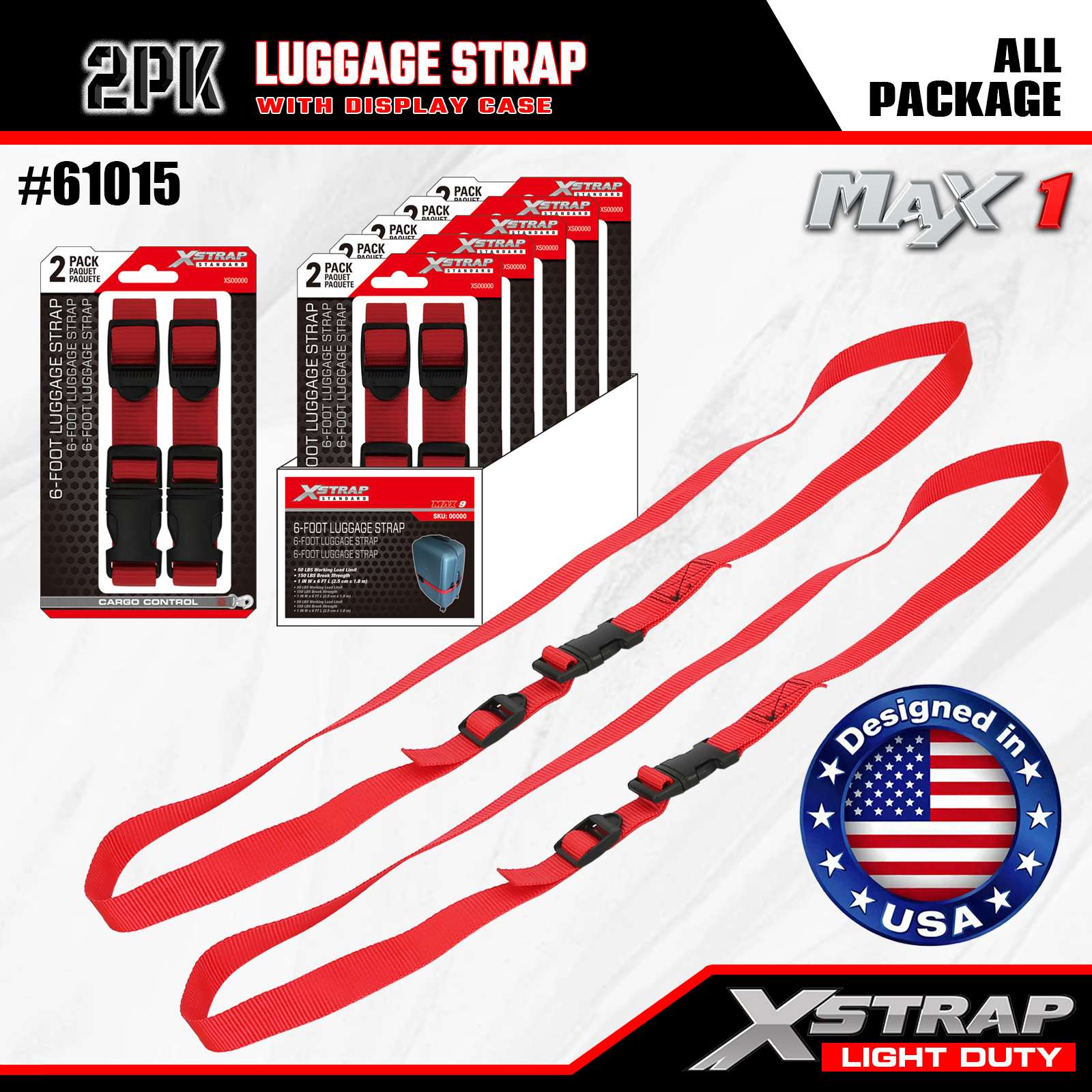 - USA által tervezett minőség: Az USA-ban tervezték, hogy megfeleljen a szigorú tartóssági szabványoknak, egyenletes teljesítményt biztosítva könnyű poggyászrögzítési feladatoknál.