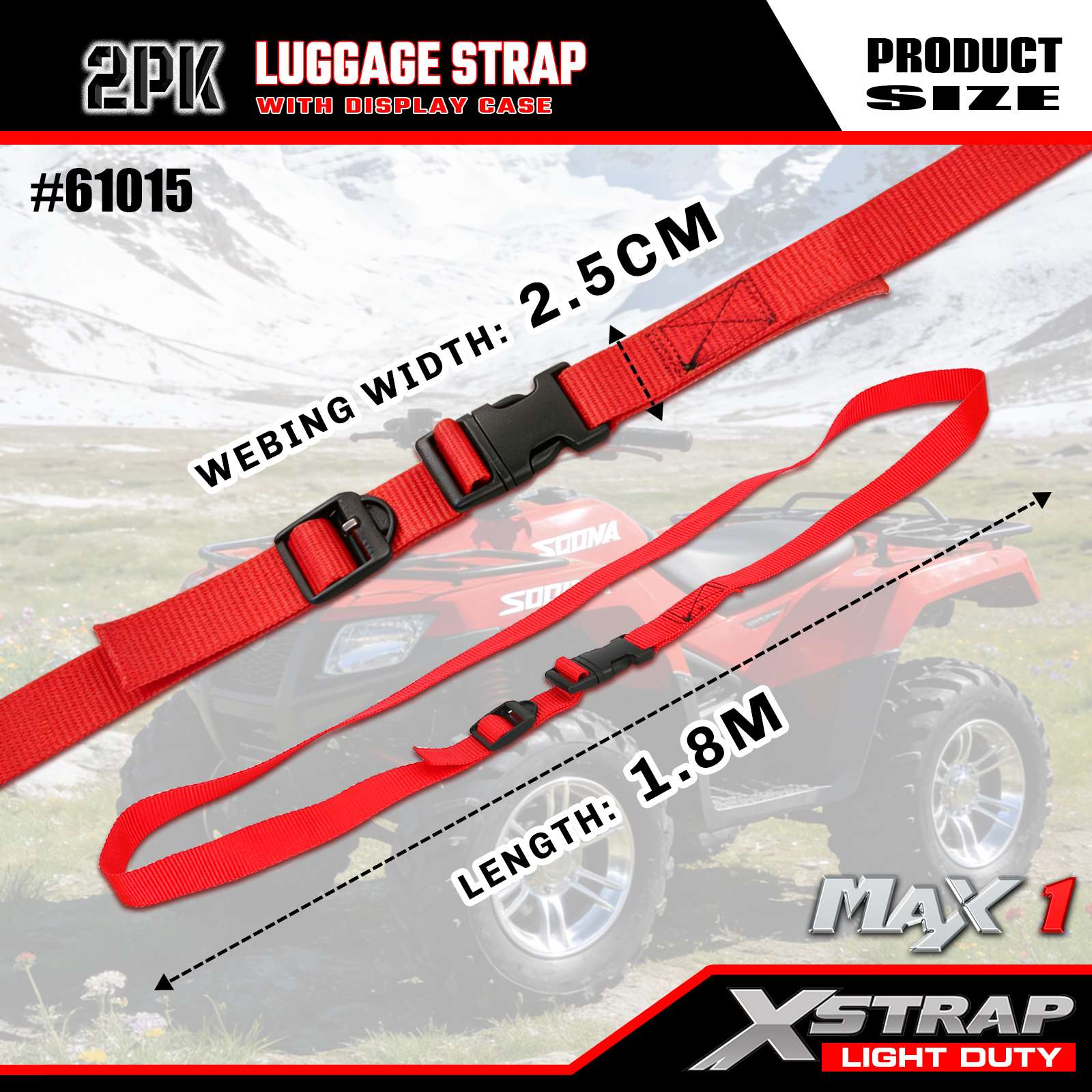 - Állítható gyorskioldó csat: Az oldalsó kioldású műanyag csat egy kézzel egyszerűen nyitható/zárható, míg az állítható kialakítás lehetővé teszi a pánt hosszának testreszabását, hogy illeszkedjen a különböző méretű csomagokhoz (a kis táskáktól a nagy bőröndökig).