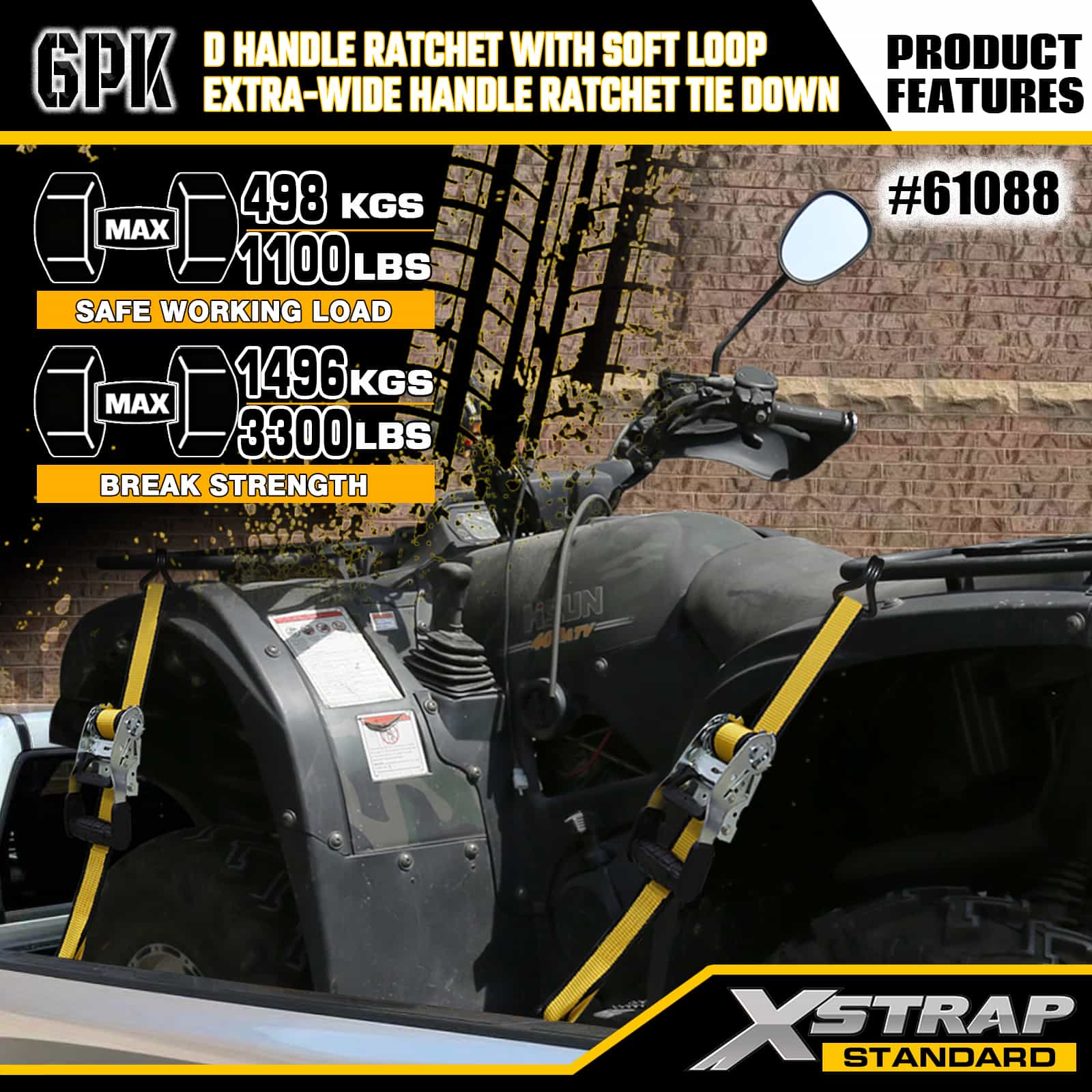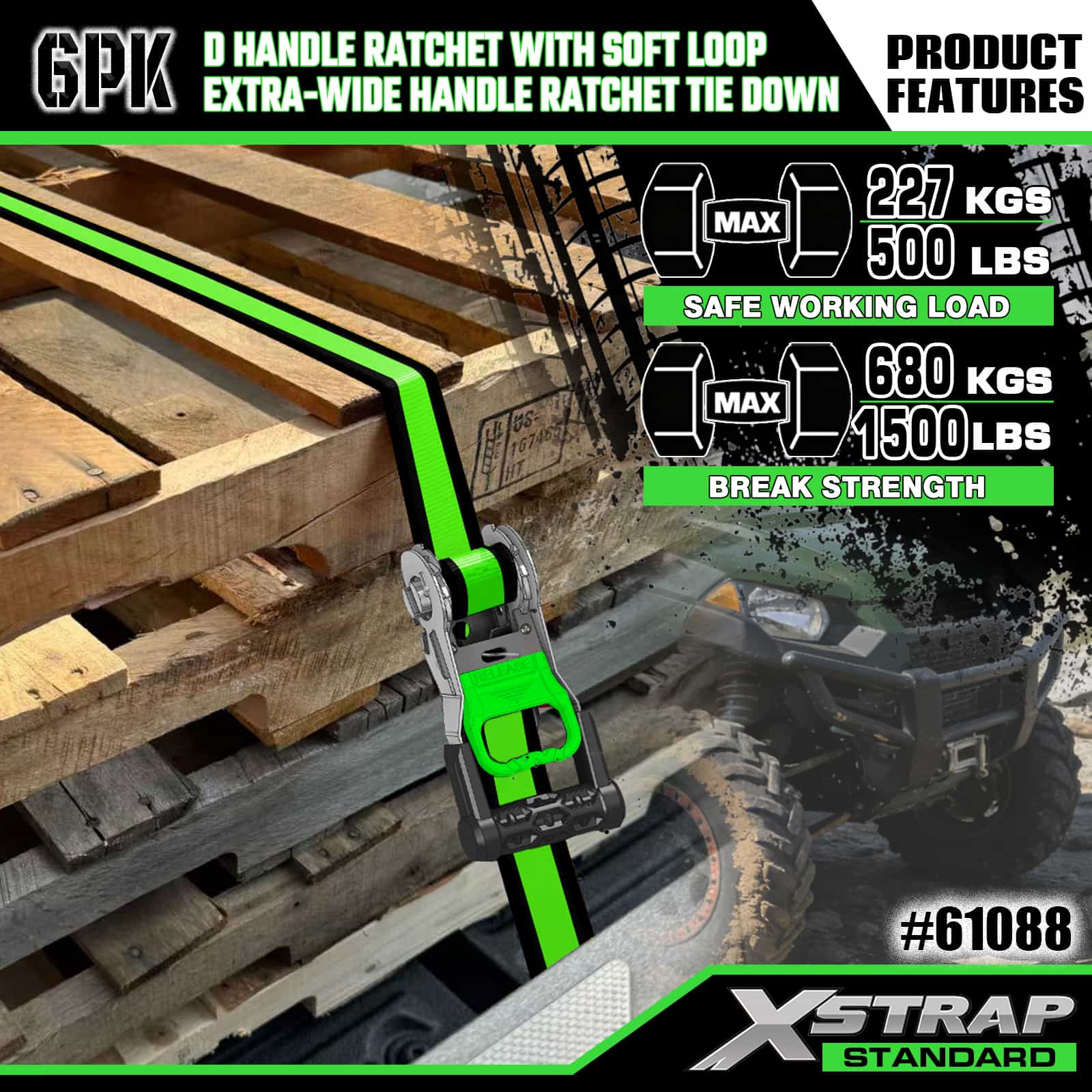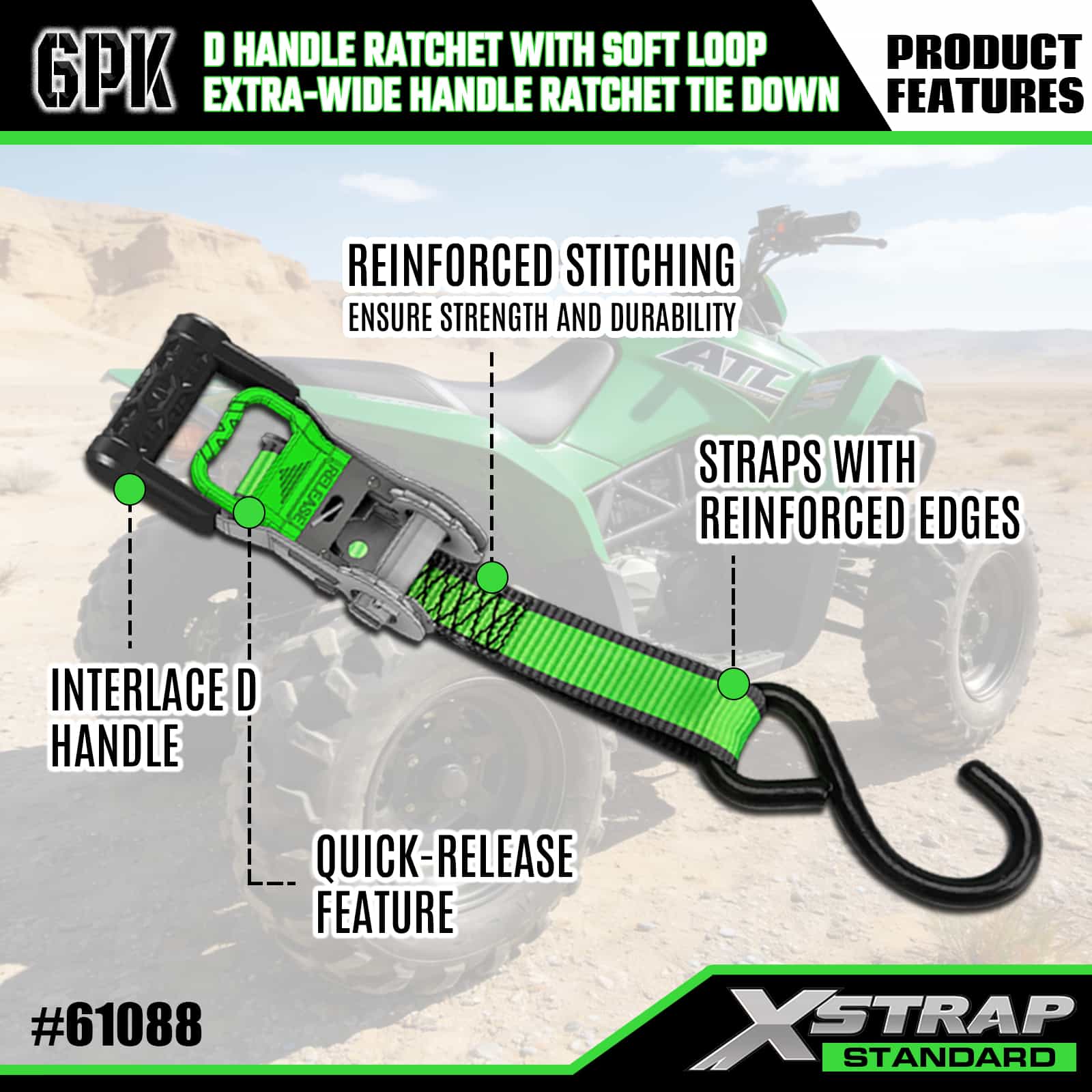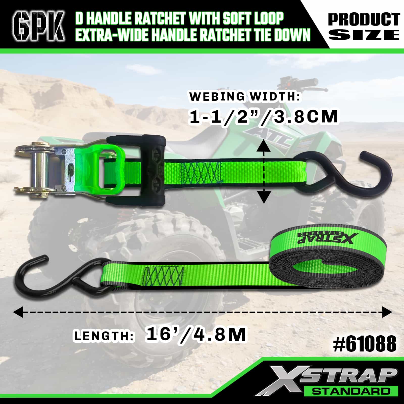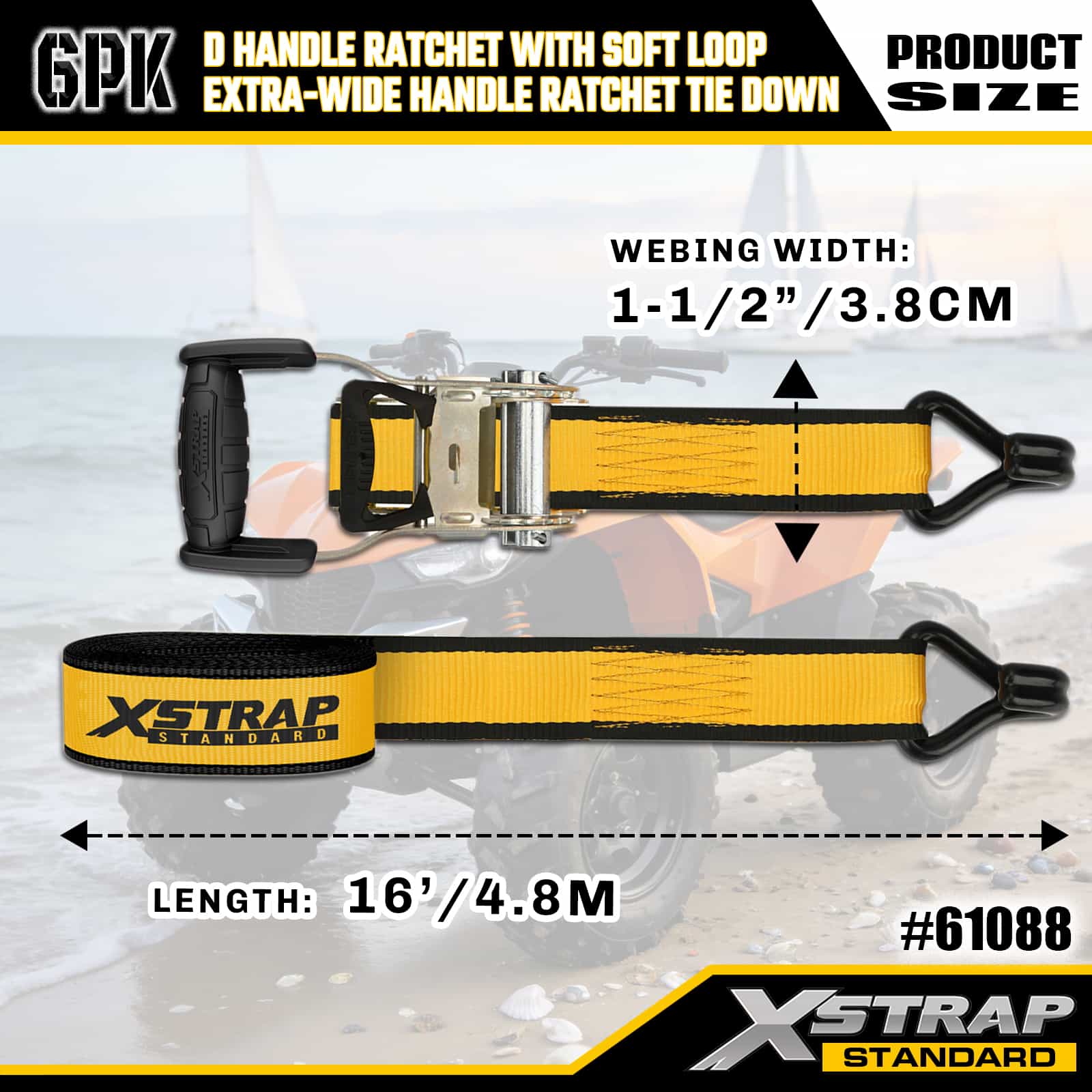 Xstrap 6 csomag alumínium racsnis rögzítőpánt, 1” x 14 "és 1" x 16 hüvelykes poliészter rögzítőszíj, húzható racsnis heveder, 500 és 1100 lbs teherbírású, UV rögzítő rögzítő hevederek, S-horgos autókhoz, Topgo vezérlésű horgokkal és Topgo horgokkal Racks Motorkerékpár,.