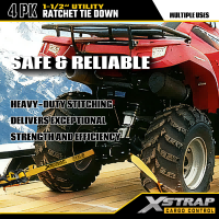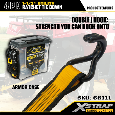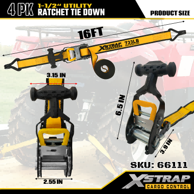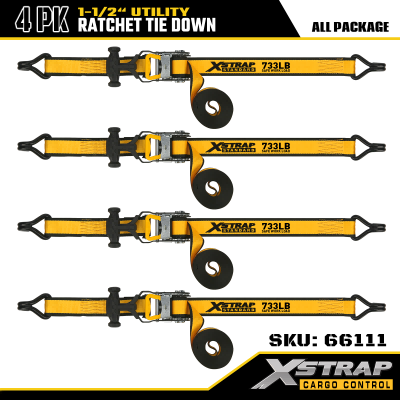 Xstrap 4 Pack T fogantyús racsnis rögzítő, 1-1/2” x 16 hüvelykes poliészter rögzítőszíj, húzó racsnis pánt, 1100 font teherbírású rakományrögzítő rögzítő hevederek kettős J horgokkal rakományvezérlő kisteherautókhoz, terepjárókhoz, autós felsőtartókhoz.