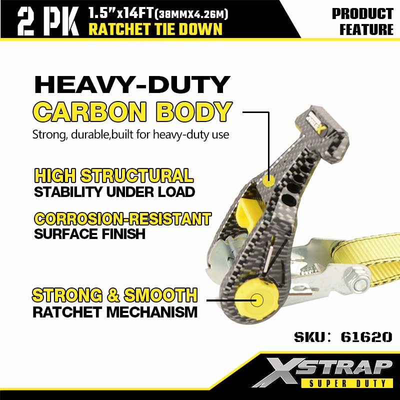 - Sima szénszálas racsnis működés: Hagyja ki a nehézkes fém racsnikat. A szénszálas test erős, de könnyű, a sima mechanizmus pedig lehetővé teszi, hogy egy kézzel másodpercek alatt megfeszítse és rögzítse a nehéz terheket. Még az első alkalommal használtak is szorosan stabil tartást kaphatnak extra szerszámok nélkül.
